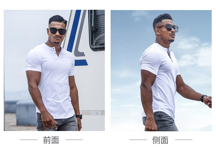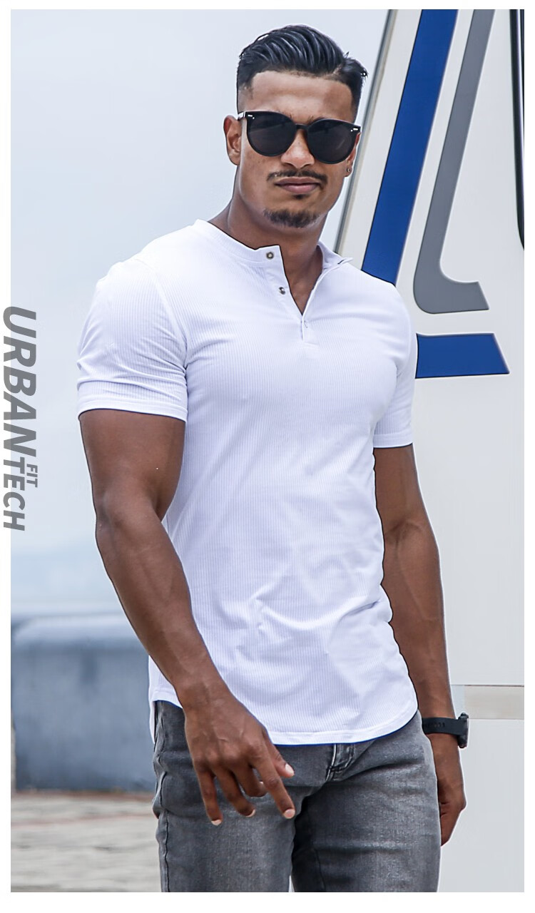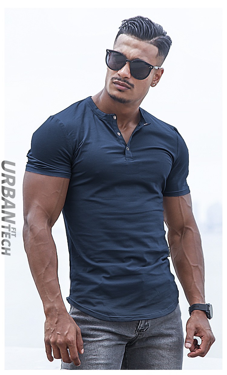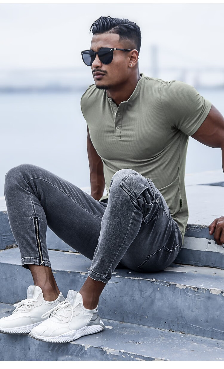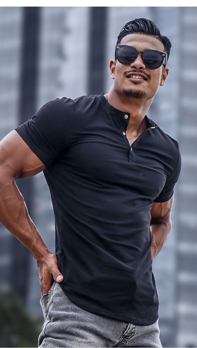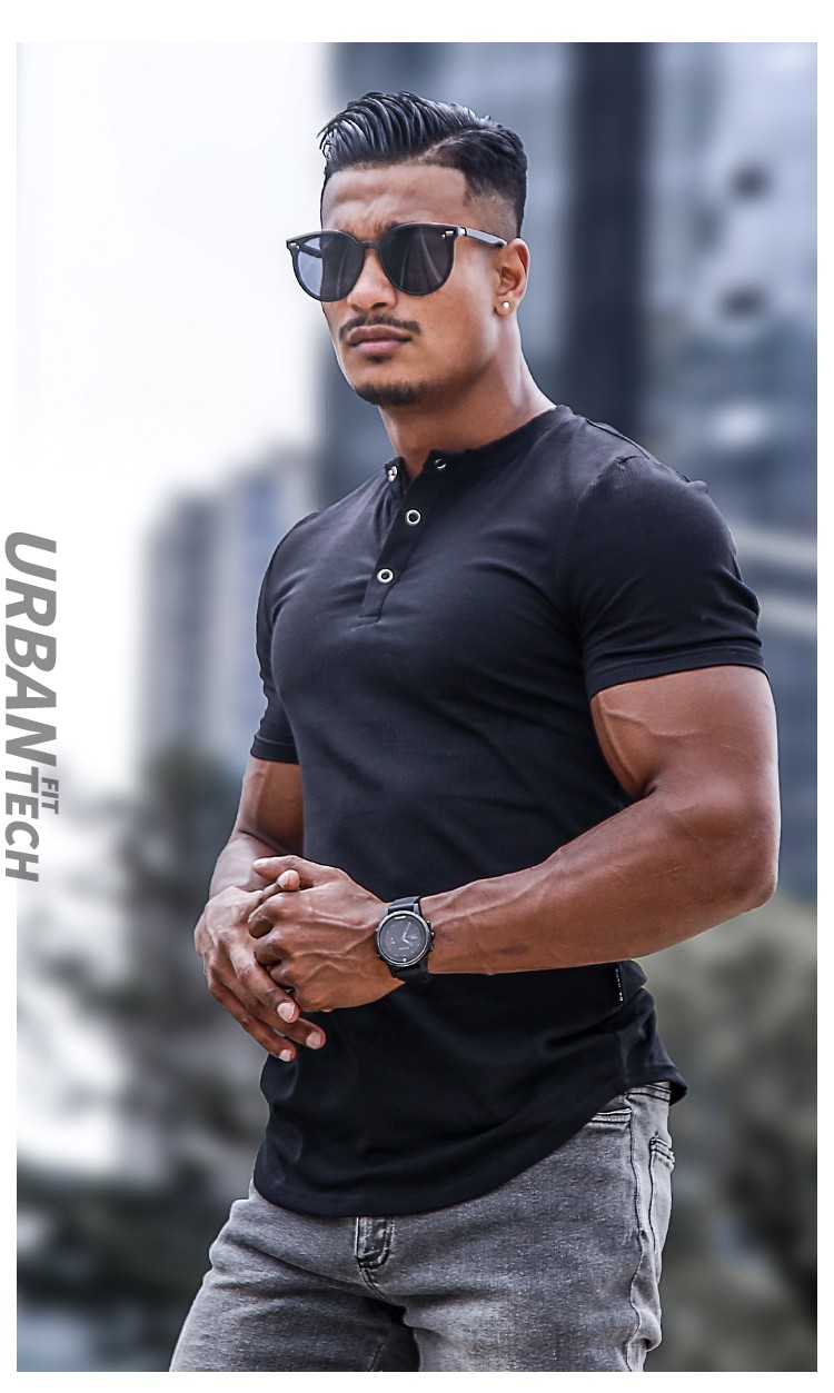 BensonVision sports short-sleeved fitness training t-shirt running casual top solid color slim fit Henry collar bottoming shirt men's summer grass green S