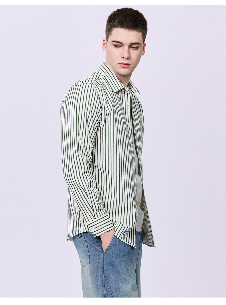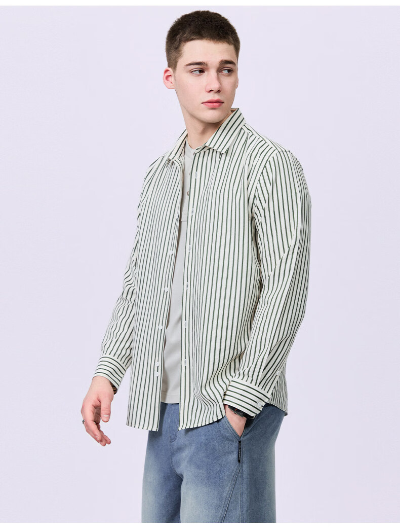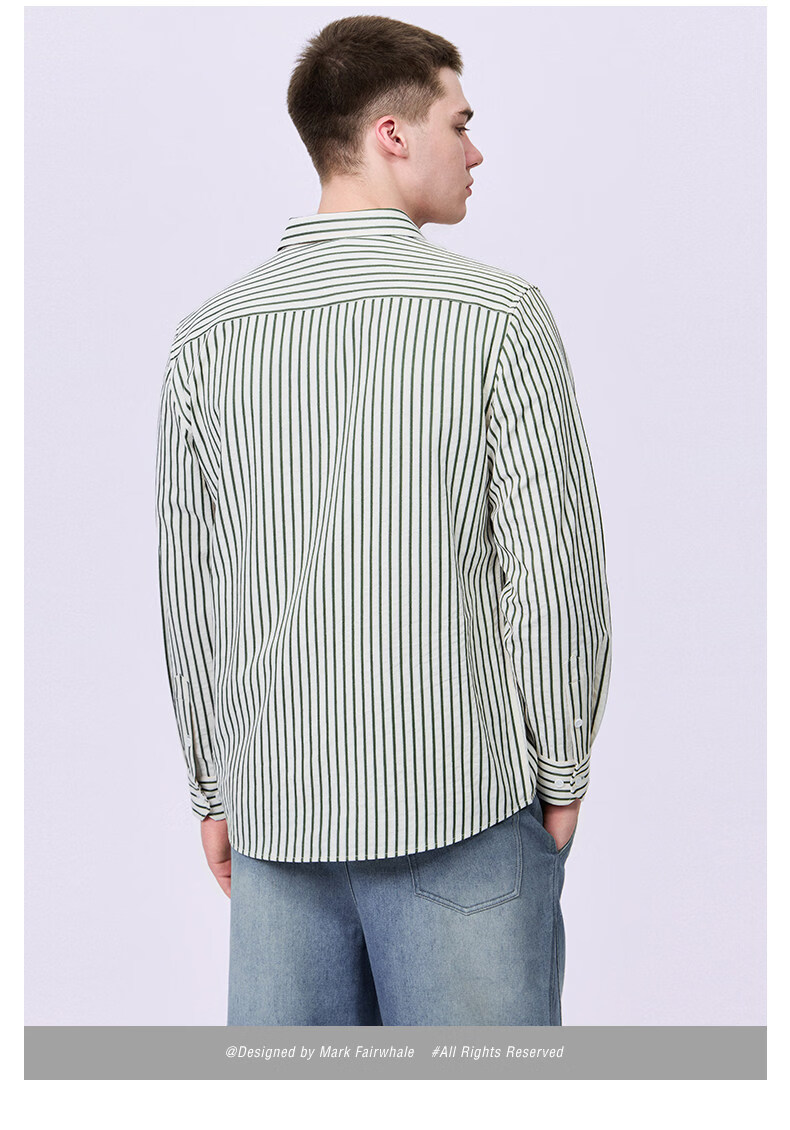 Mark Huafei striped woven lapel long-sleeved shirt men's 2026 spring new trendy handsome shirt jacket