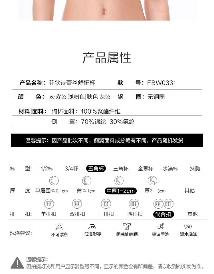 Fandecie Comfort Cup Lace Underwear Women's Wireless Small Breast Push Up Comfortable Breast Control Bra FBW0331 Skin Color SKN 70A