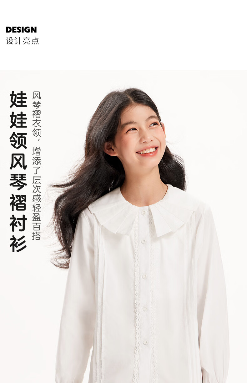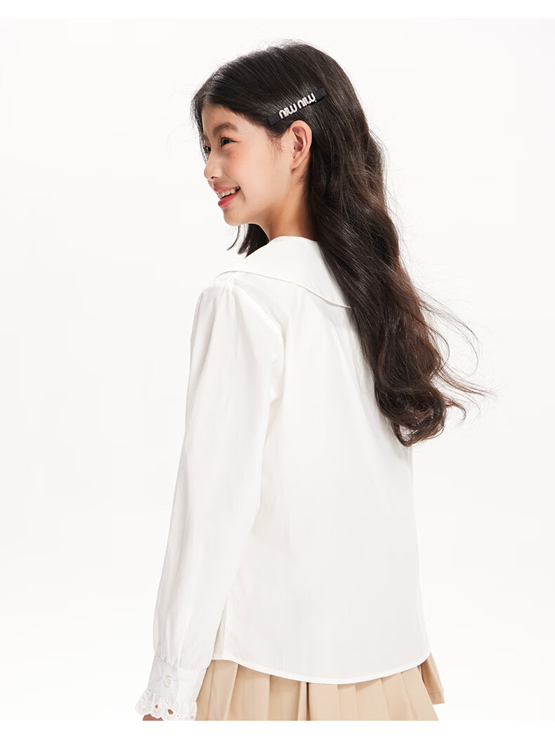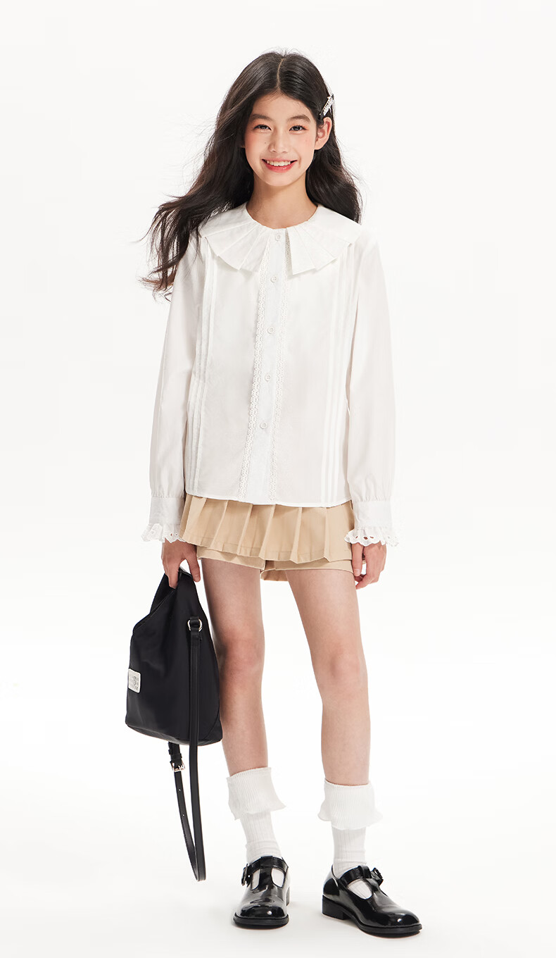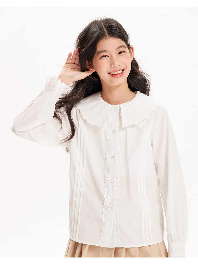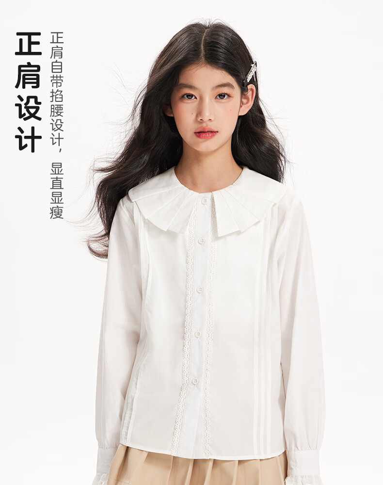 BARRY BANNY Girls' Tencel Lyocell Shirt 2026 Spring Doll Collar Top Loose Cardigan CX506 White 160