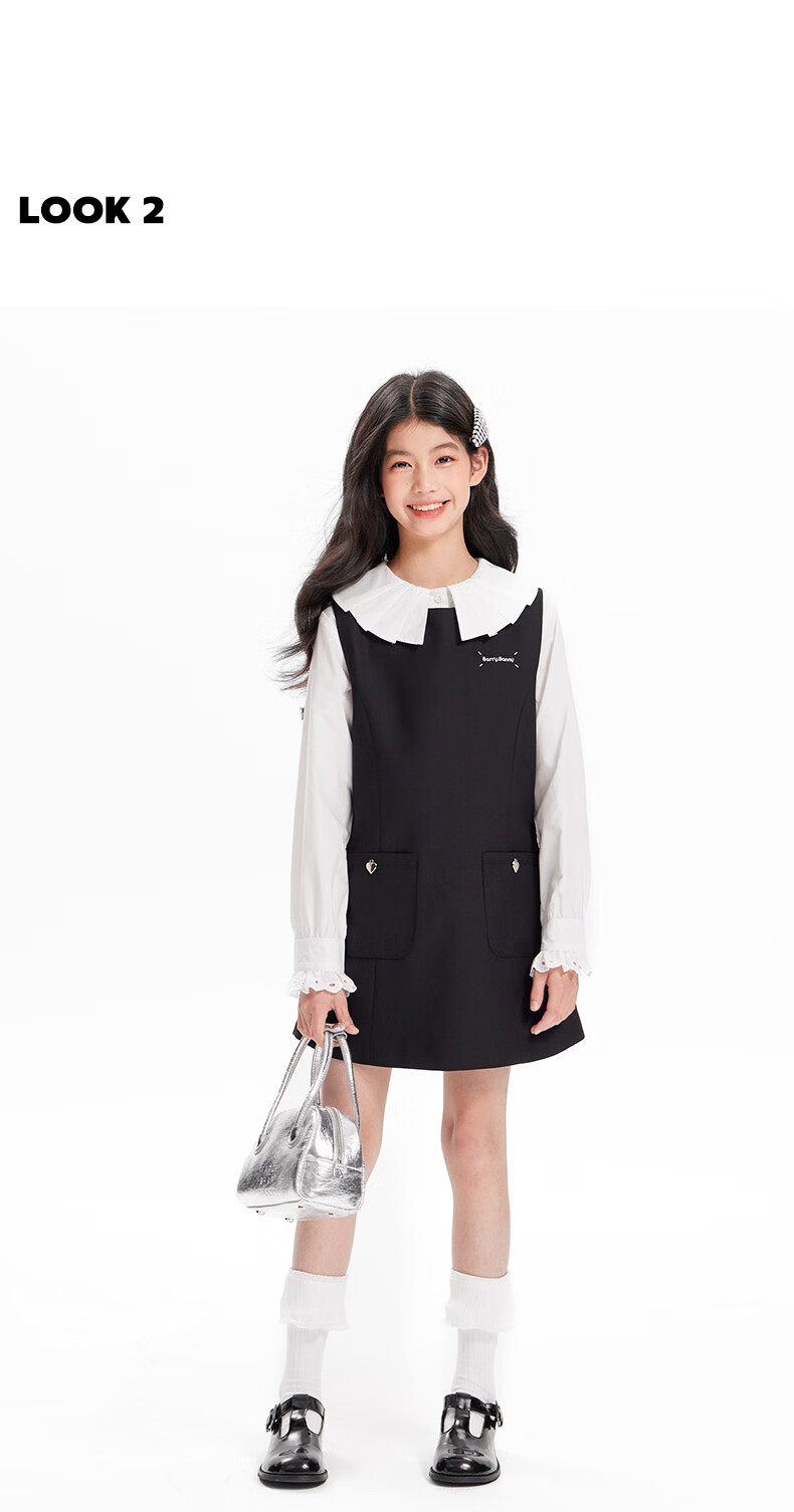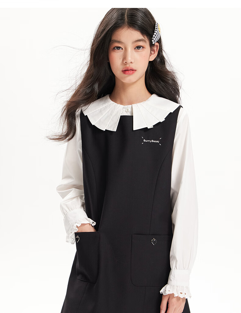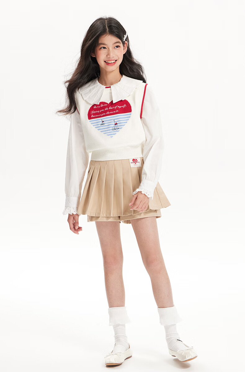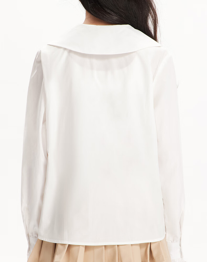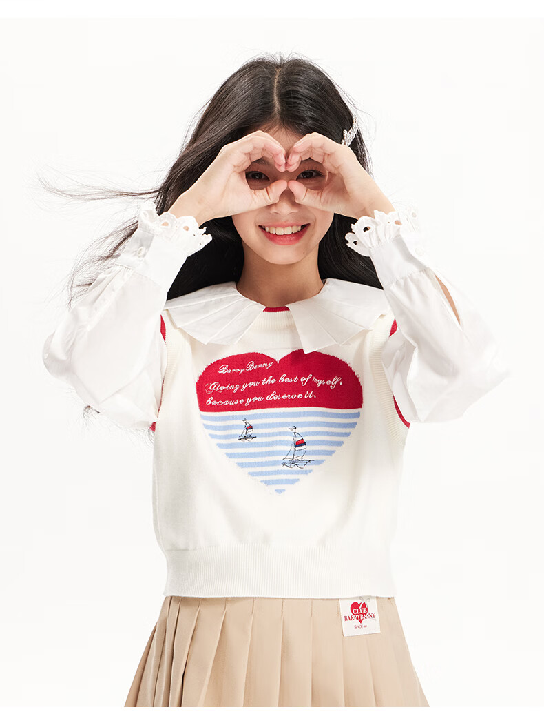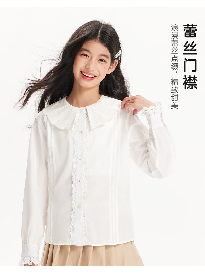 BARRY BANNY Girls' Tencel Lyocell Shirt 2026 Spring Doll Collar Top Loose Cardigan CX506 White 160