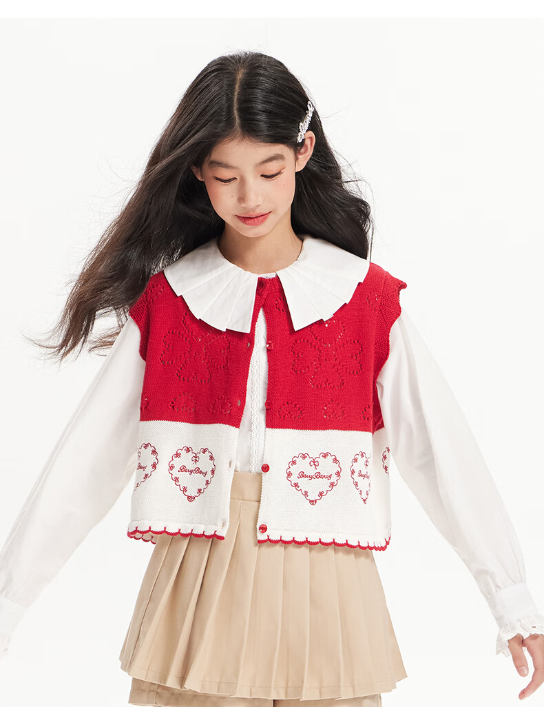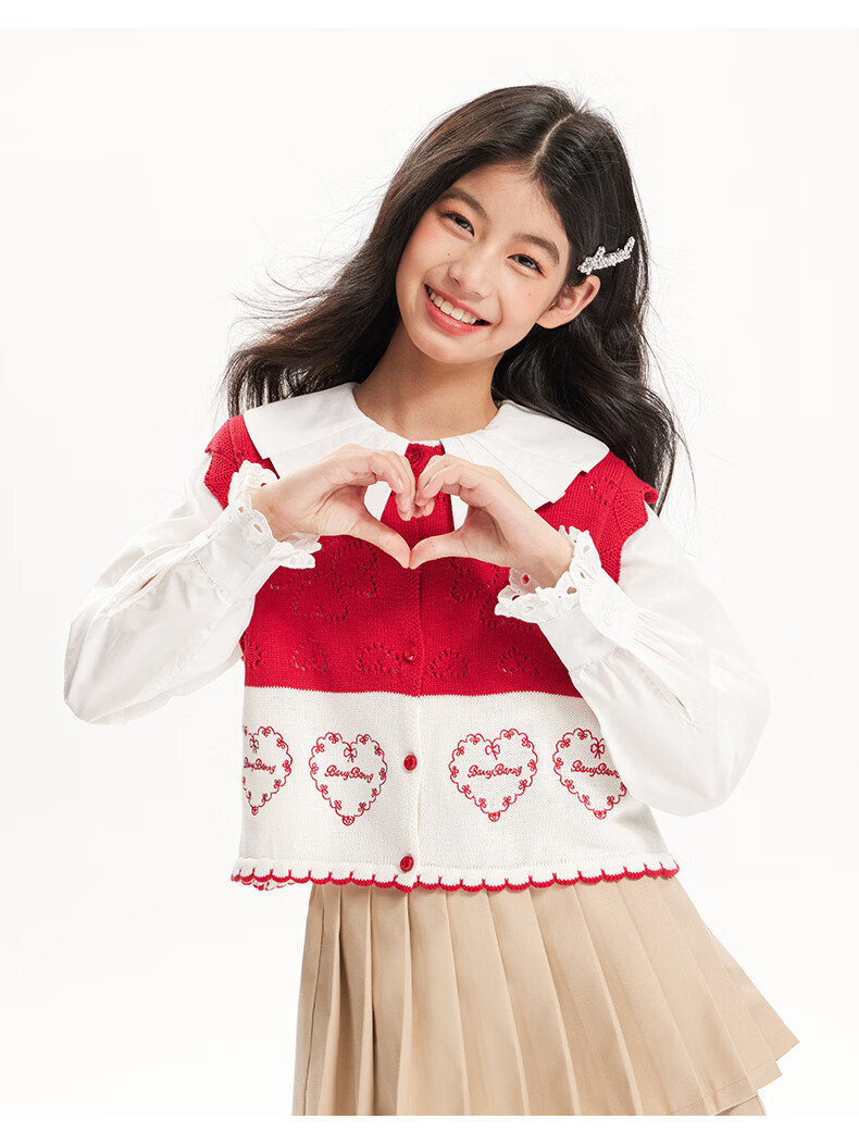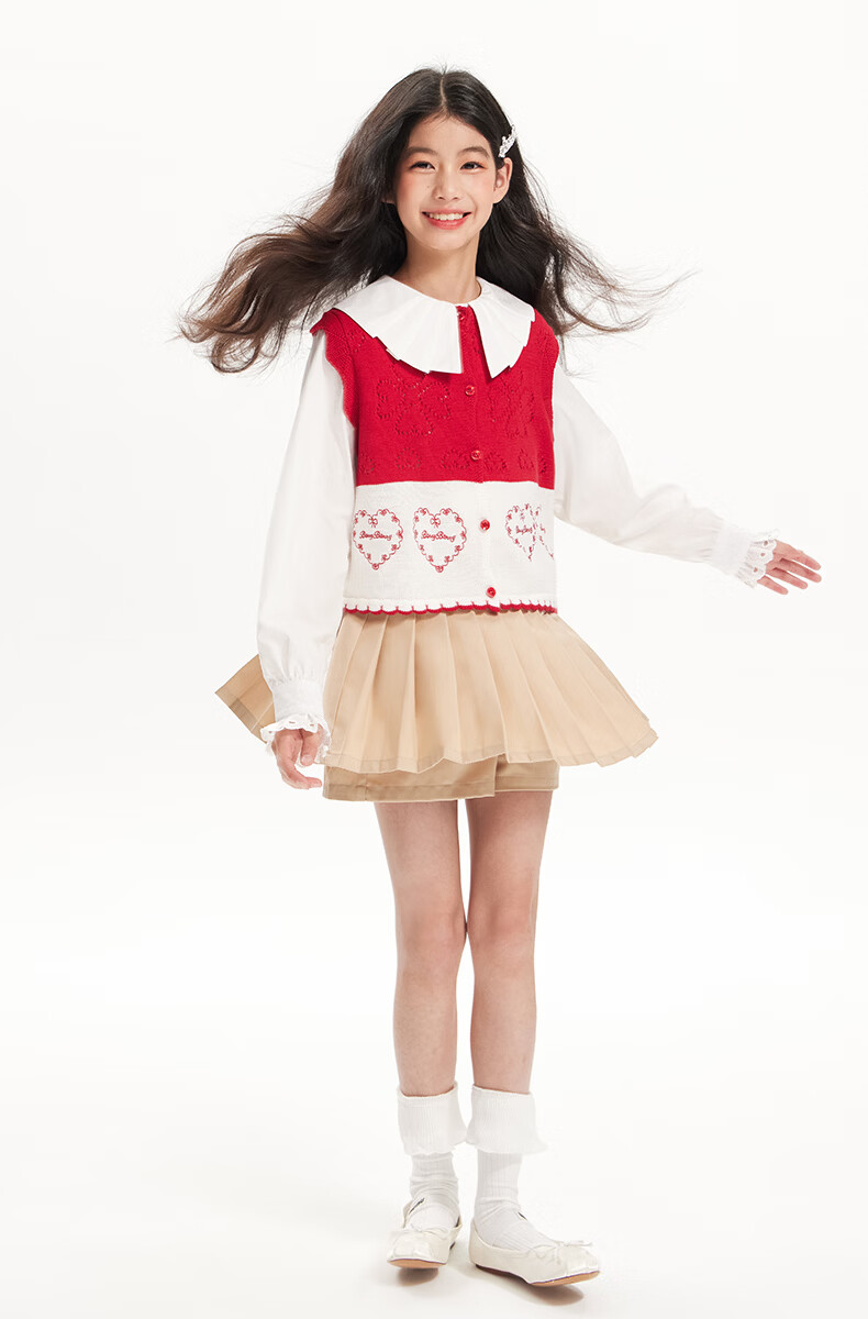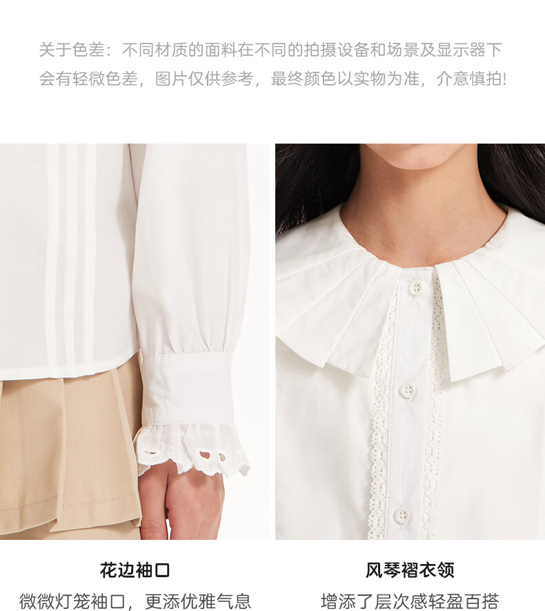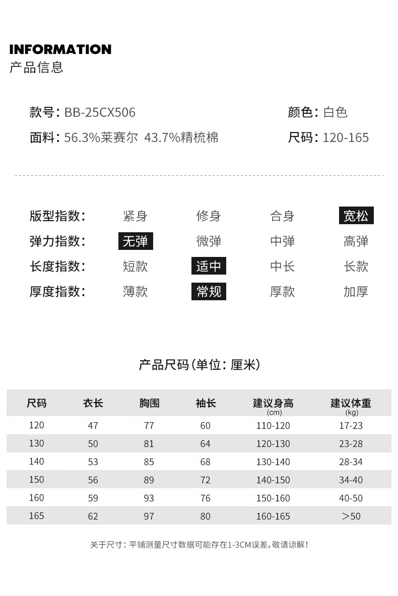 BARRY BANNY Girls' Tencel Lyocell Shirt 2026 Spring Doll Collar Top Loose Cardigan CX506 White 160