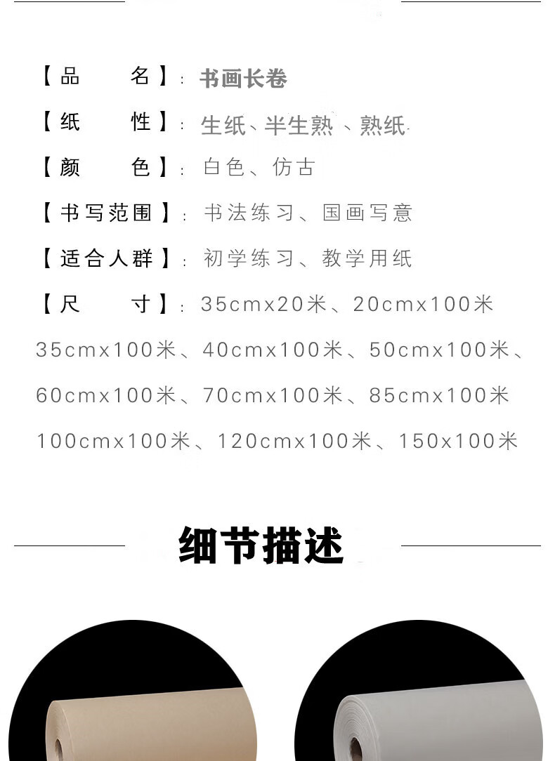 Royal study thickened long scroll calligraphy and painting paper half-cooked Xuan calligraphy paper traditional Chinese painting raw