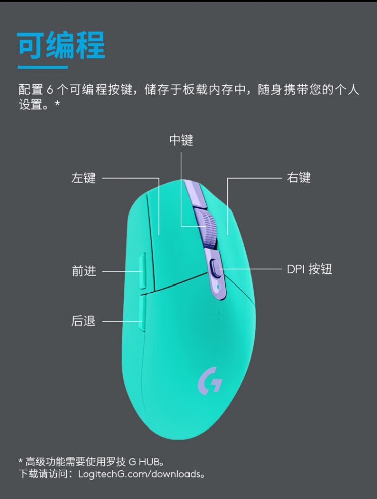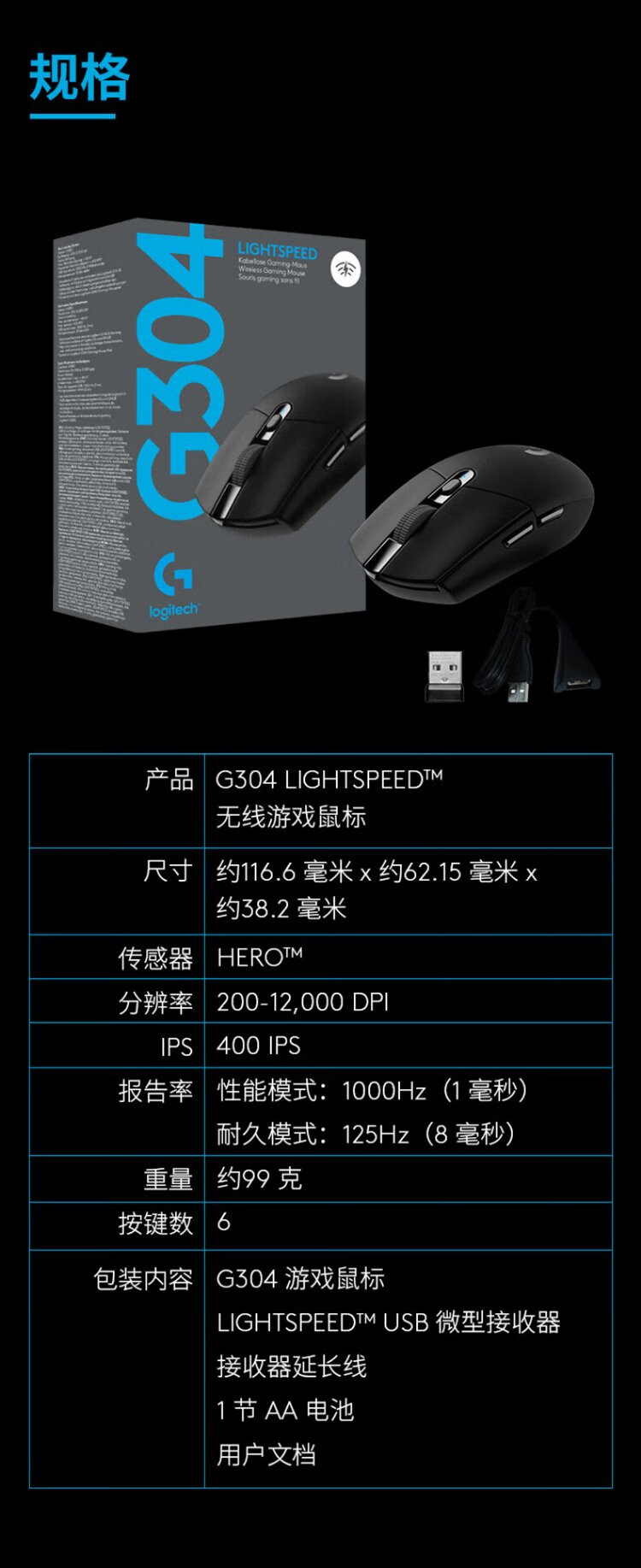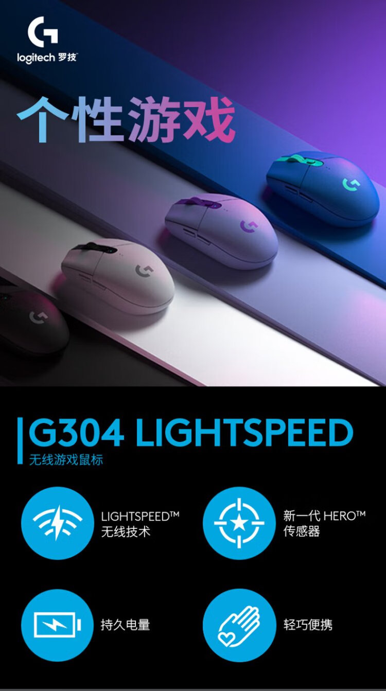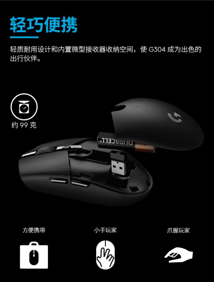 罗技(G)G304无线鼠标 游戏电竞鼠标 中小手鼠标便携轻量化 英雄联盟cs2吃鸡无畏契约送男友生日礼物 G304无线游戏鼠标-黑色