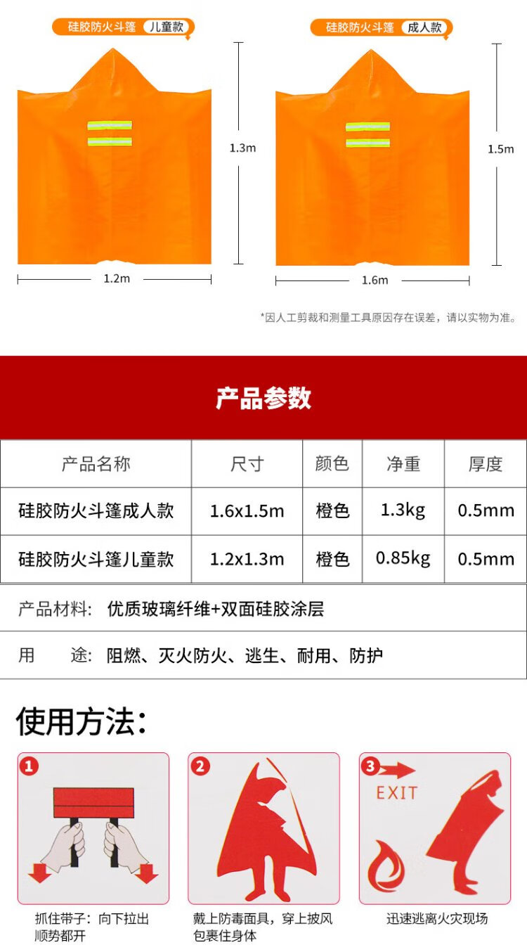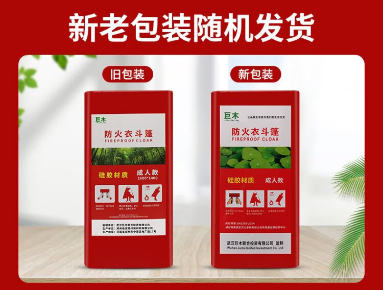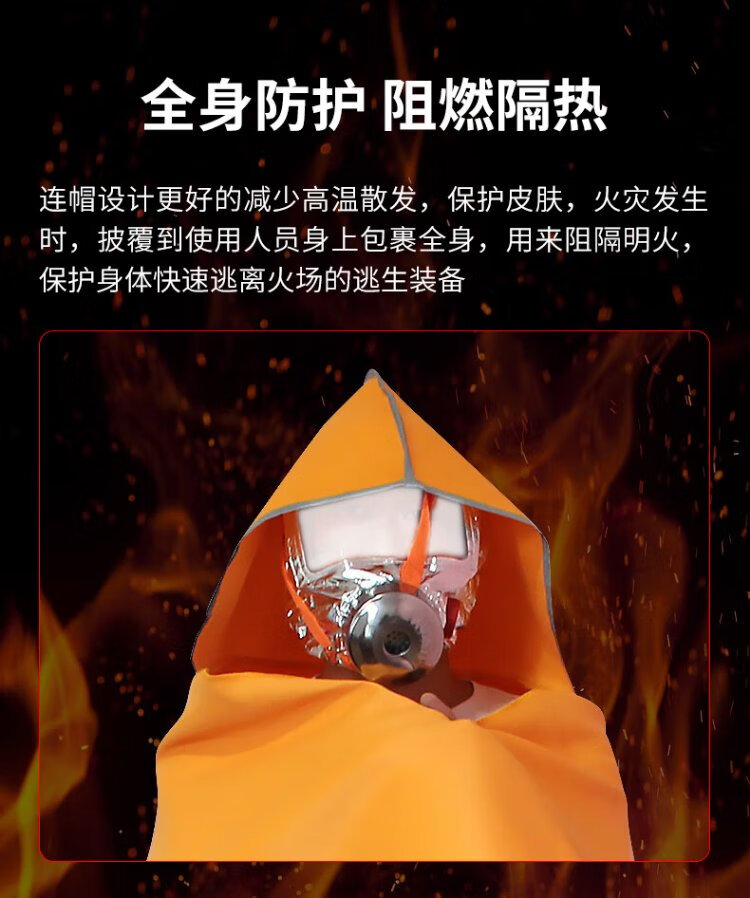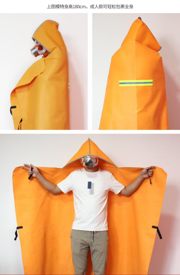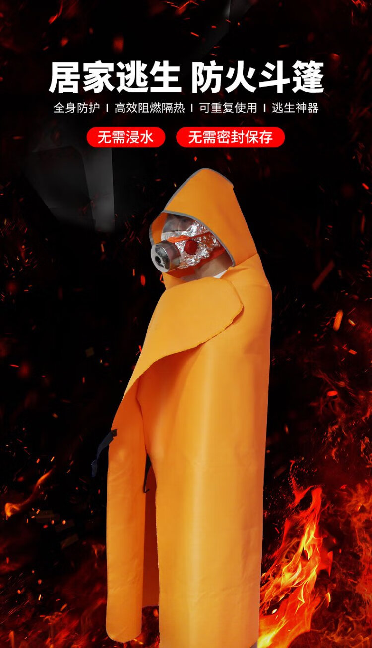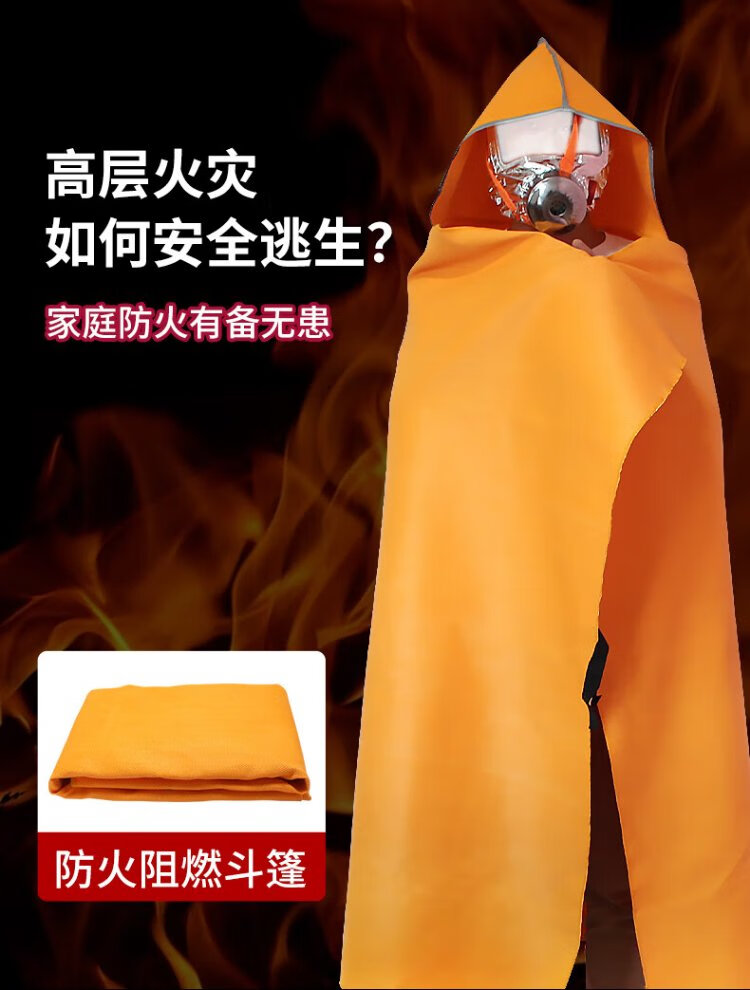 Giant wood fireproof cloak silicone fire blanket cloak home fire escape clothing gas mask fire equipment emergency set fireproof cloak + escape gas mask