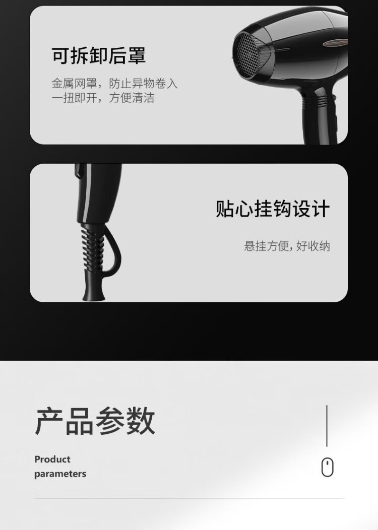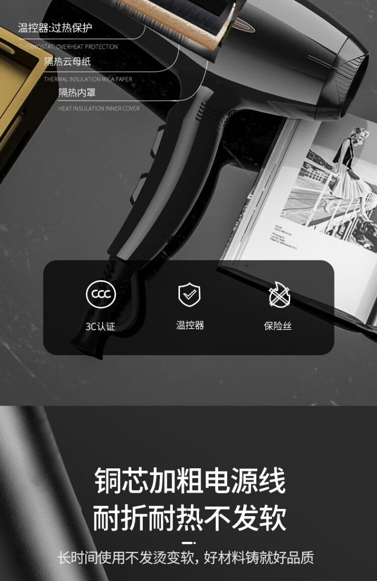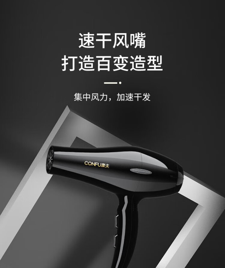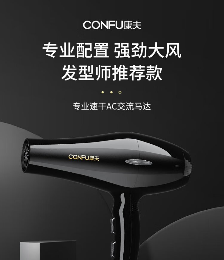 Kangfu hair dryer home high-power barber shop professional electric air blower hot and cold air constant temperature hair dryer KF-9817 black