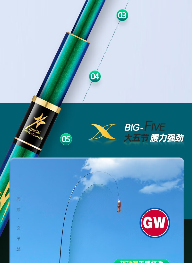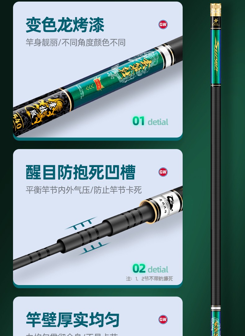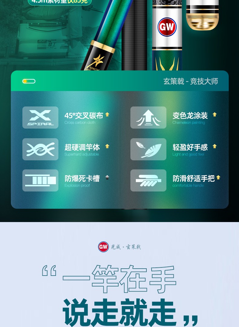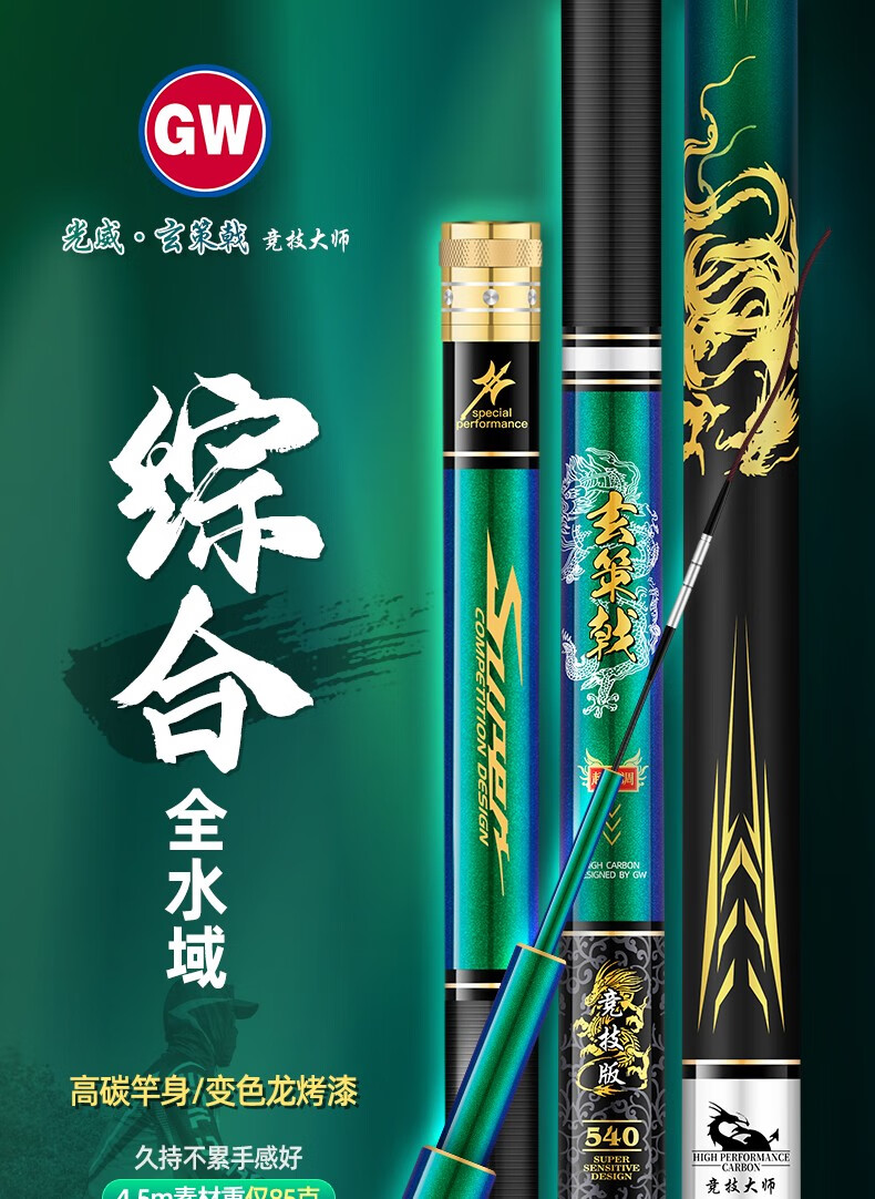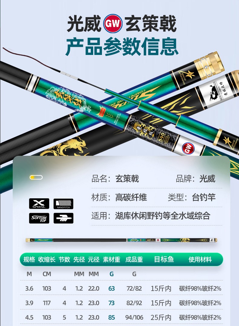 GW Guangwei fishing rod Xuance Ji competitive version ultra-light and hard 28 adjustable height carbon table fishing rod crucian carp rod black pit rod 3.6m + rod slightly + metal rod stop