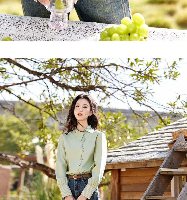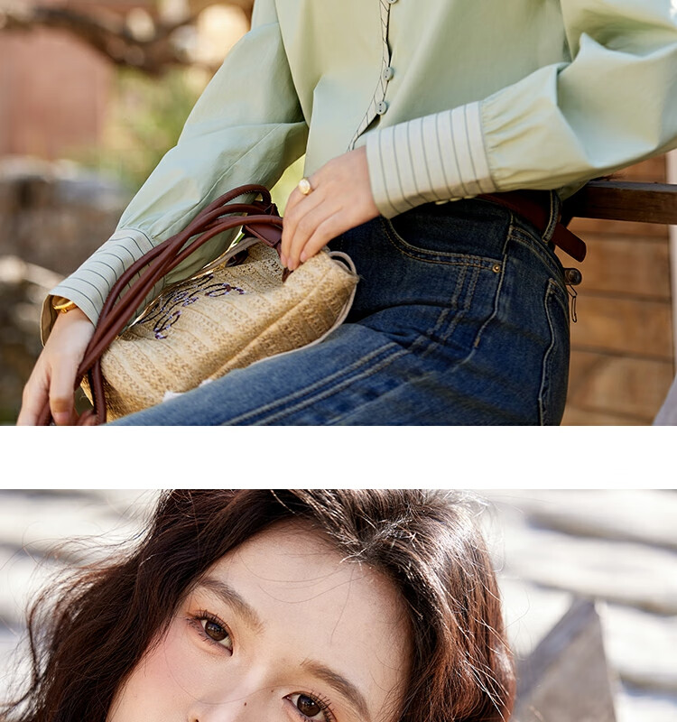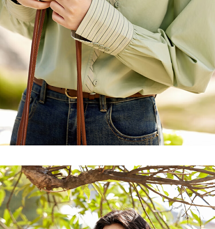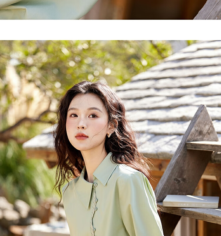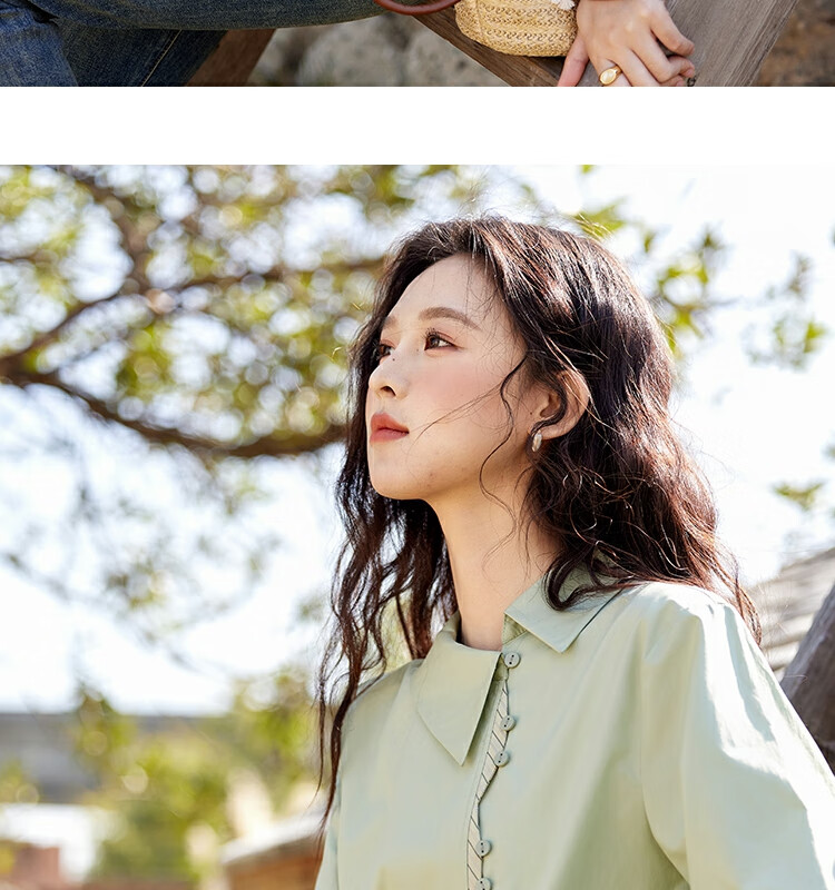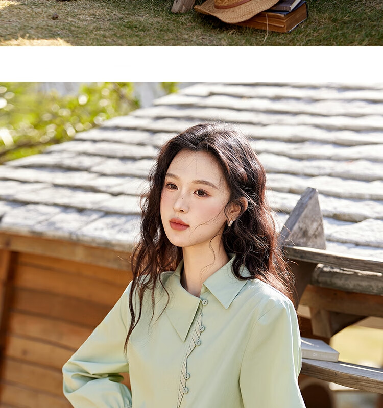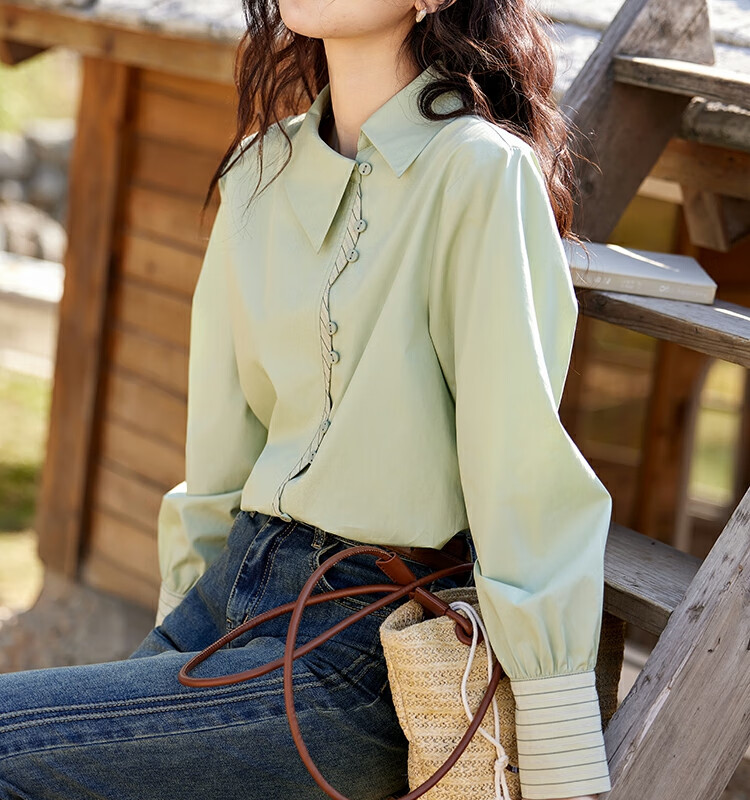 Mystery Show Reassuring Quality Tencel Cotton Striped Splicing Green Shirt 2026 Spring High-Quality Small Shirt for Women