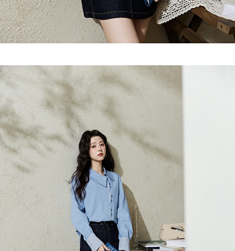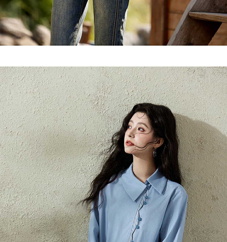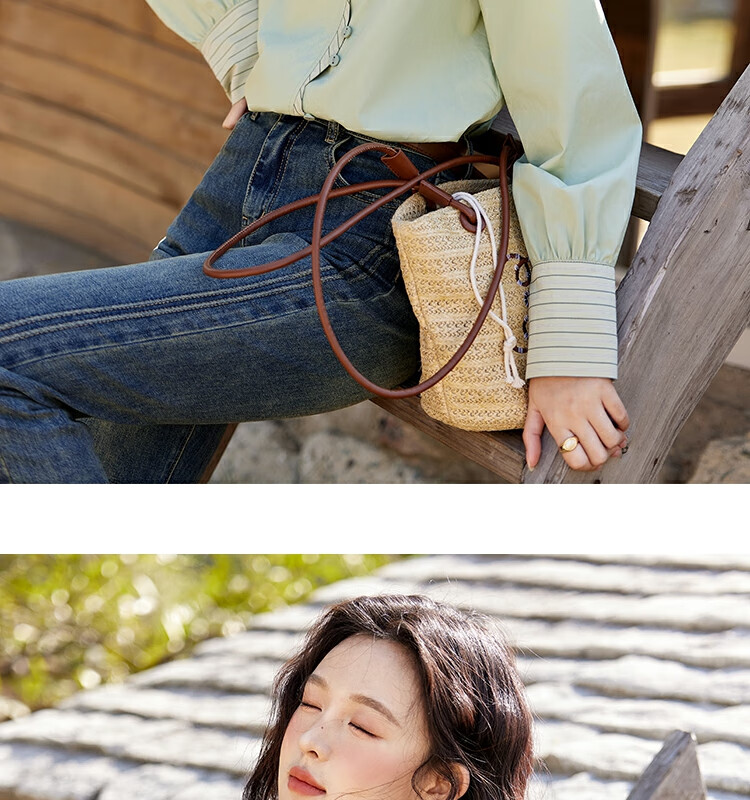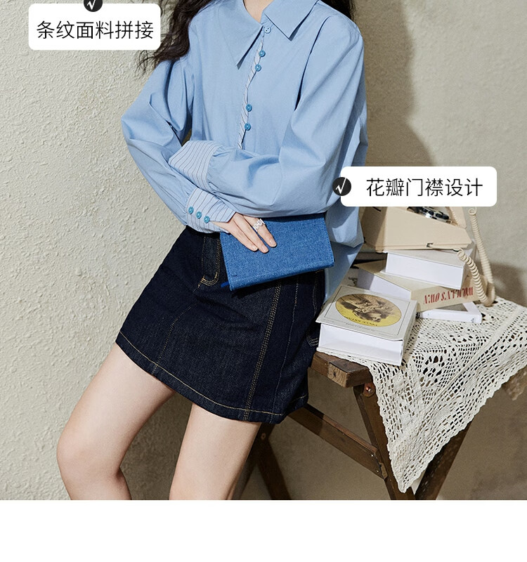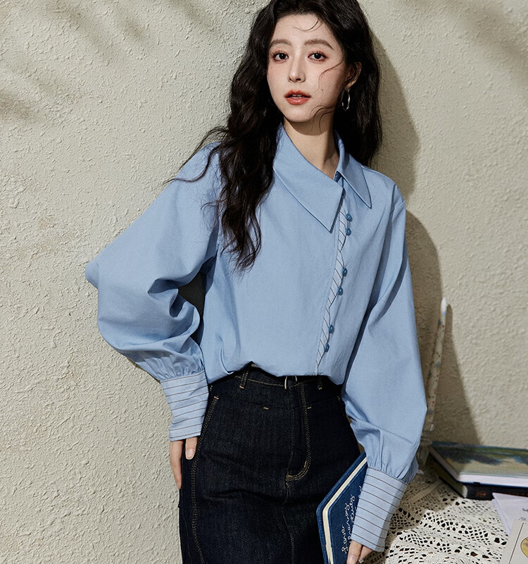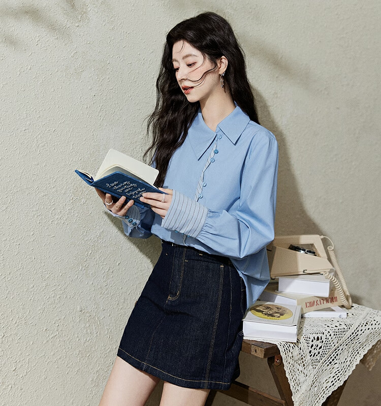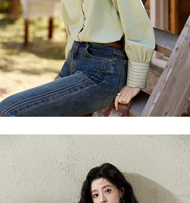 Mystery Show Reassuring Quality Tencel Cotton Striped Splicing Green Shirt 2026 Spring High-Quality Small Shirt for Women