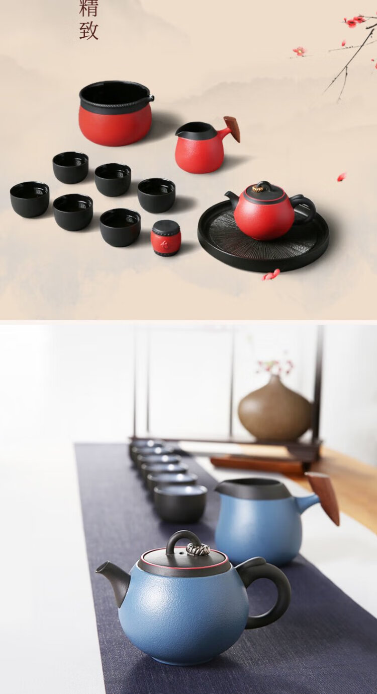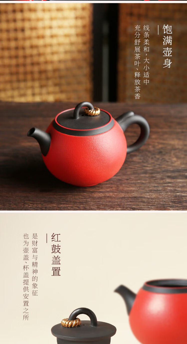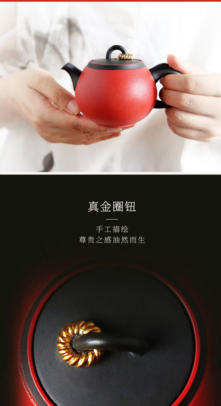 Lu Bao high-end complete set of Kung Fu tea set for home office ceramic teapot teacup set gift box Jinxihuan tea set single lid - red