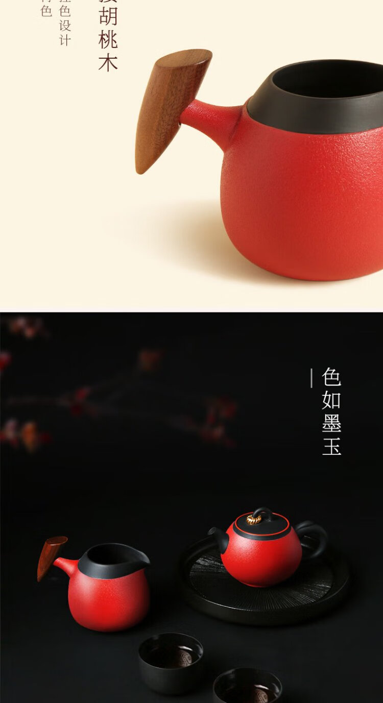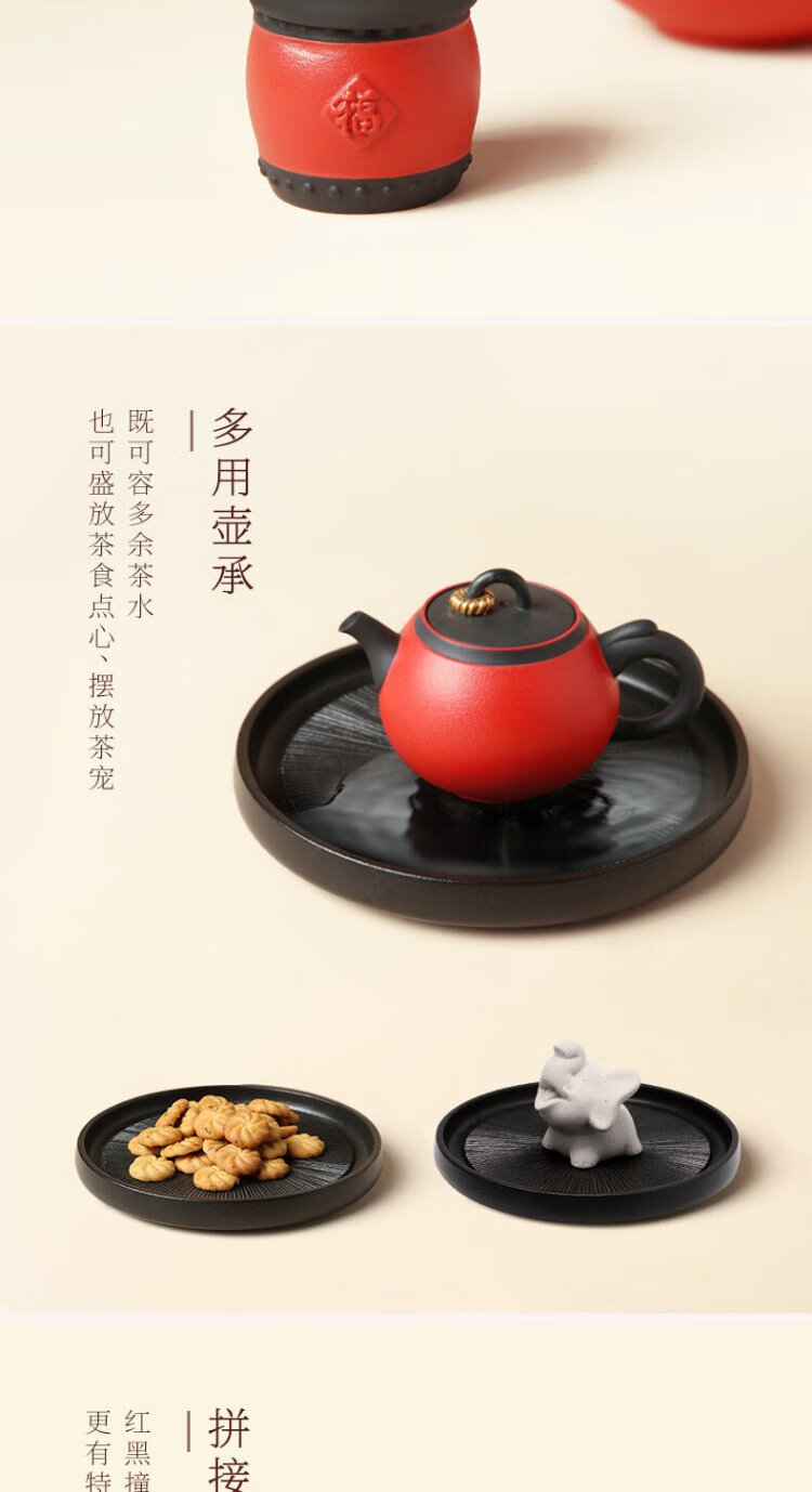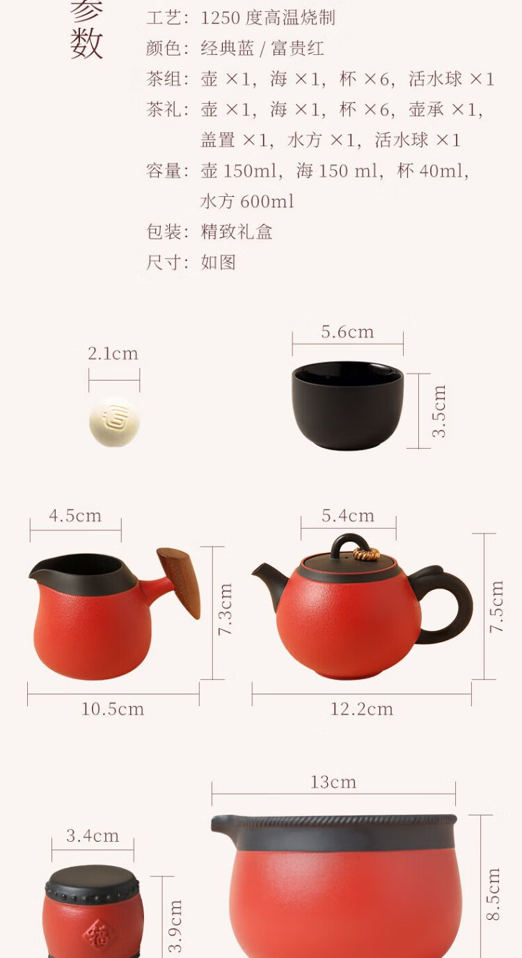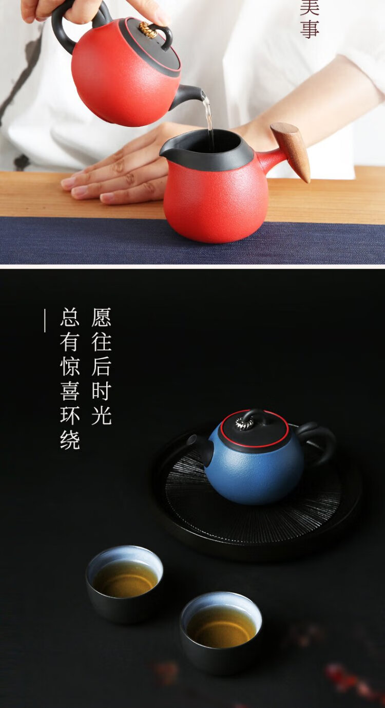 Lu Bao high-end complete set of Kung Fu tea set for home office ceramic teapot teacup set gift box Jinxihuan tea set single lid - red