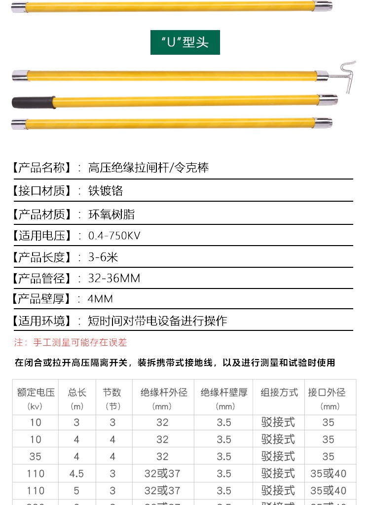 Lingke rod high voltage insulating rod opening rod insulating rod electrician power telescopic operating rod 10 kV super hard 35kv 1 meter middle section