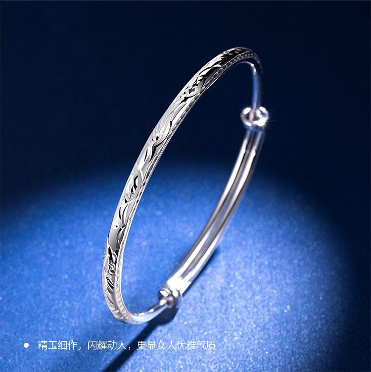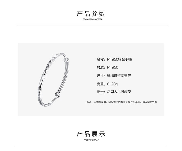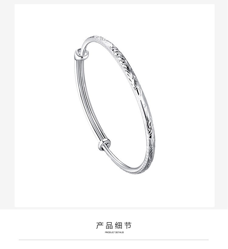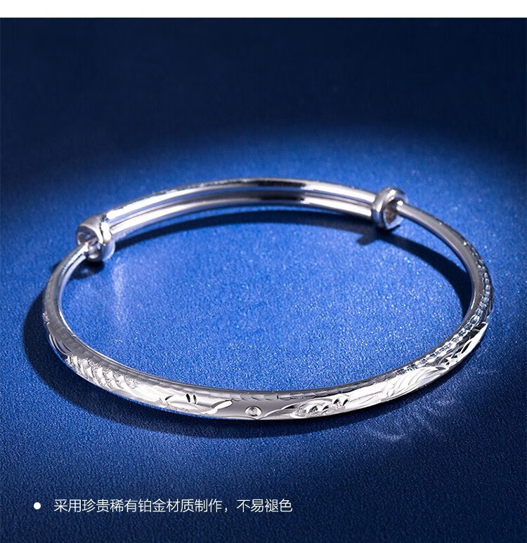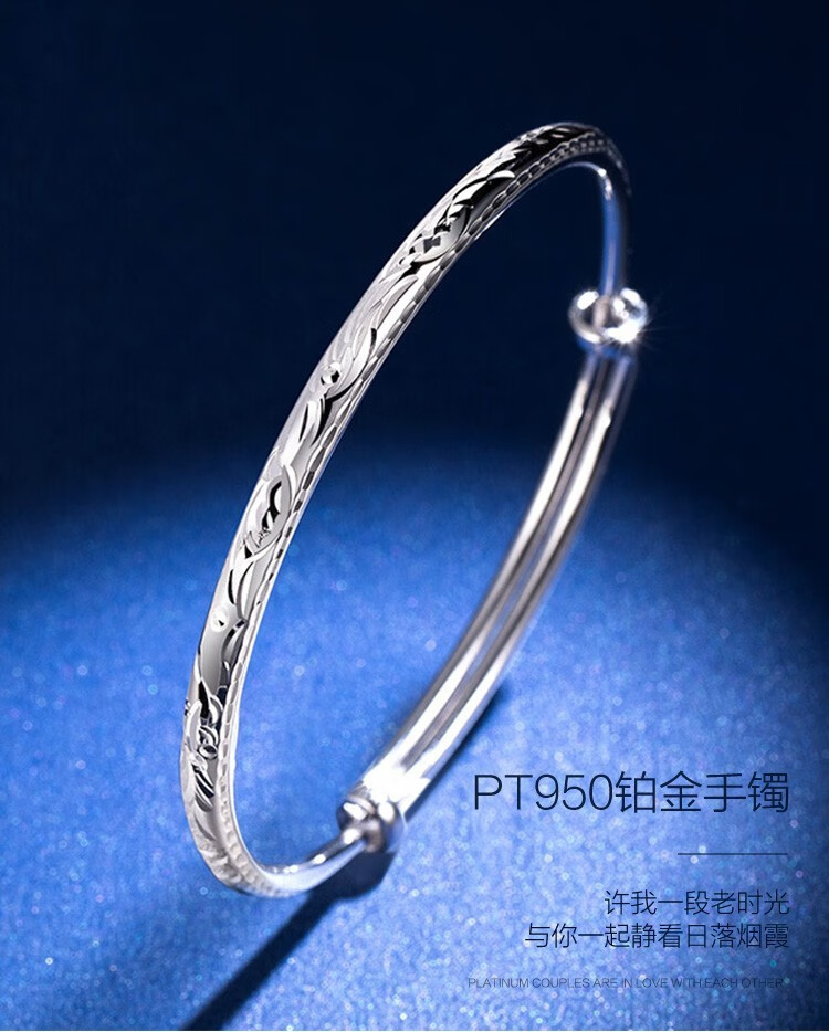 Jintiandi Jewelry Platinum Bracelet PT950 Round Rod Dragon and Phoenix Bracelet Live Mouth Push-Pull Adjustable Size 10.56g Supports Inspection, Get Three for a Fake