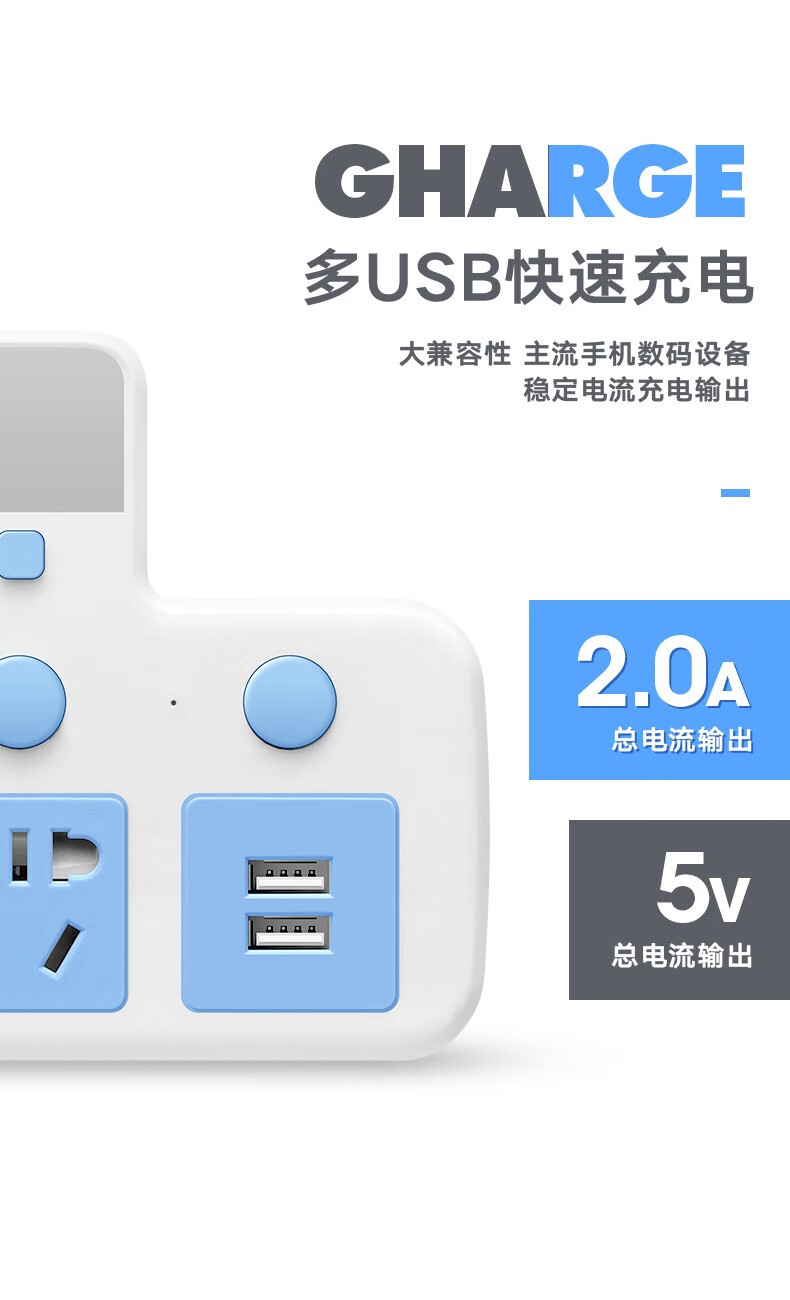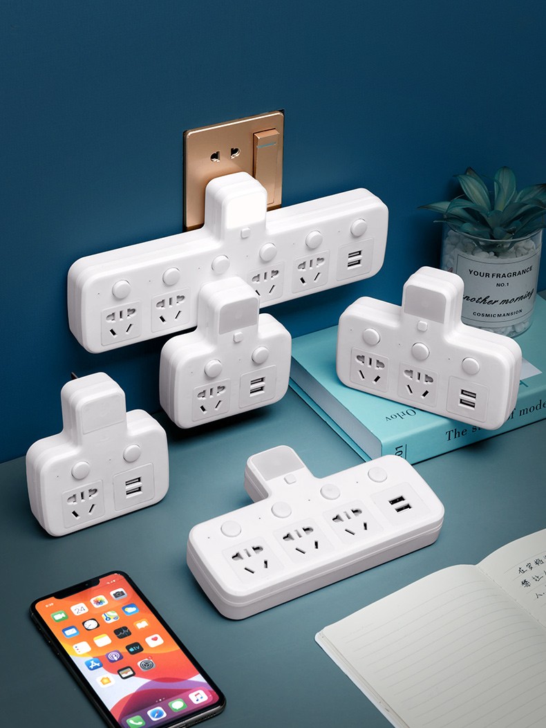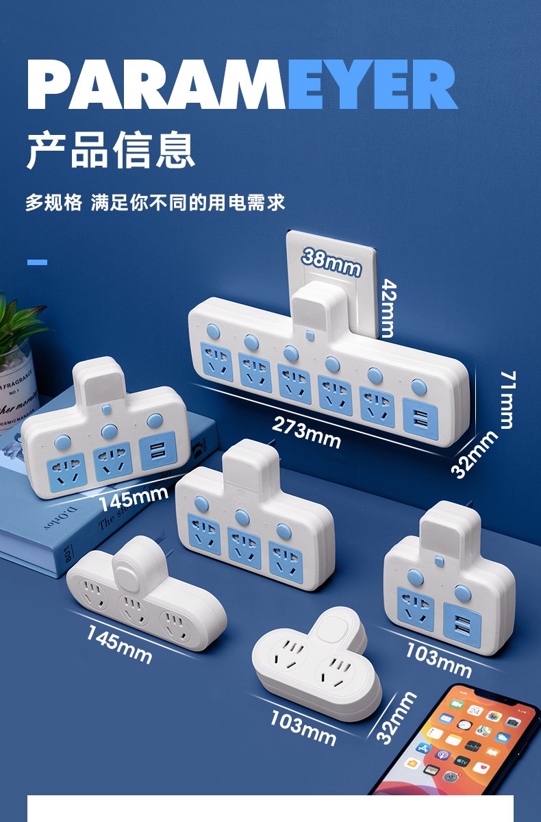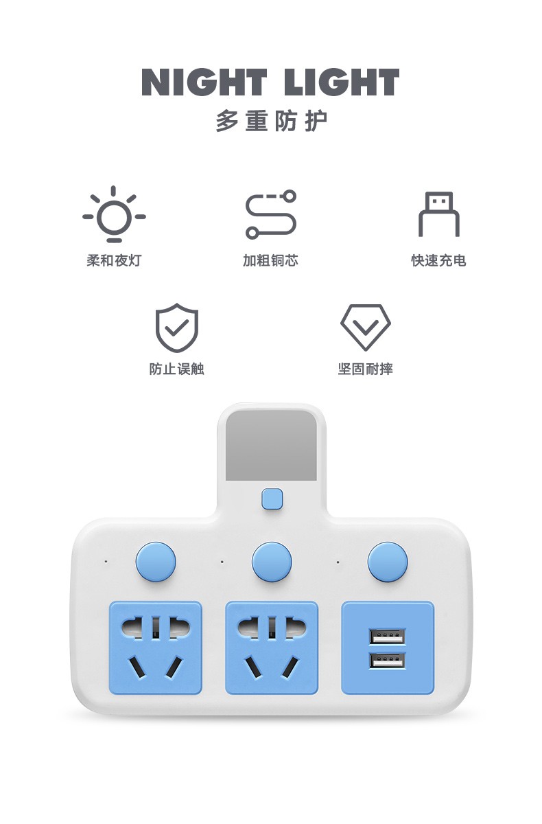 Socket Converter Multi-function Wireless Conversion Plug Home Power Converter One-to-Multiple Socket Strips Without Cord Expansion Plate Sub-Control Switch Night Light Gongya Multi-function USB Strip One-to-Two Sockets (Sub-Control Switch) G2 Blue