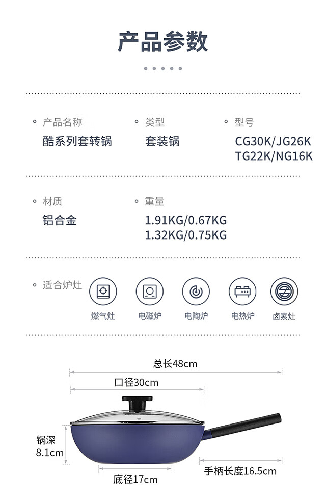 Chuidahuang pot set, wok, non-stick pot, household wok, frying pan, soup milk pot, gas induction cooker, universal (30cm wok + 26cm frying pan) 2-piece set