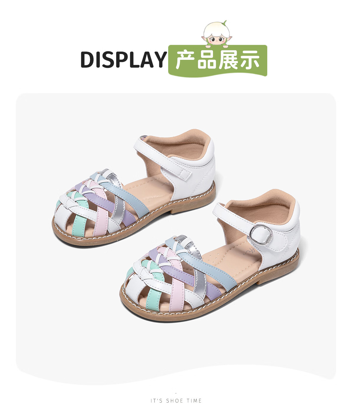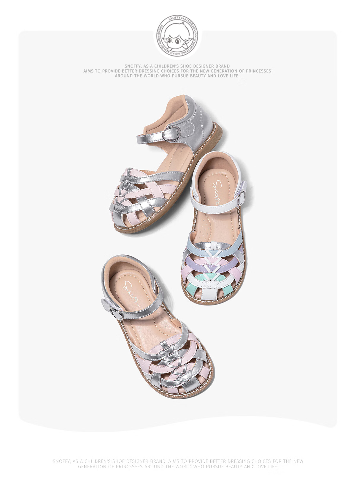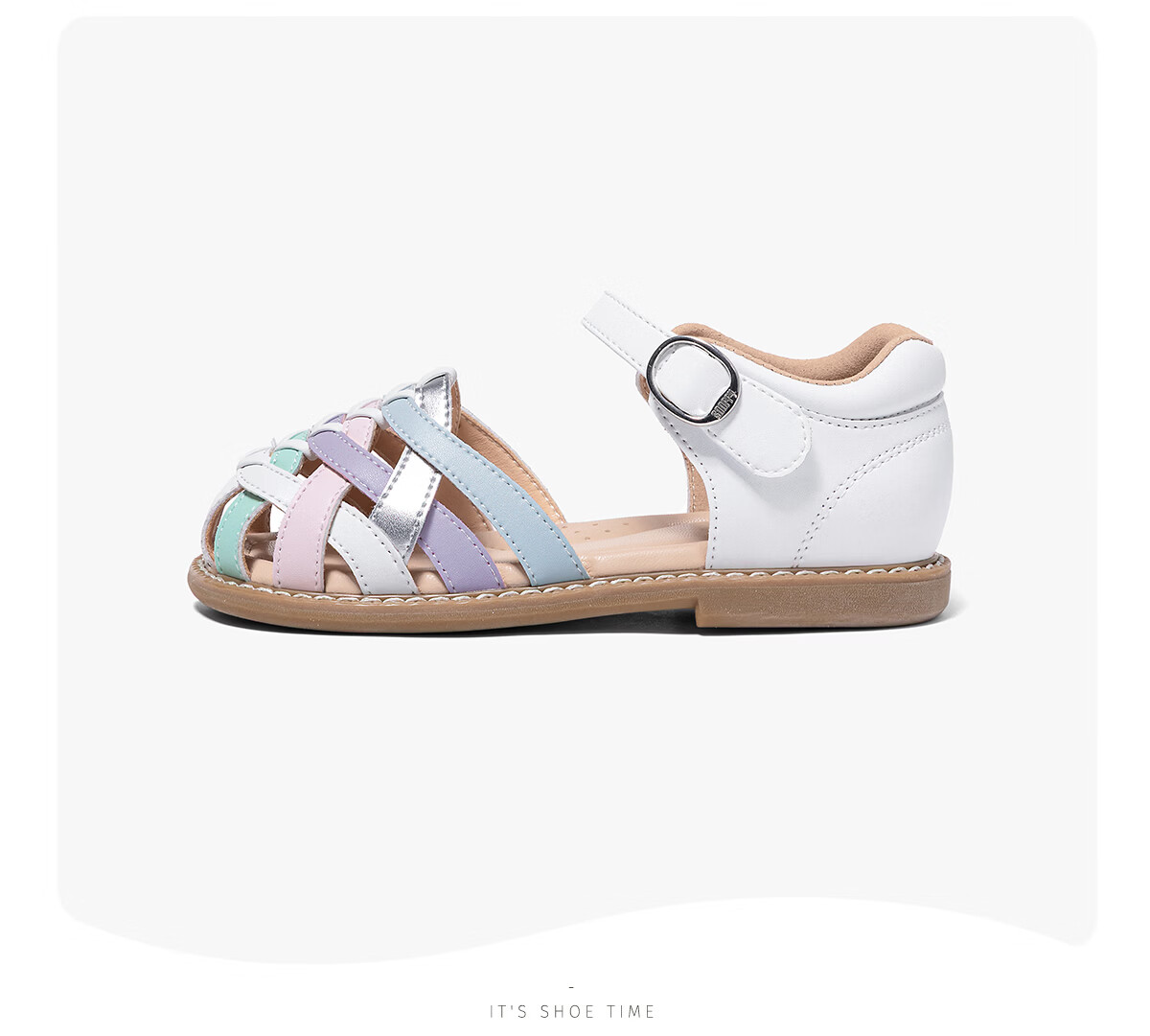 Snuffy Girls Sandals Colorful Braided Children's Roman Sandals Summer Comfortable Little Girls Beach Shoes White/Color 27