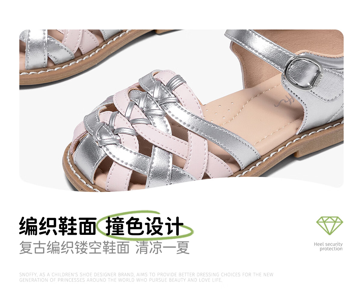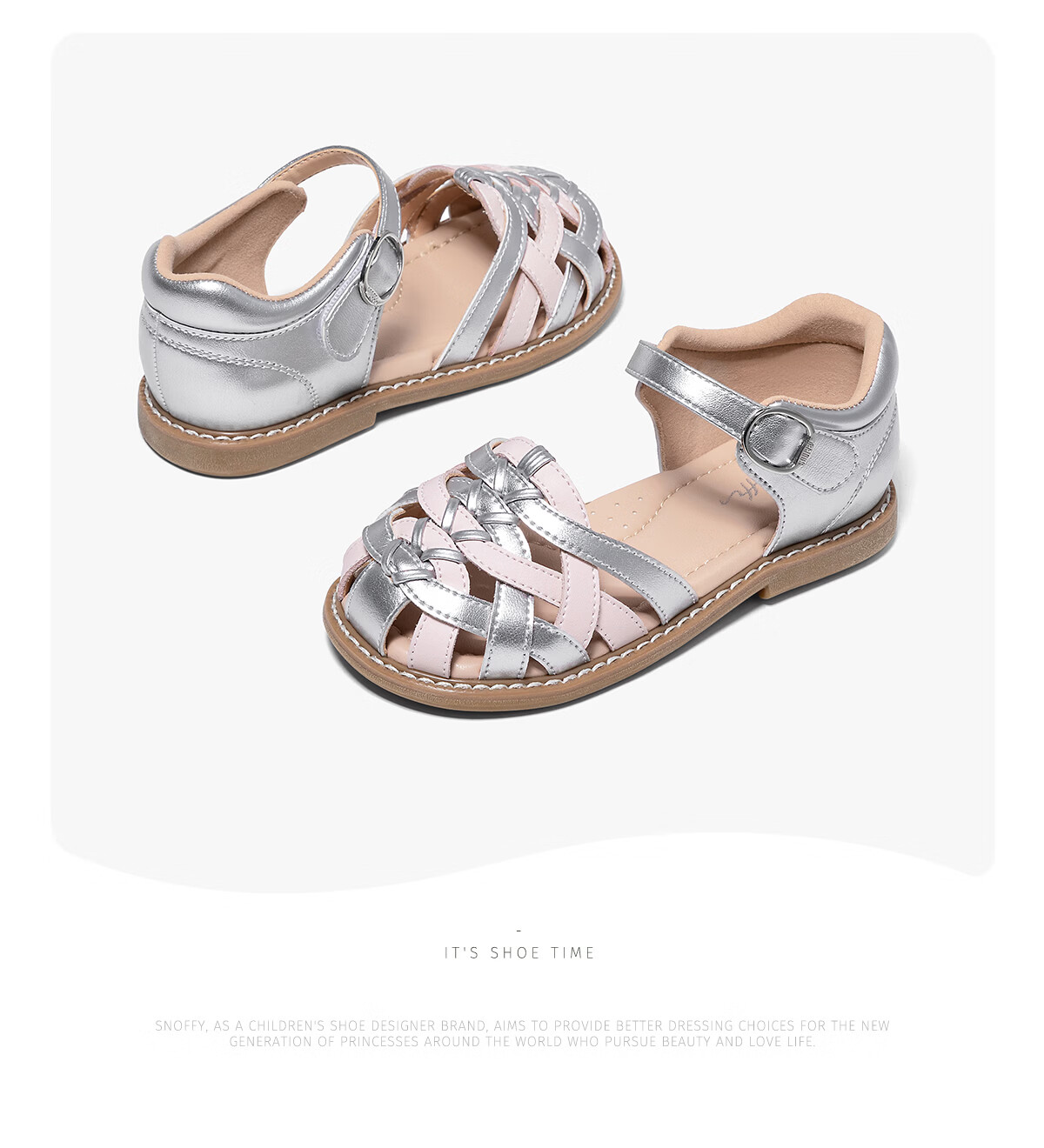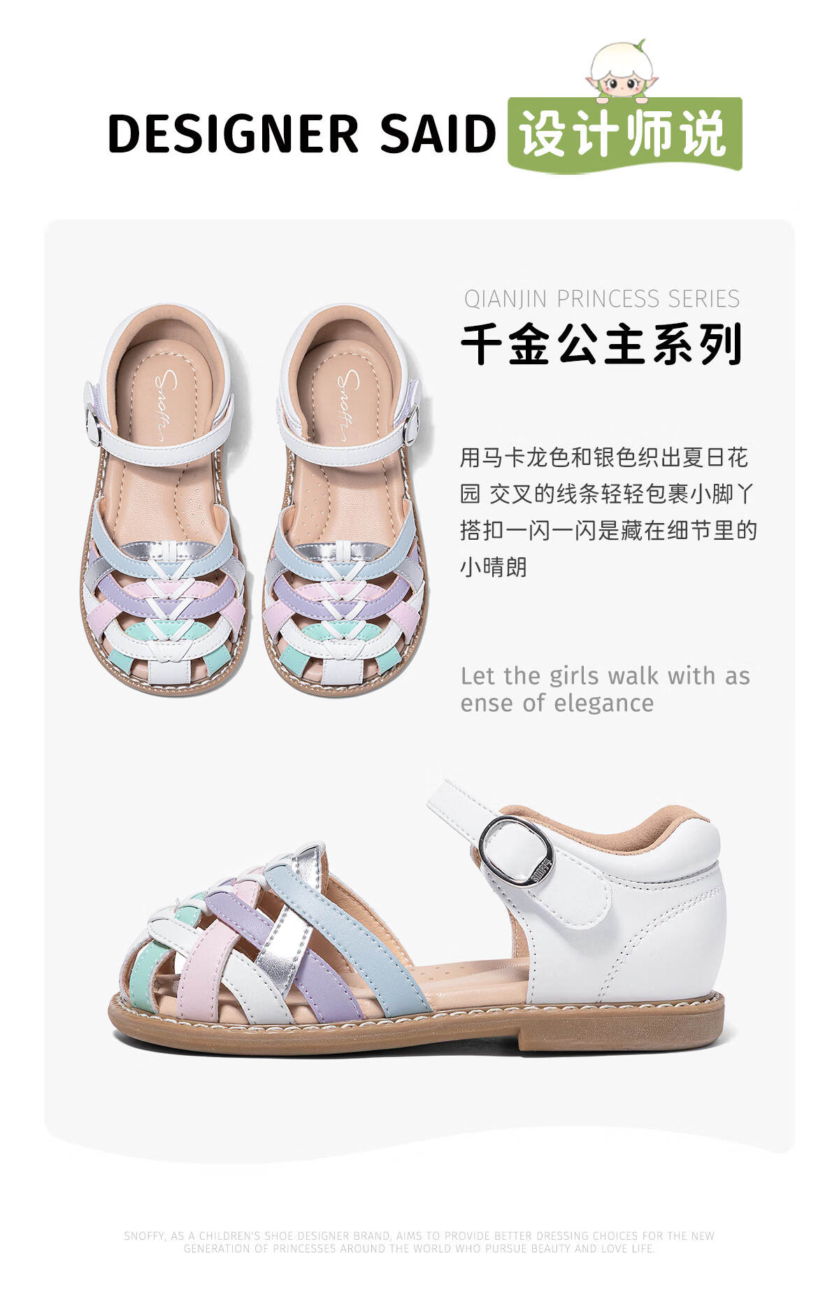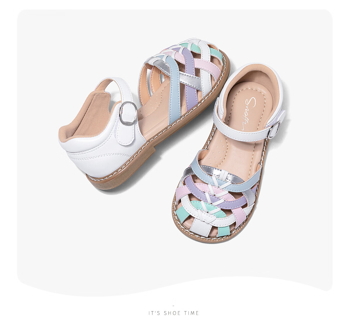 Snuffy Girls Sandals Colorful Braided Children's Roman Sandals Summer Comfortable Little Girls Beach Shoes White/Color 27