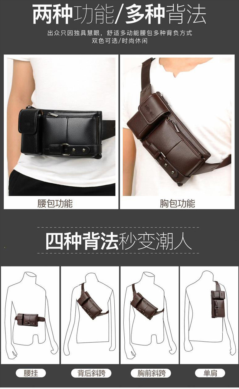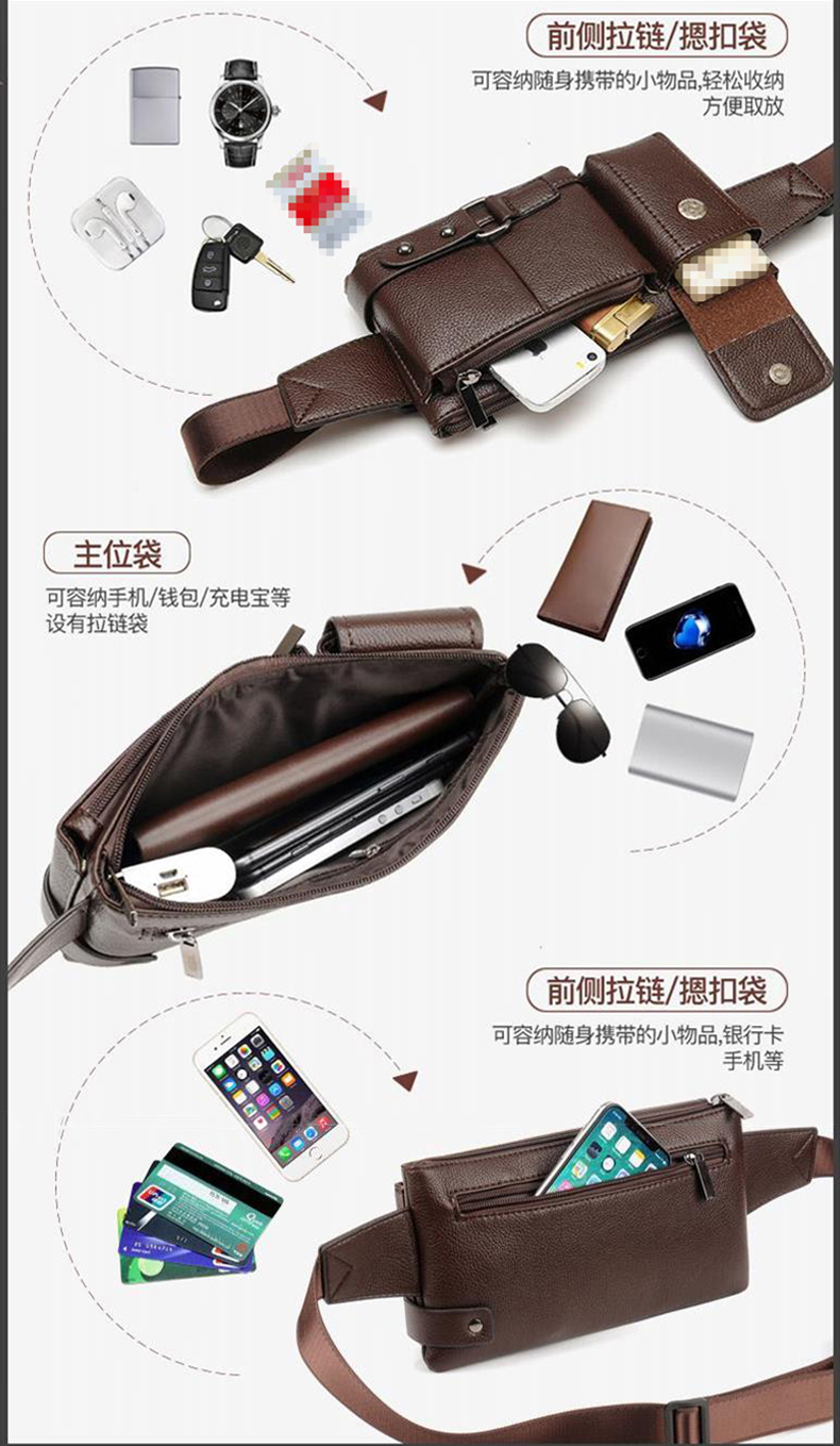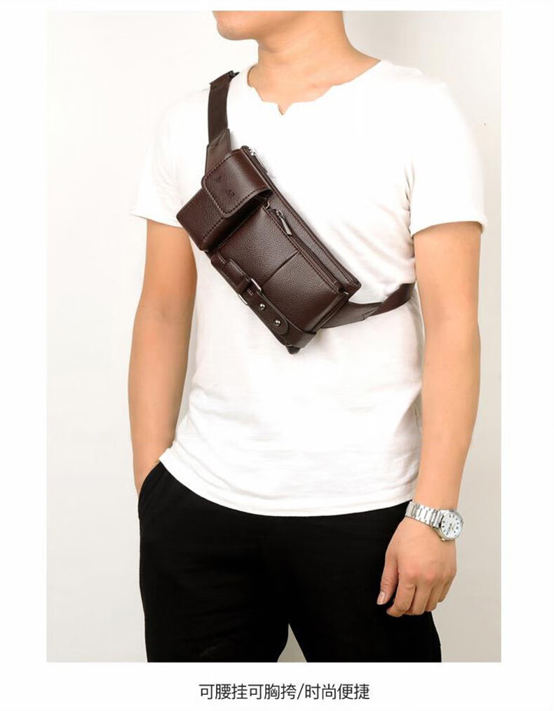 Tianzhuan MUGAR walking bag fashionable chest bag waist bag men's multi-functional large-capacity mobile phone bag crossbody shoulder HB008 brown large size