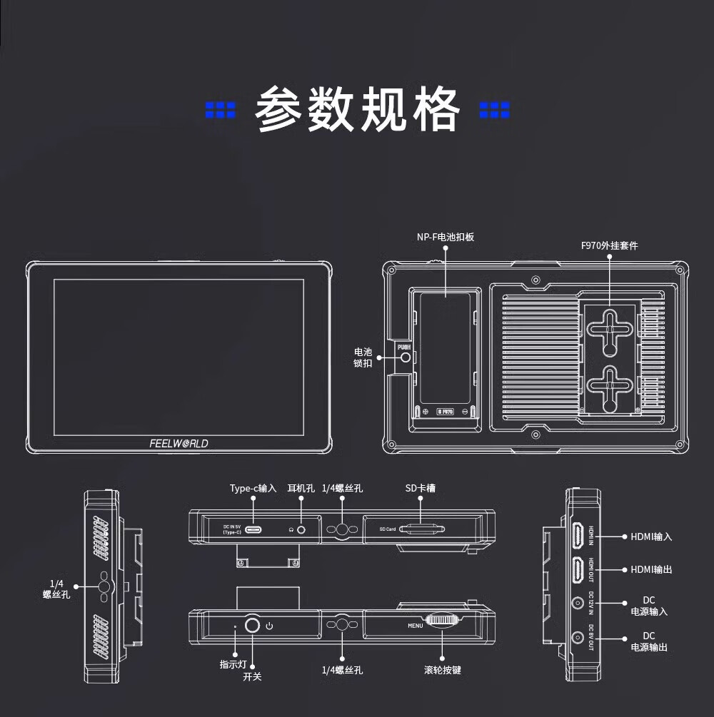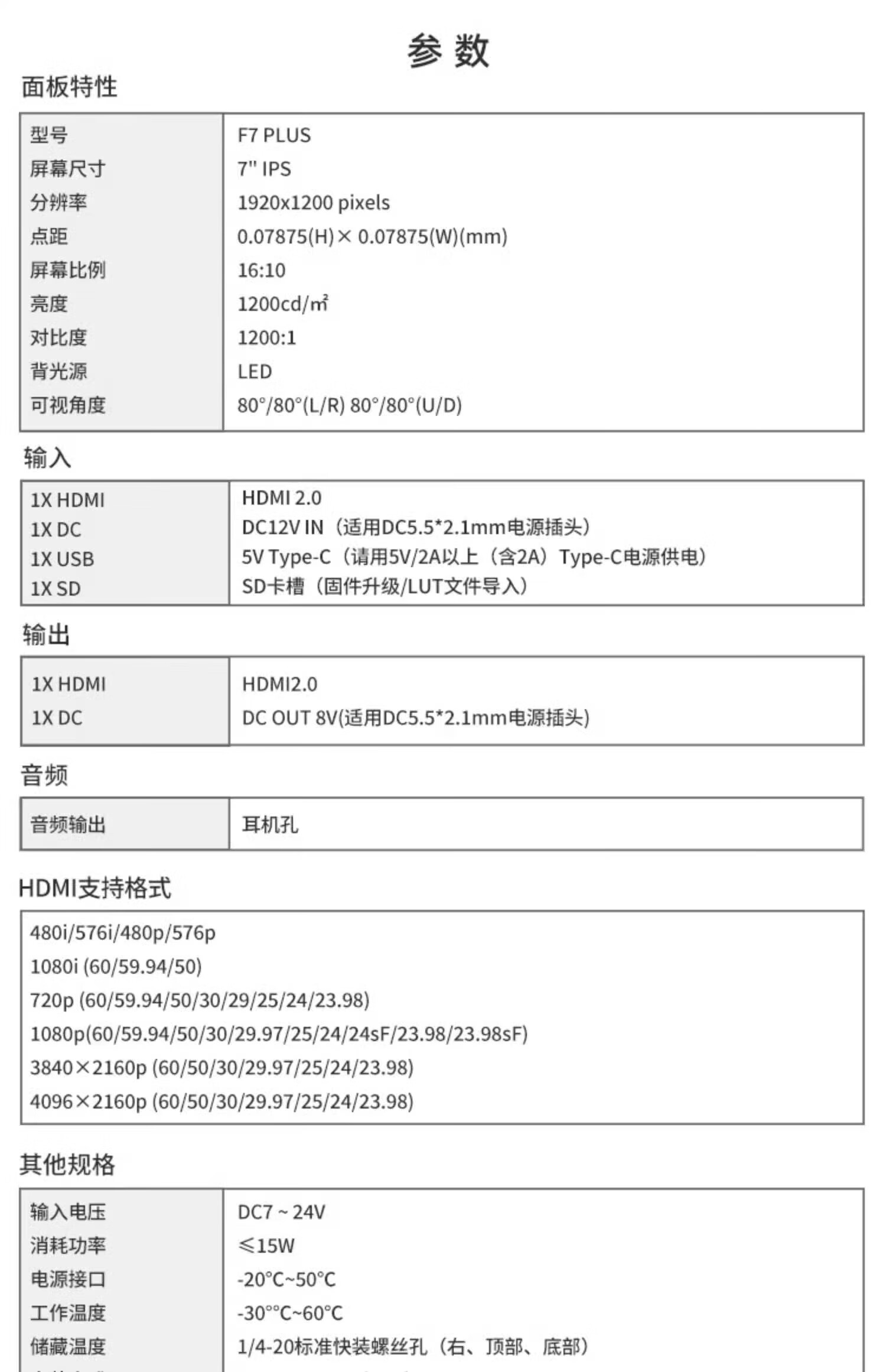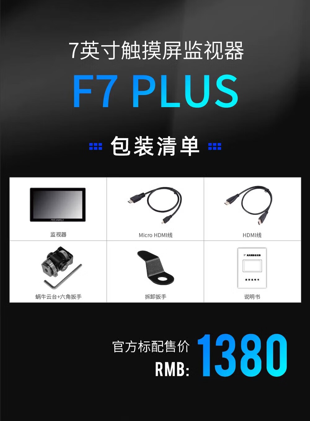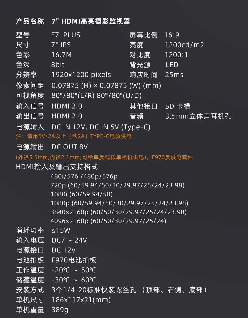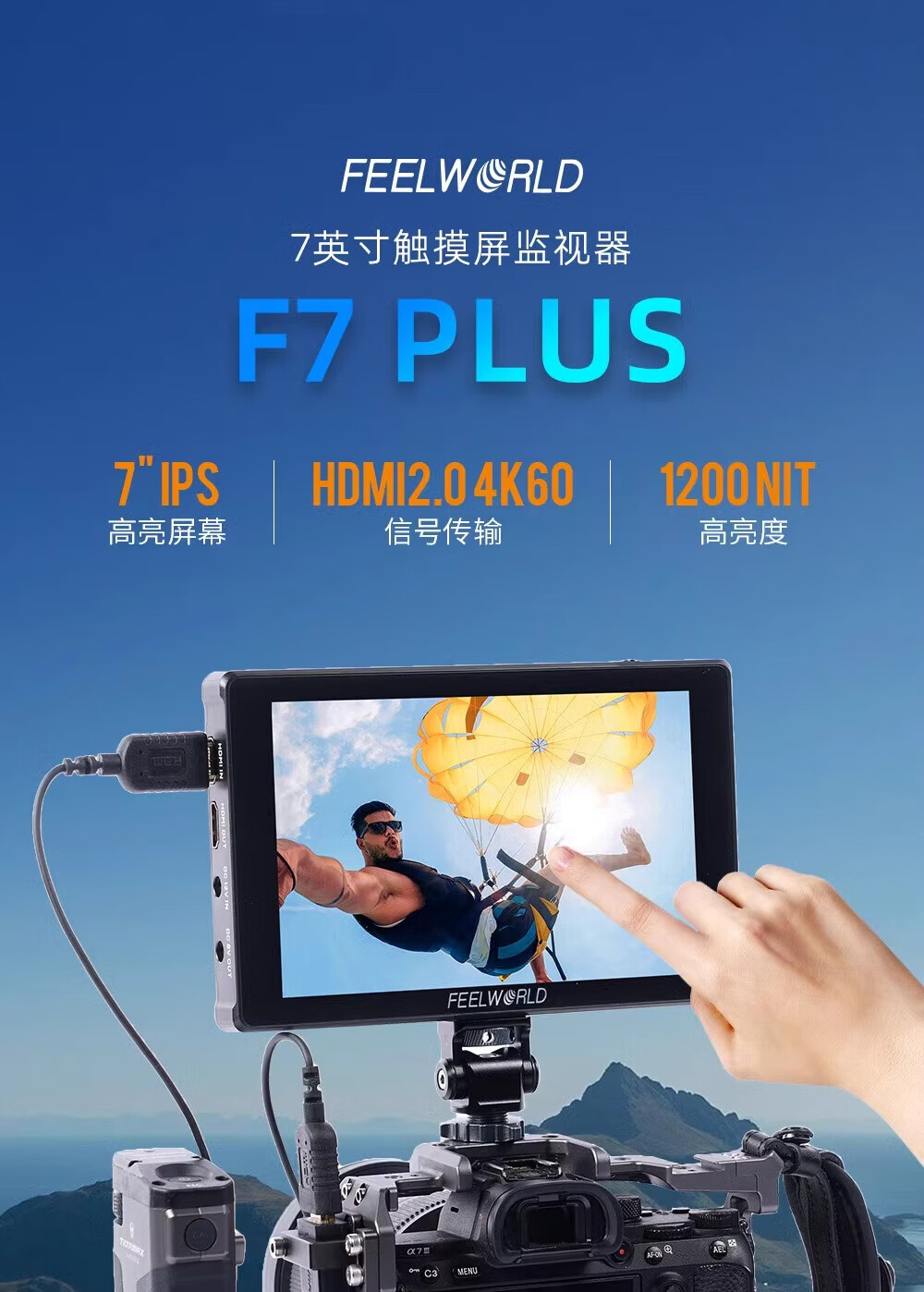 FEELWORLD F7 PLUS 4K60p 7-inch SLR mirrorless photography monitor 1200nit can be connected to a wireless video transmission light mini hdmi cable