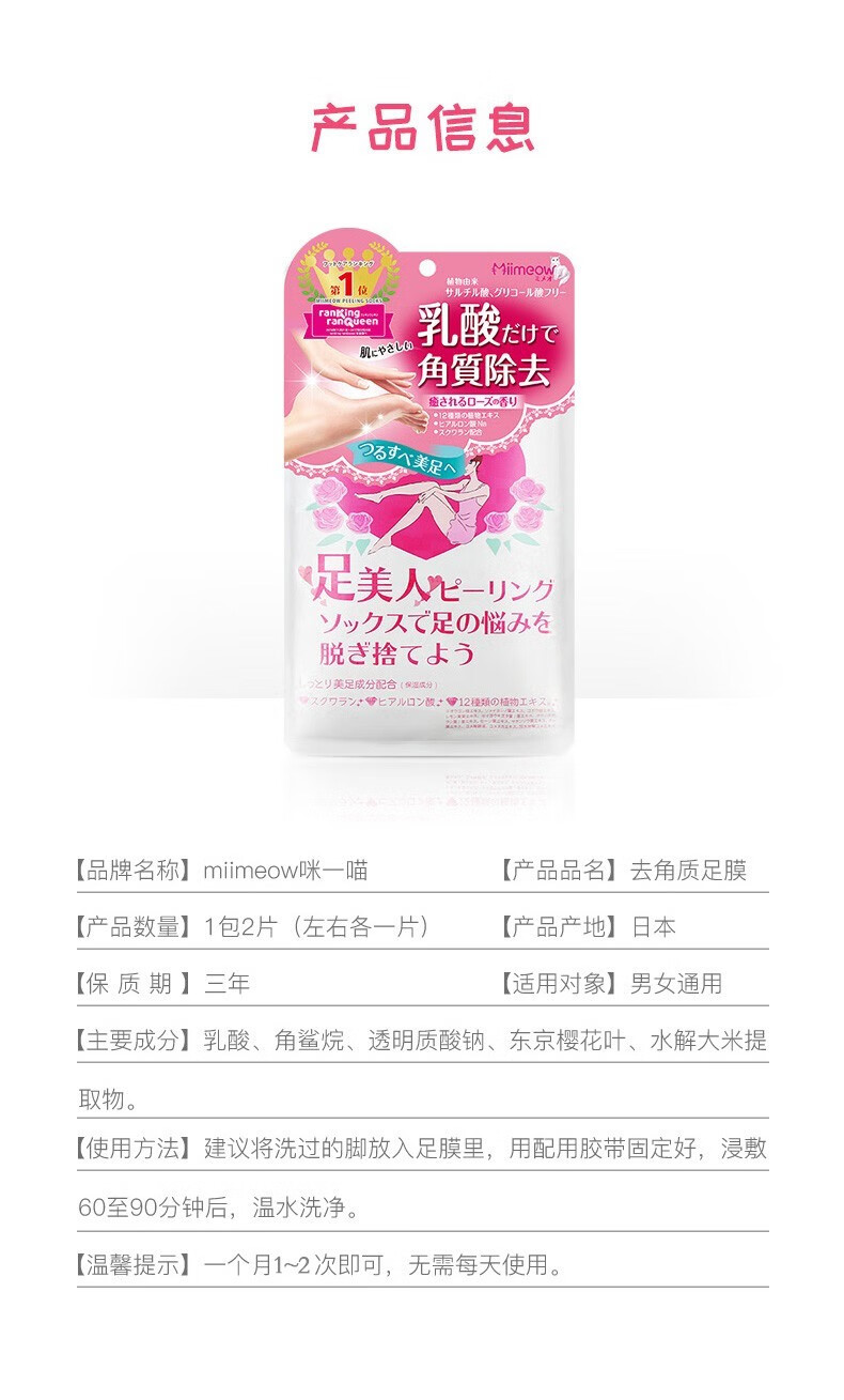 Miyi Meow Foot Mask Lactic Acid Peeling Foot Patch Tender Foot Does Not Hurt Skin Foot Care Foot Mask for Girls
