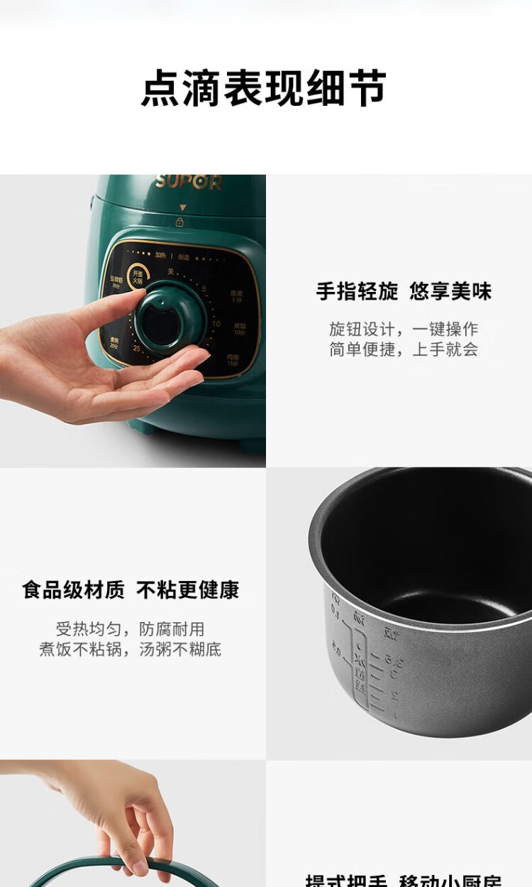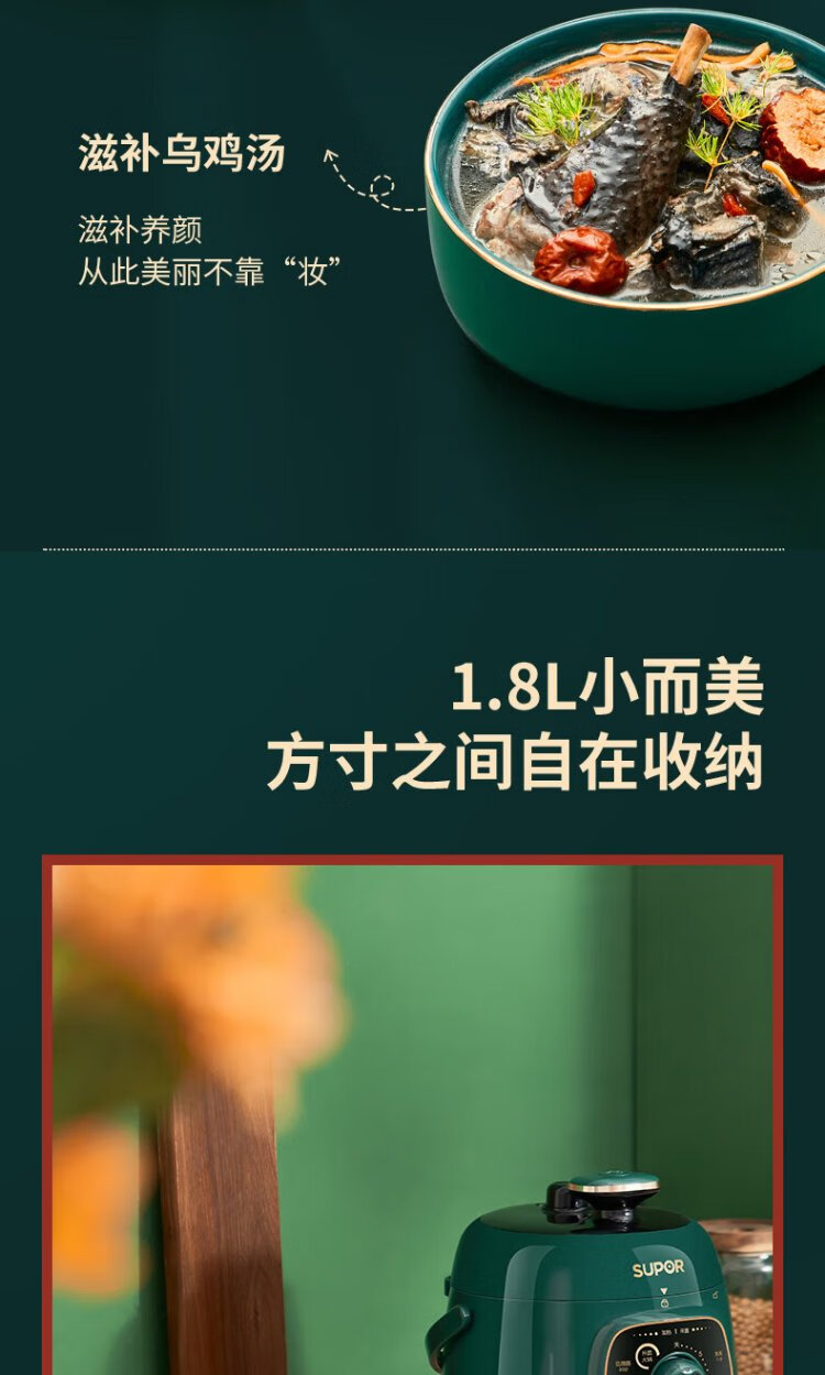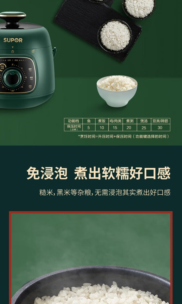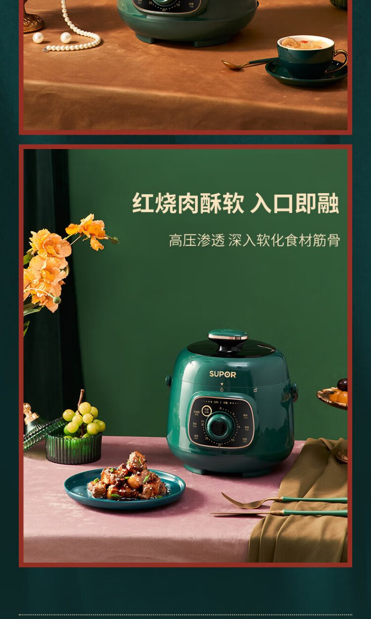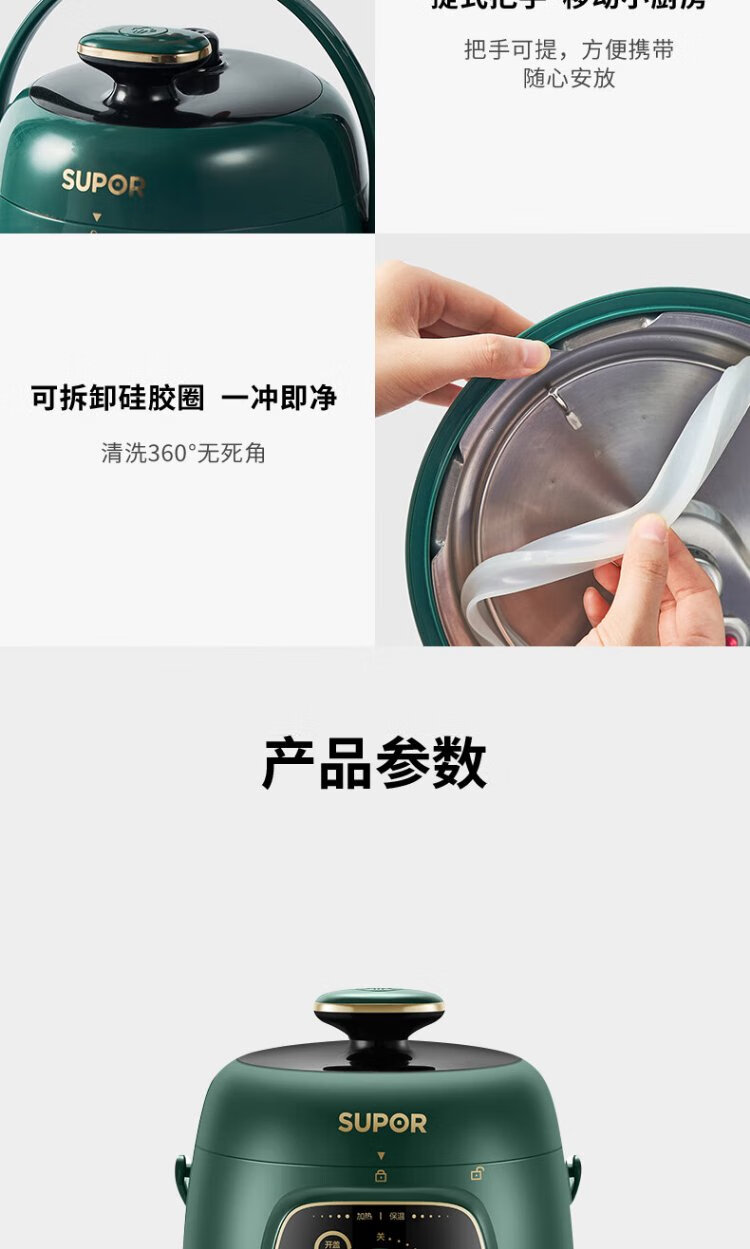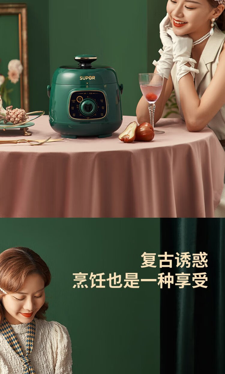 SUPOR one-person mini electric pressure cooker open lid hot pot household smart knob panel soup and porridge retro green easy to clean high pressure SY-18YA9061 1.8L SY-18YA9061