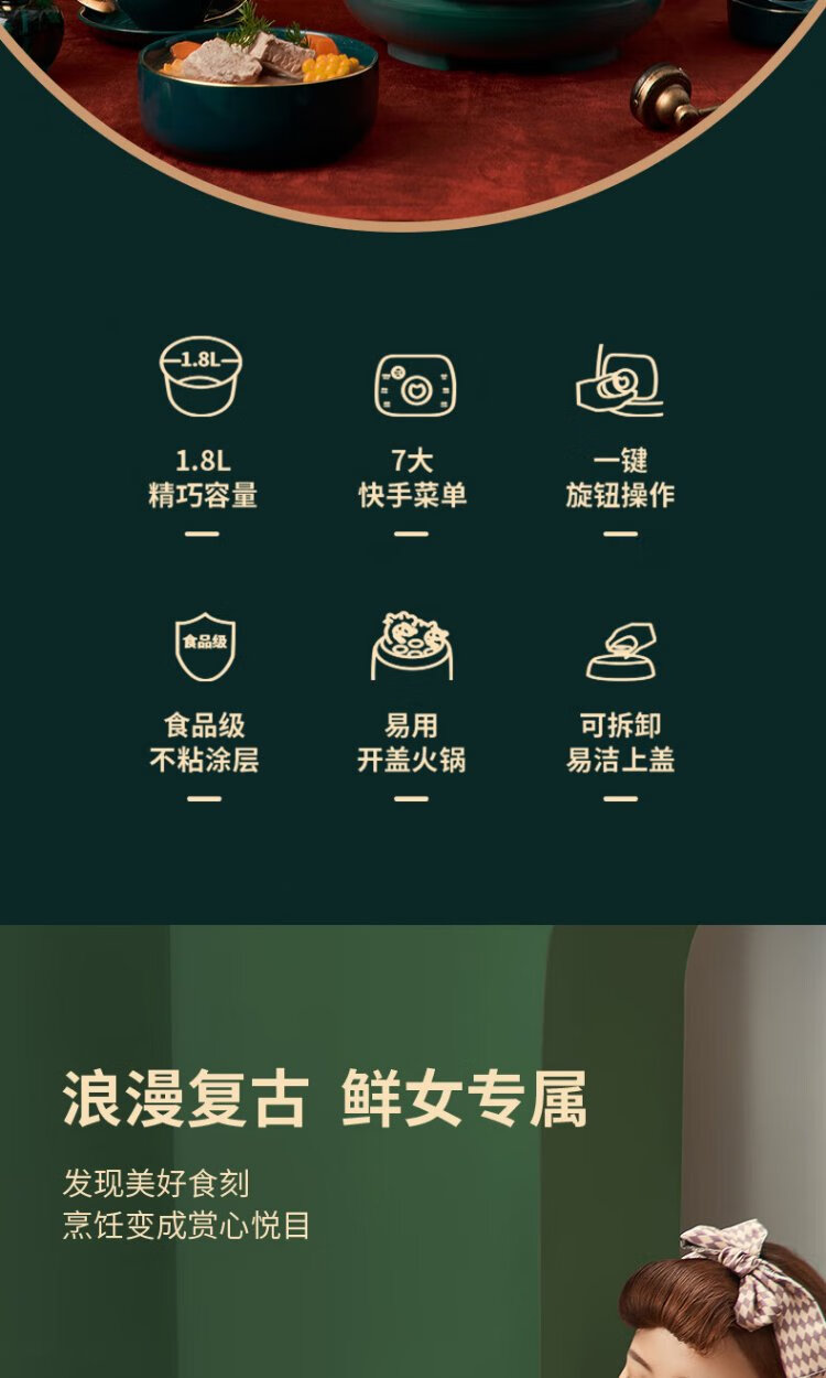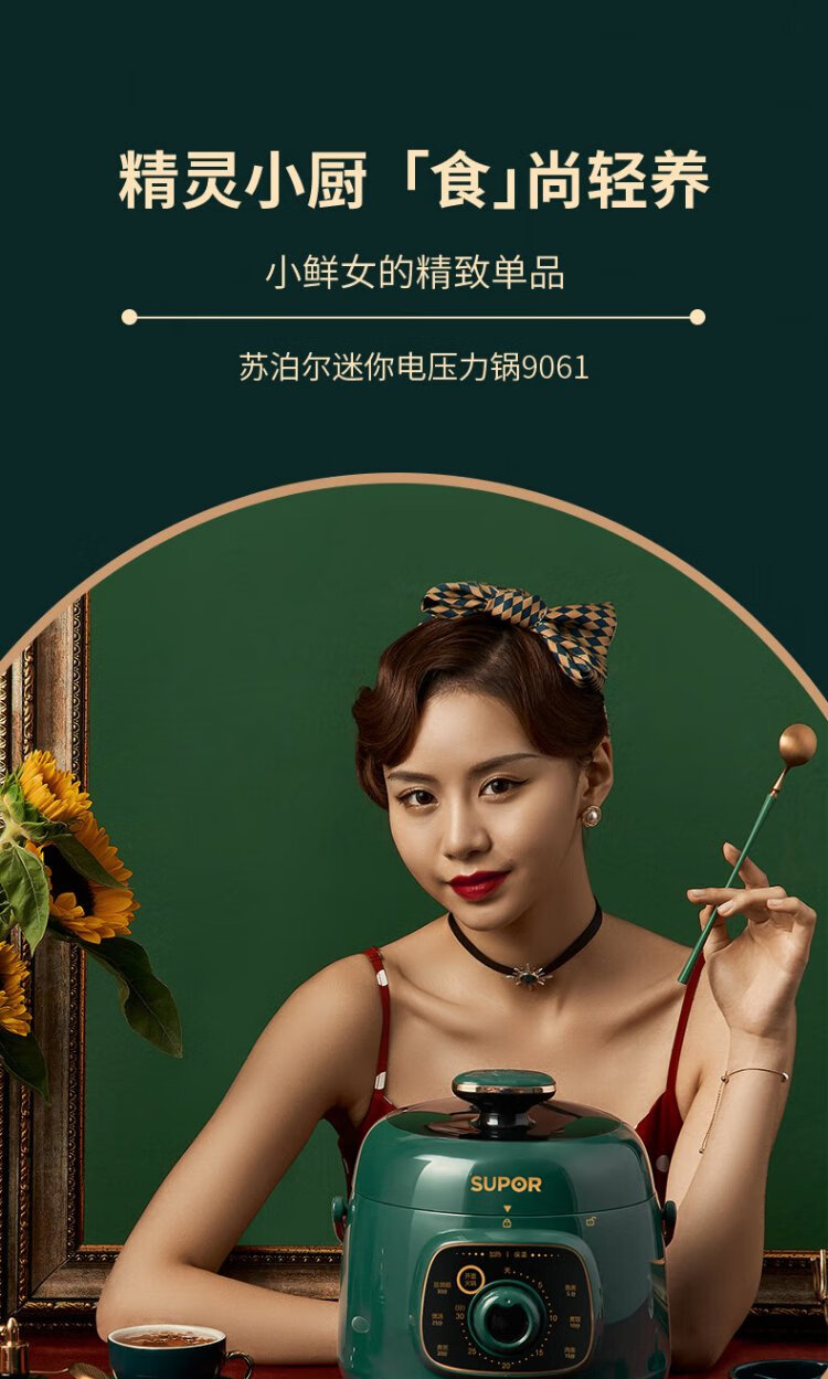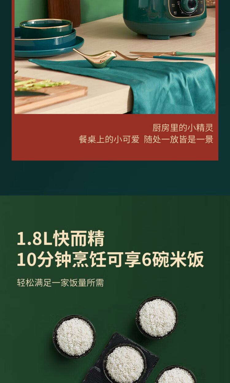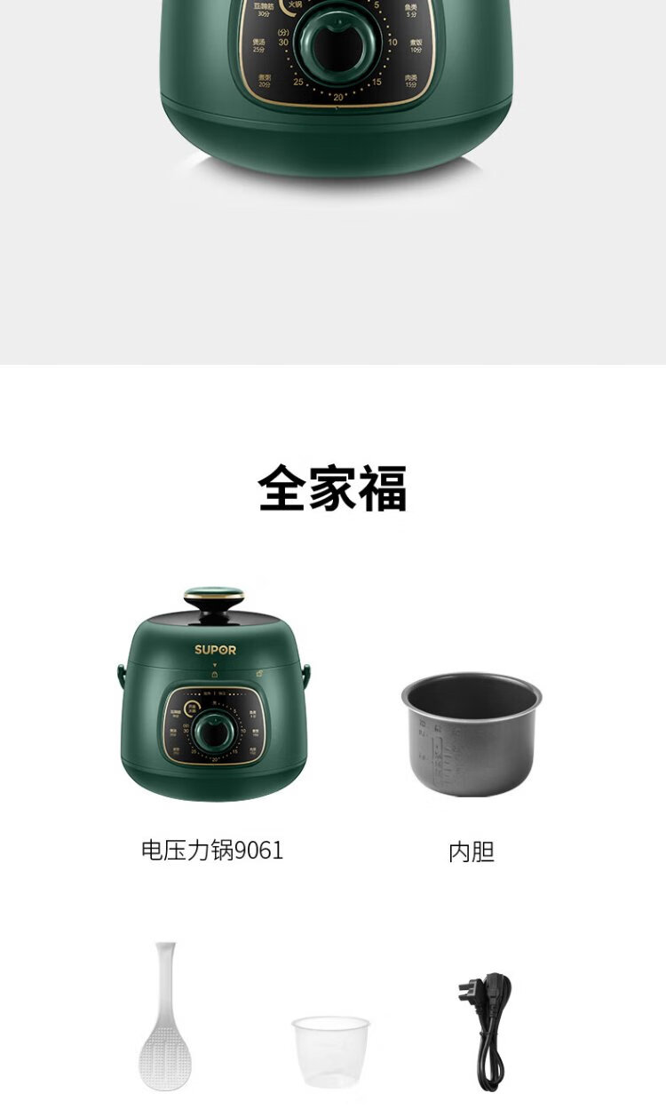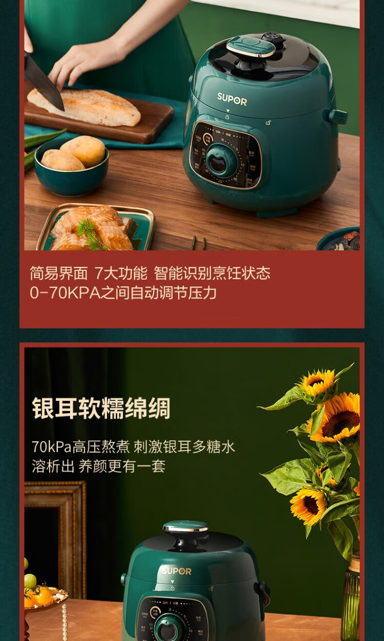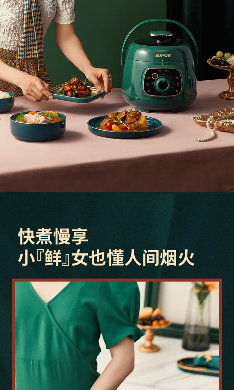 SUPOR one-person mini electric pressure cooker open lid hot pot household smart knob panel soup and porridge retro green easy to clean high pressure SY-18YA9061 1.8L SY-18YA9061