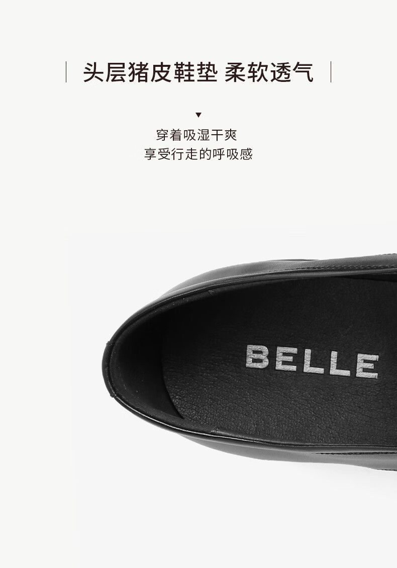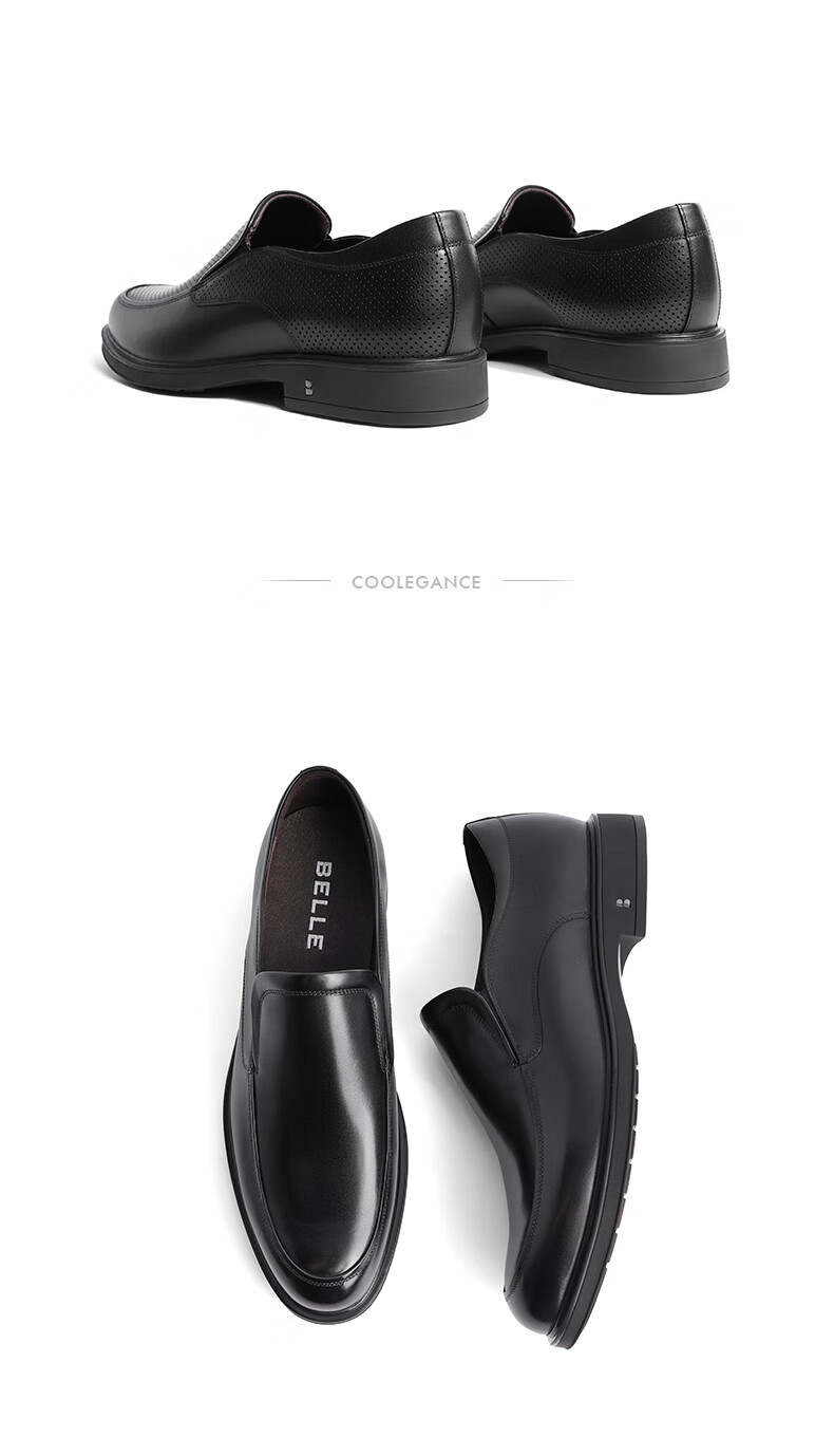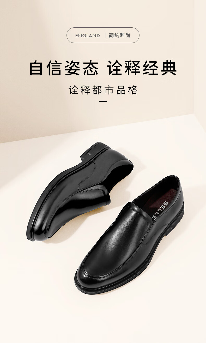 Belle black formal leather shoes men's cowhide business slip-on wedding shoes B3GK7CM1 black 39 (245mm)