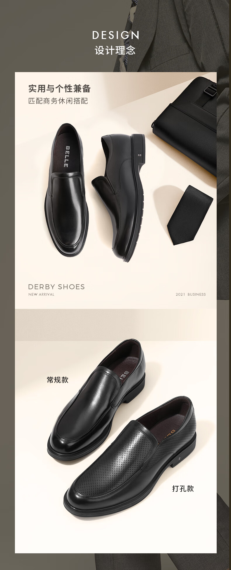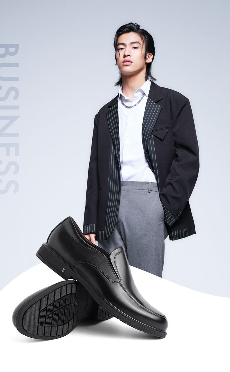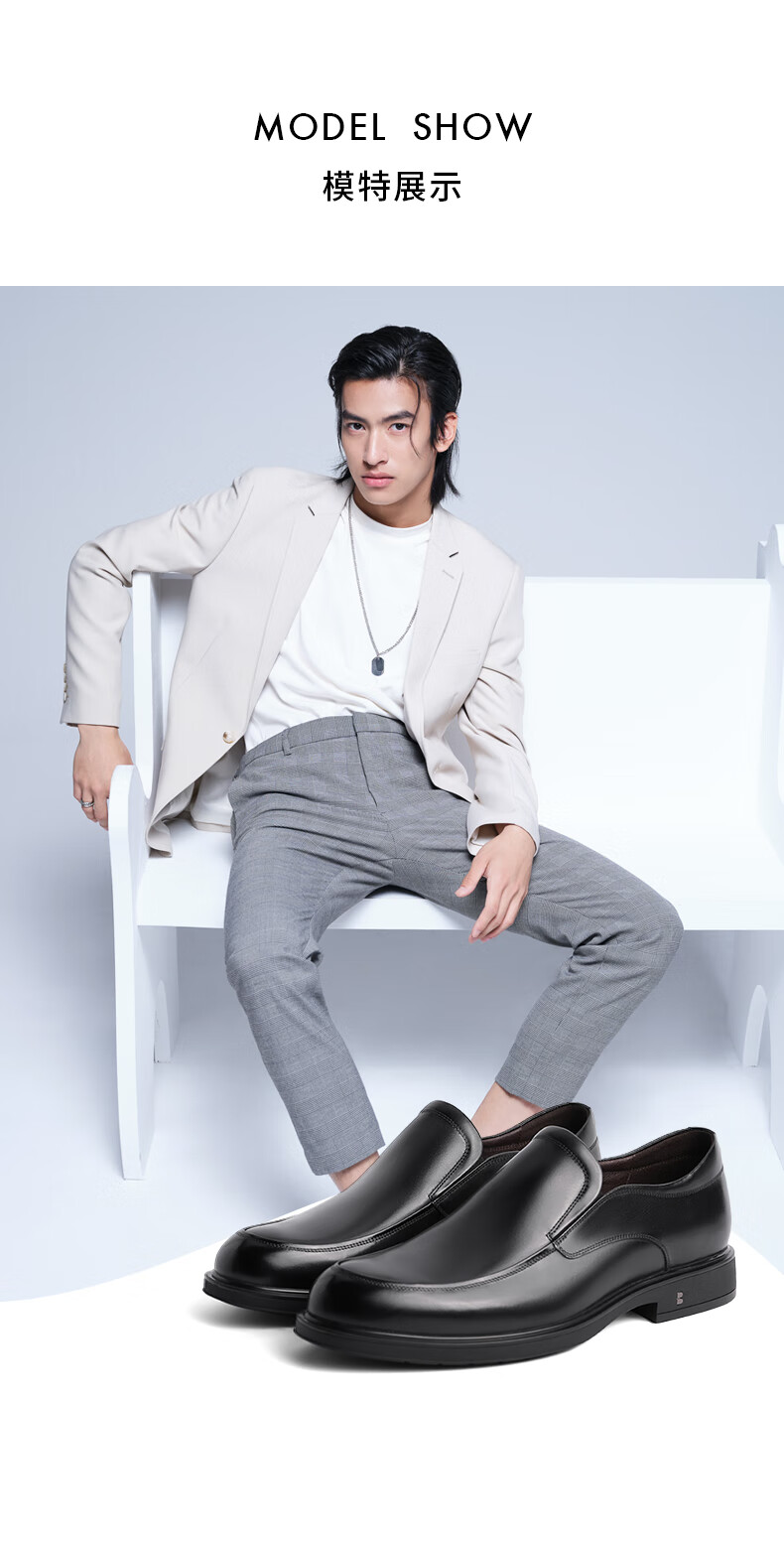 Belle black formal leather shoes men's cowhide business slip-on wedding shoes B3GK7CM1 black 39 (245mm)