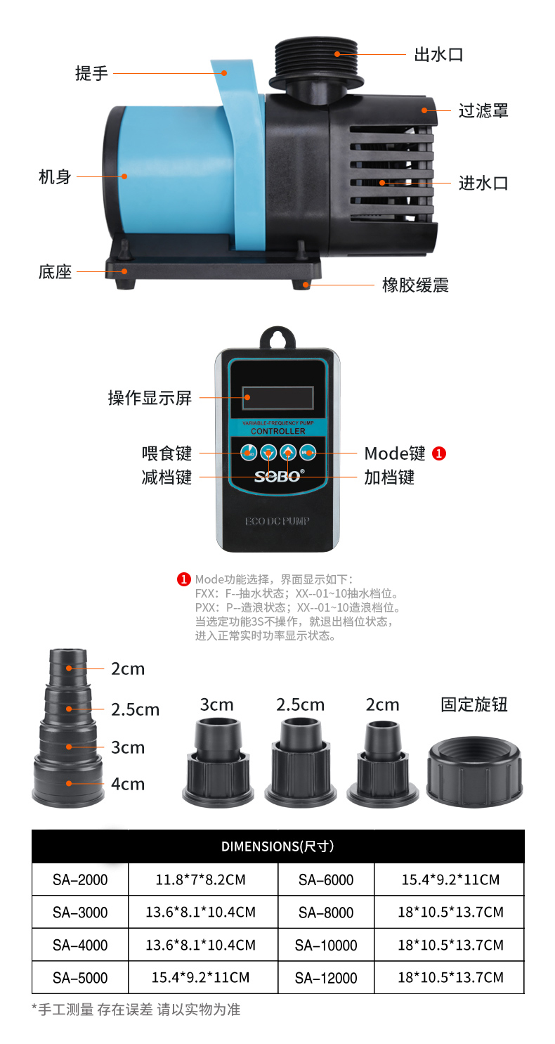 Songbao sobo Songbao fish tank submersible pump variable frequency DC water pump aquarium water pump fish pond circulation pump variable frequency pump 30W flow 4000L suitable for under 120CM
