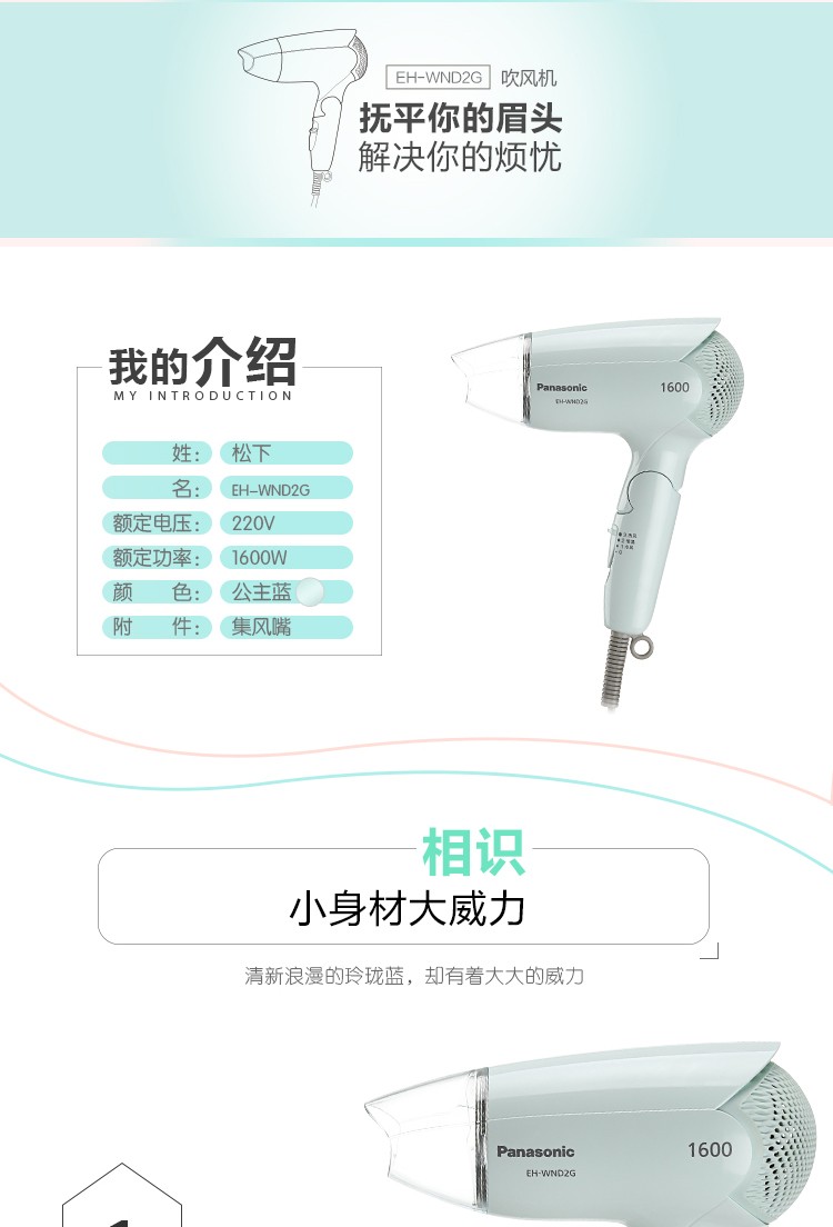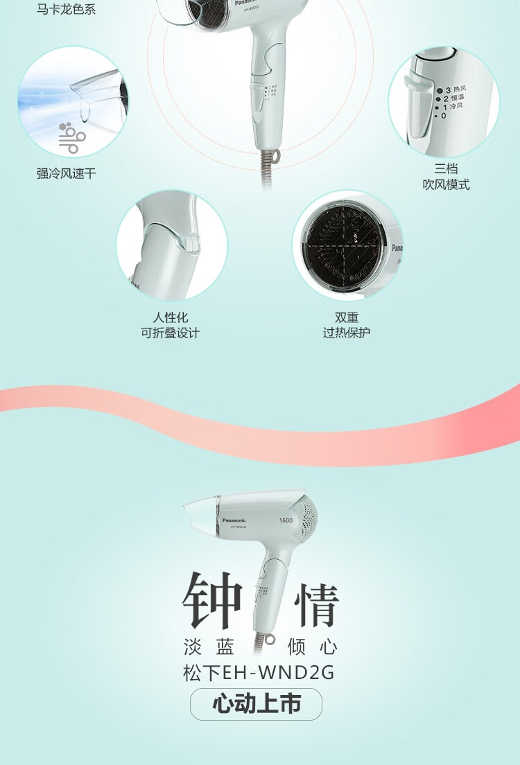 Panasonic hair dryer home portable hair care girl student party quick-drying hot and cold wind silent birthday gift Valentine's Day gift for wife, girlfriend, boyfriend WND2G Sky Blue Constant Temperature Hair Care