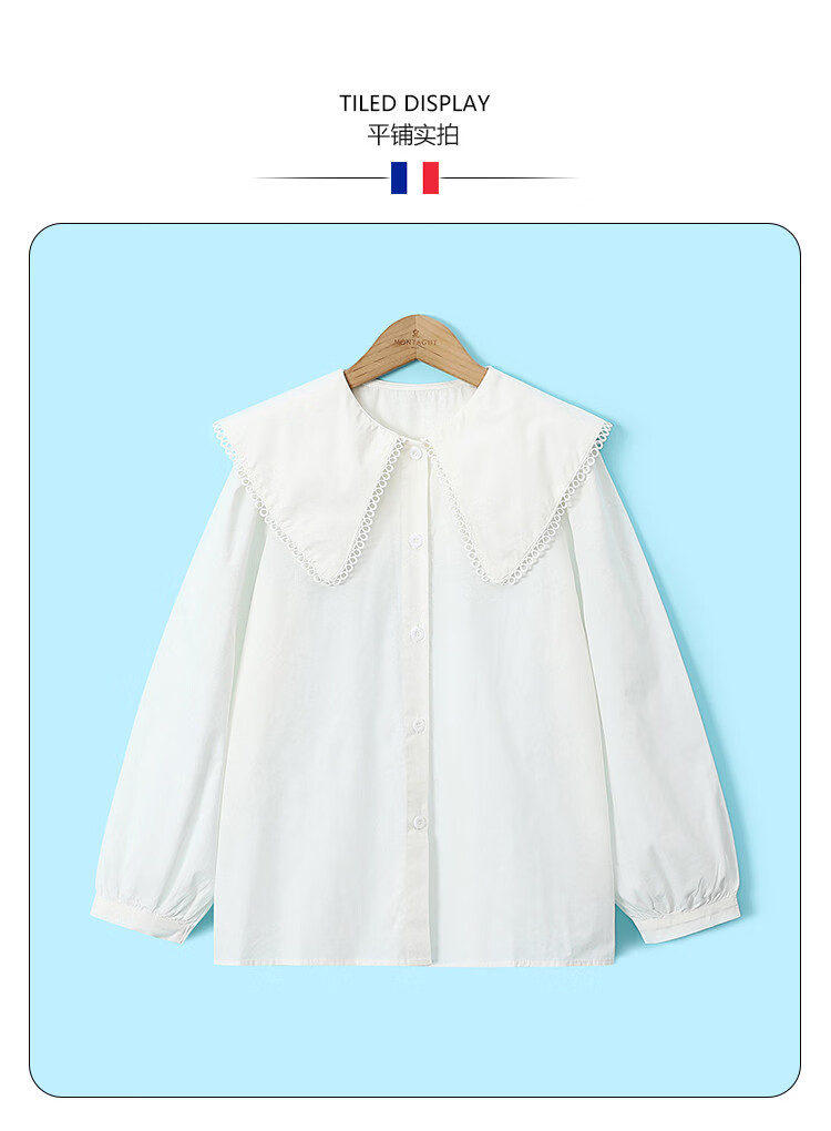 Montagnard middle and large children spring and autumn new style doll collar white shirt 2026 girls Korean version sweet puff sleeve daily versatile top