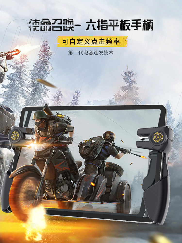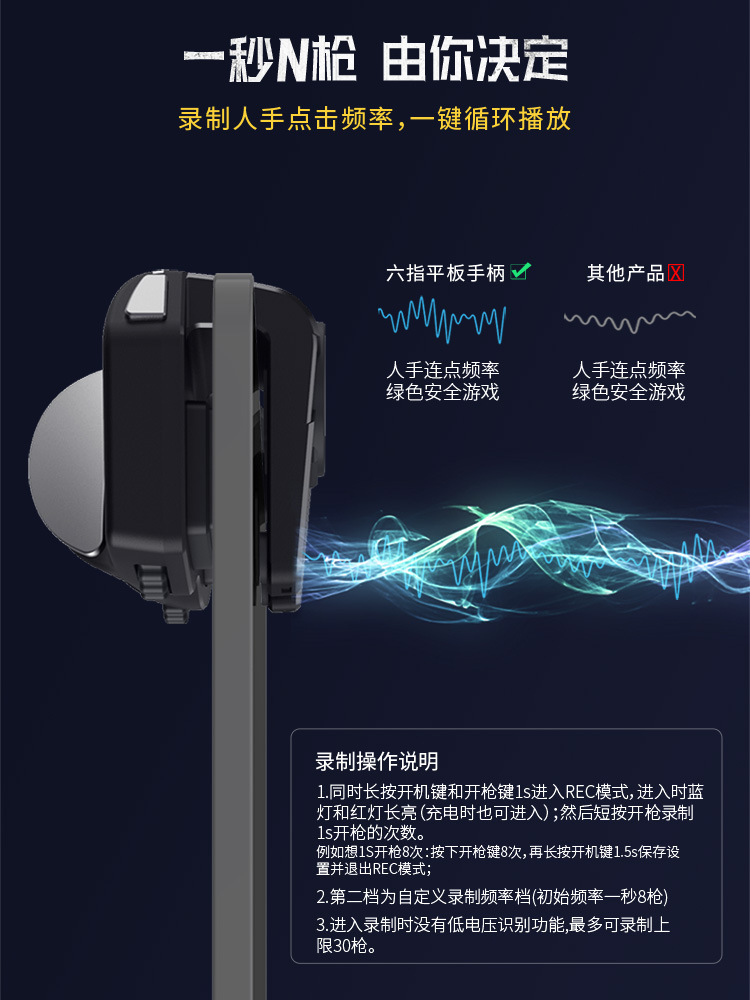 Entertainment products Tablet chicken-eating artifact Huawei Apple ipad computer mobile game set handle physical mechanical button automatic gun pressure auxiliary peripheral two-four-button six-finger Android Black six-finger tablet connecting dot artifact can record the rate of fire