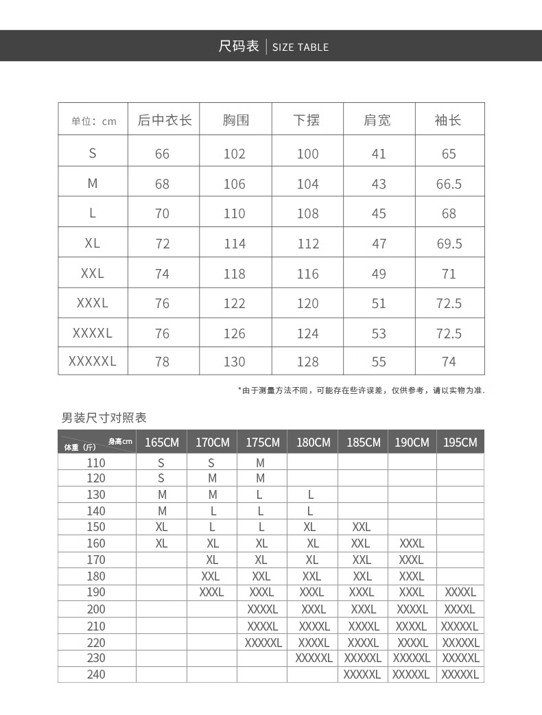 China (cm) 160-165/84-86 165-170 / 88-90 167-172 / 92-96 168-173 / 98-102 170-176 / 106-110
