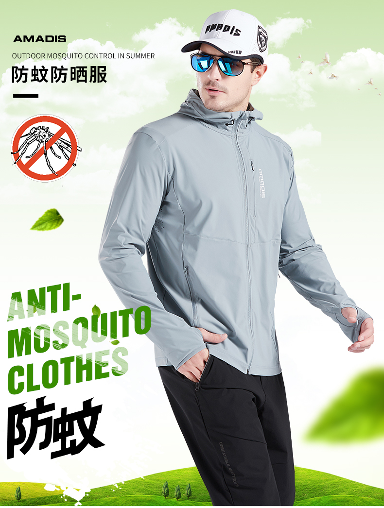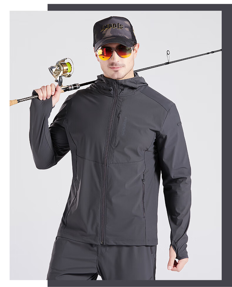 AMADIS DE GAULA fishing clothing, anti-mosquito and sun protection clothing for men, ice silk thin breathable fishing clothing, new summer fishing suit AX0317 blue-grey anti-mosquito and sun protection (top) XL