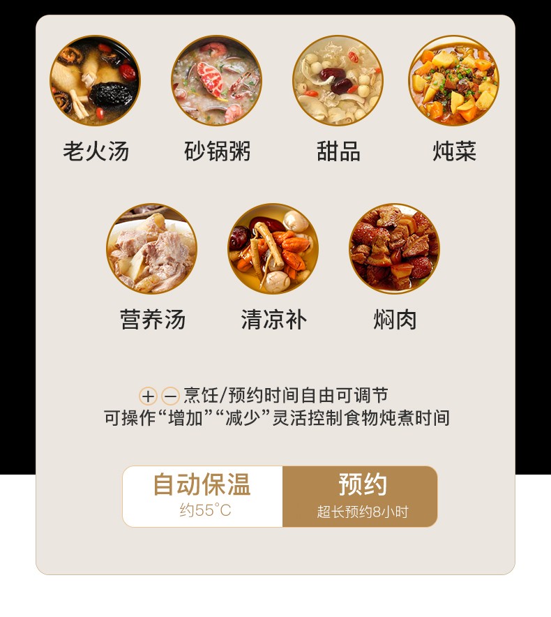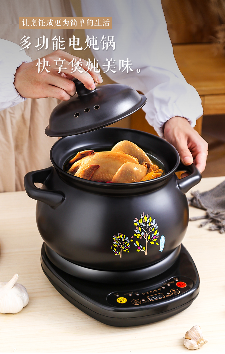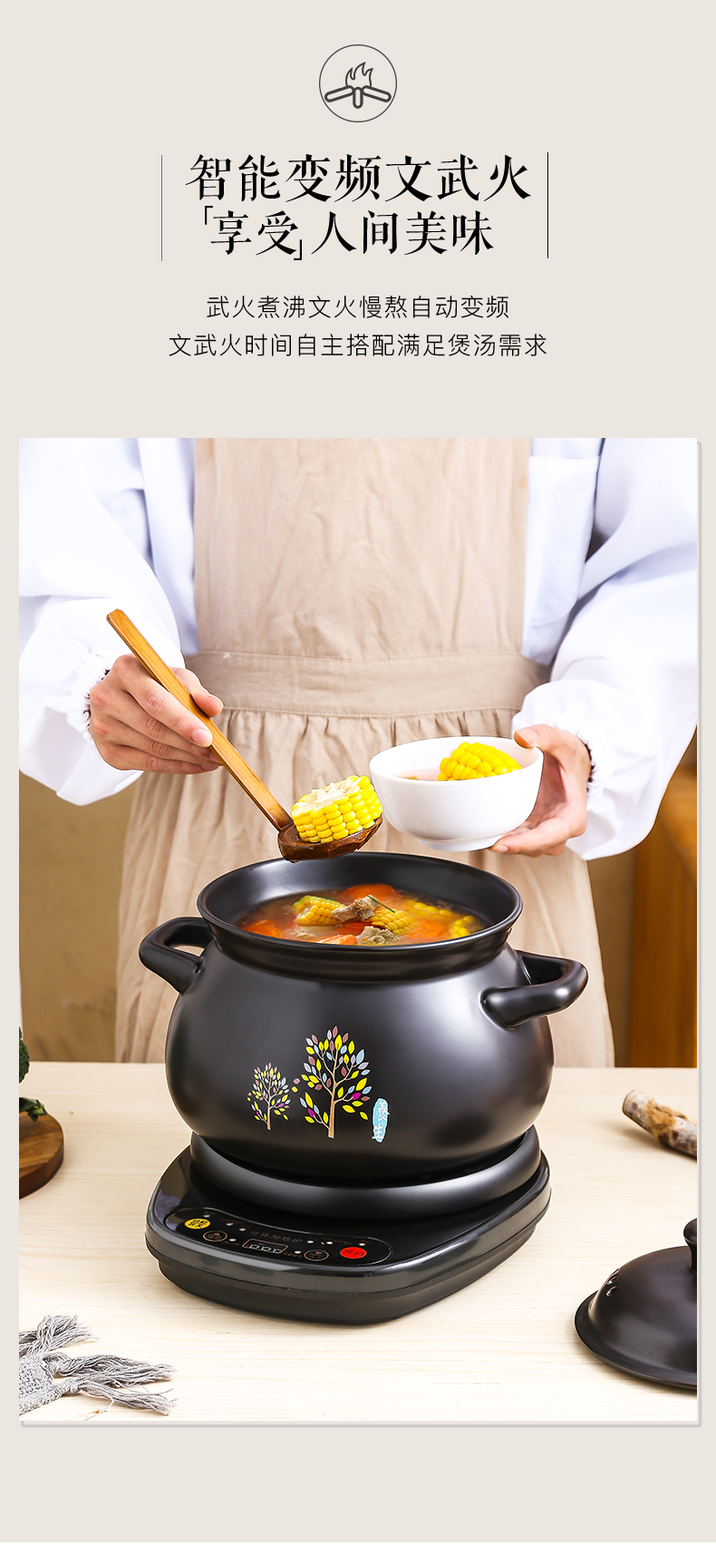 Hufu (HF) split-type fully automatic electric stew pot, electric casserole, electric soup pot, soup pot, electric stew pot, bird's nest stew, scheduled timer, heat preservation, electric stew casserole, porridge, high temperature resistant spodumene ceramic pot, ginseng 5.5L pot (RS) + smart base