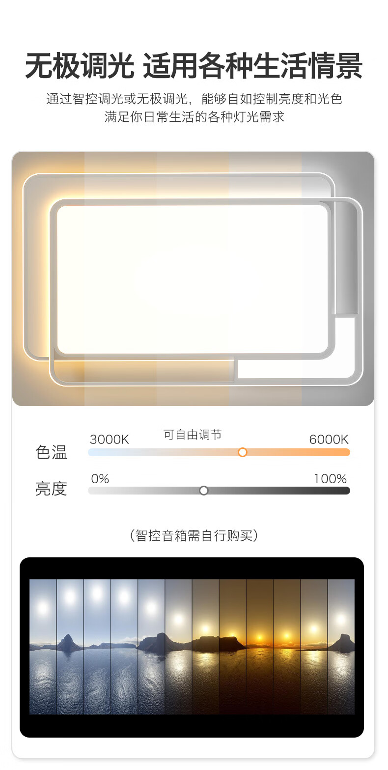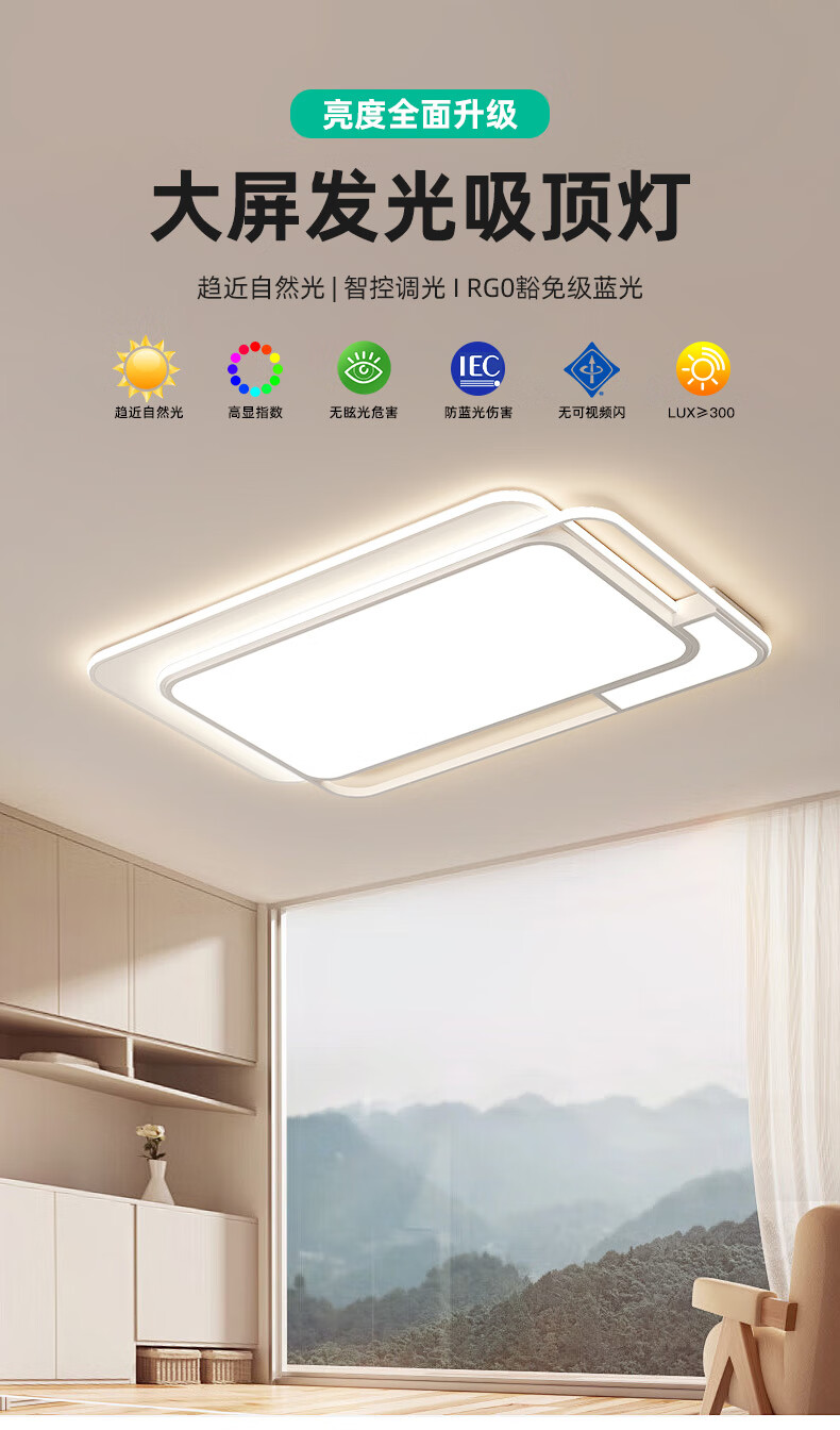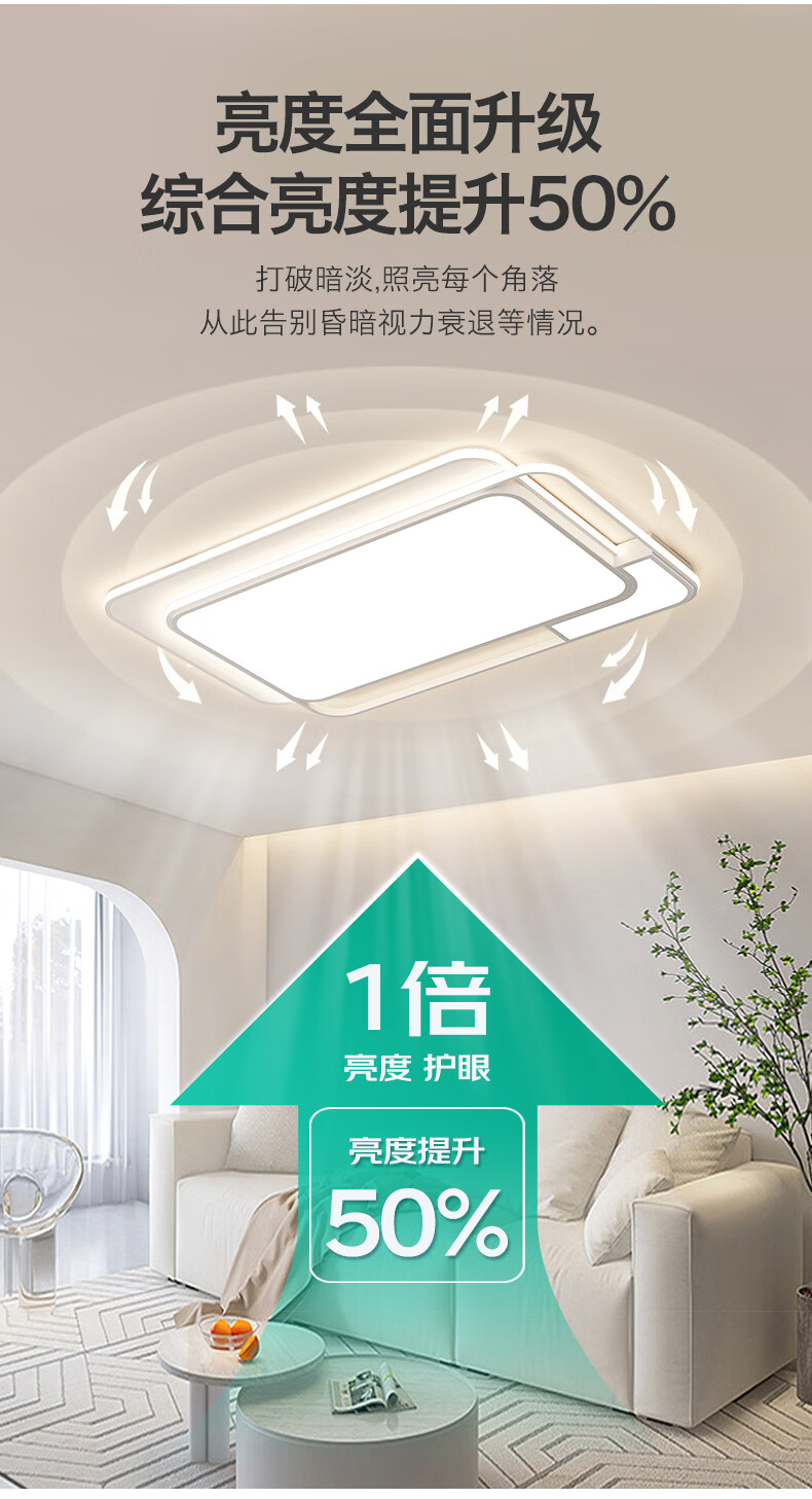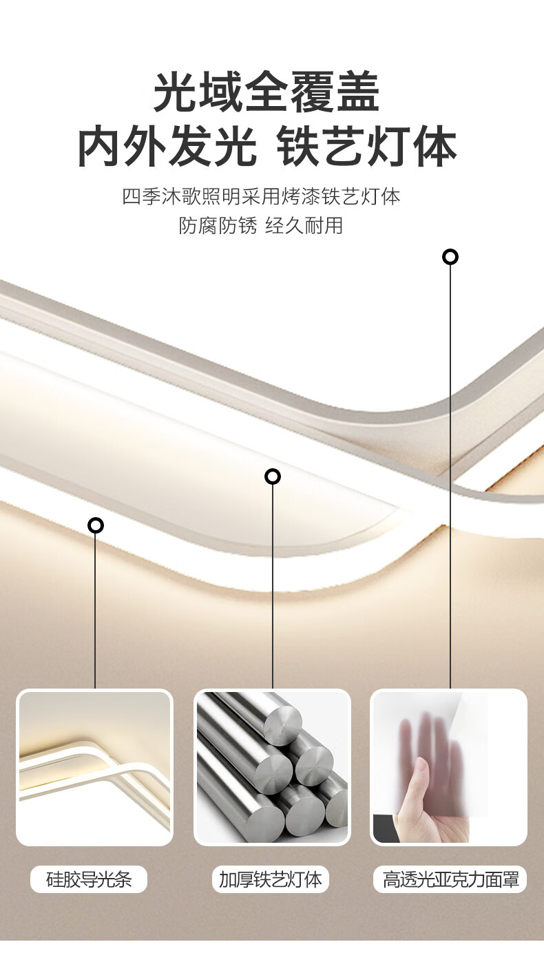 Four Seasons Muge (MICOE) Lighting LED Living Room Lamp Package Bedroom Ceiling Lamp Restaurant Zhongshan Lamp Nordic Post-Modern Lamp Recommended-100W Puri Light Source Three-tone Lighting 80cm (Next Day Delivery)