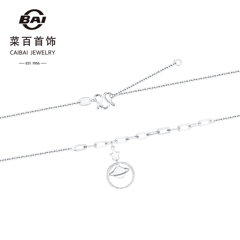 Caibai Jewelry Pt950 Platinum Necklace Fashionable Design Happy Planet Platinum Chain Tag BJ Platinum Chain Tag Approximately 3.24g Approximately 42cm