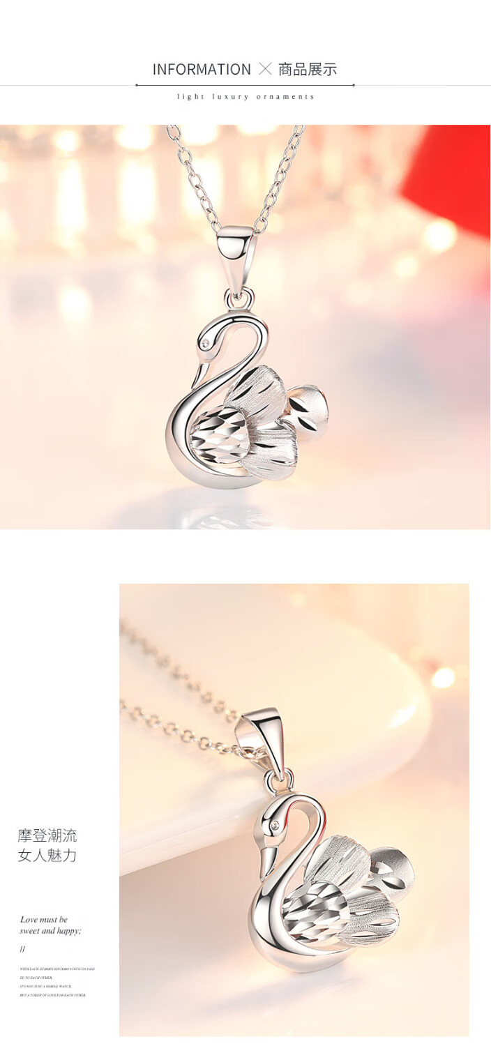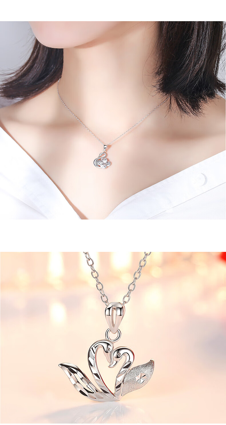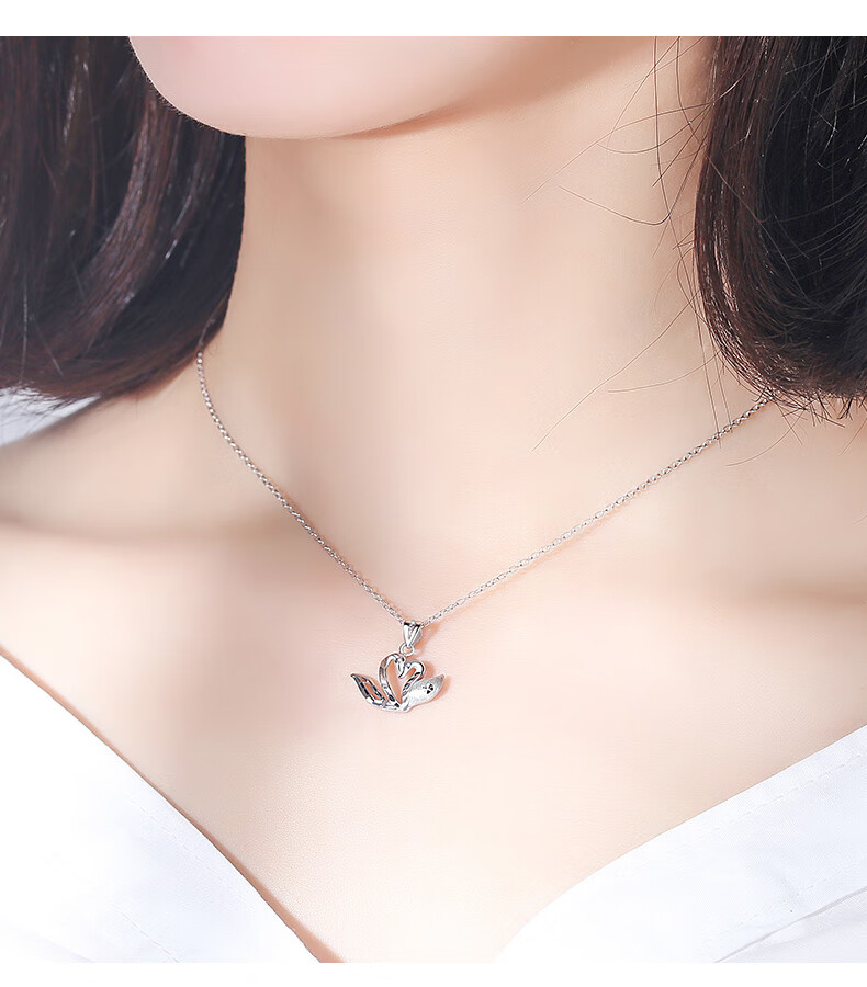 Misu pt950 platinum swan pendant for women, platinum light luxury clavicle necklace, simple and versatile pendant birthday gift, weight 2.0-2.2 grams + with silver chain