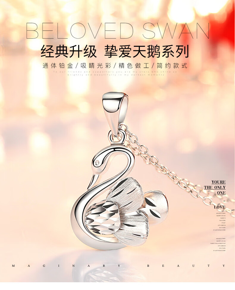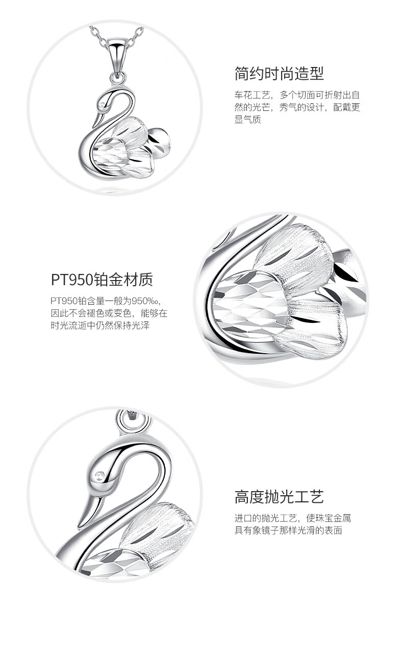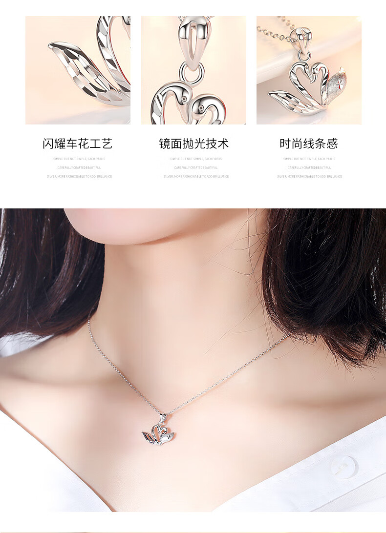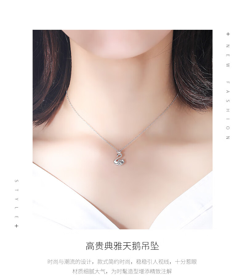 Misu pt950 platinum swan pendant for women, platinum light luxury clavicle necklace, simple and versatile pendant birthday gift, weight 2.0-2.2 grams + with silver chain