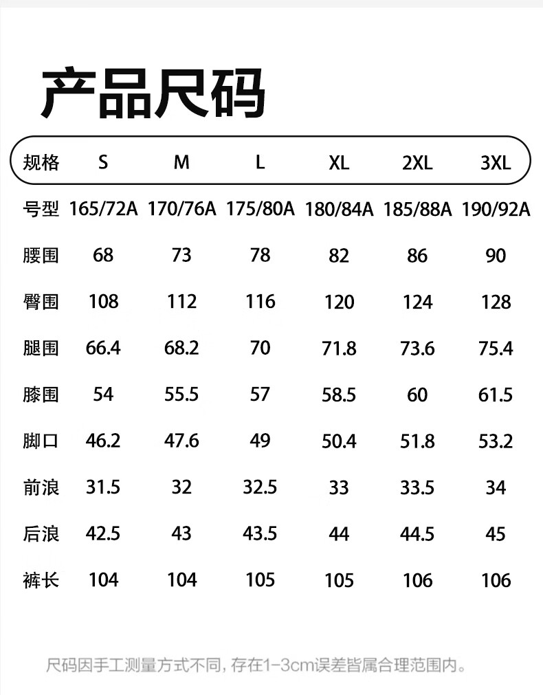 Outseam (cm) 99 cm 101.5 cm 104 cm 106.5 cm 109 cm