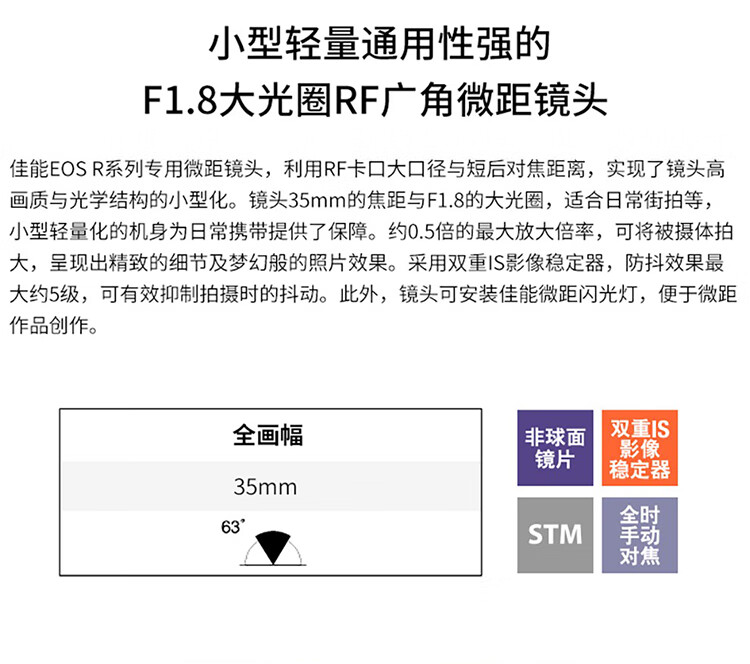 Canon rf351.8 fixed focus lens full-frame wide-angle macro mirrorless lens photo portrait suitable for EOS R5 R6 RP RF35 F1.8 STM official standard no filter accessories ~ recommended package