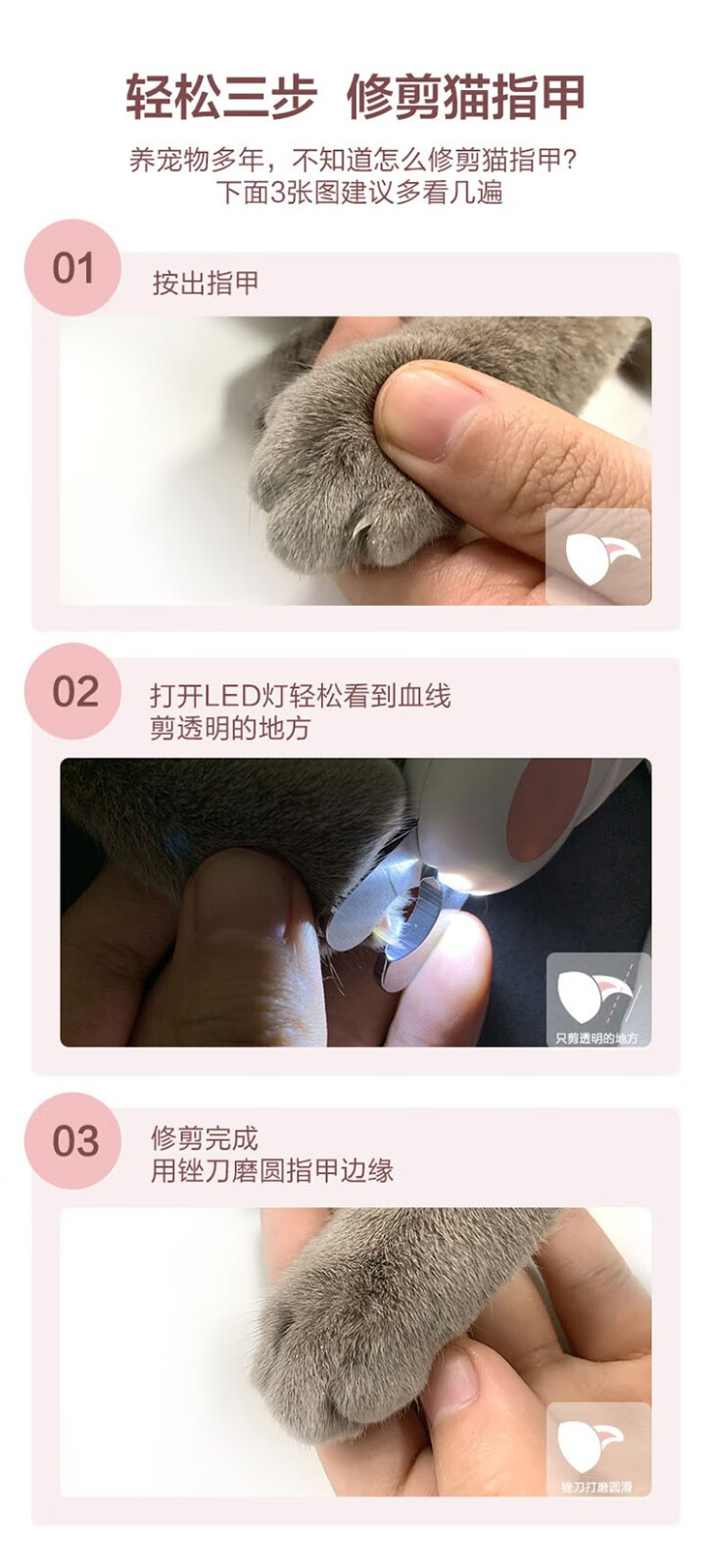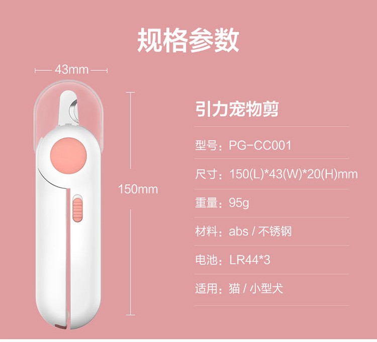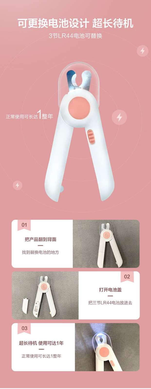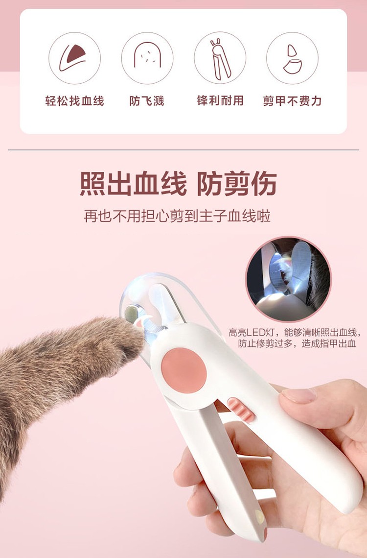 Mioo cat nail scissors, pet nail clippers, nail clippers, universal rabbit nail clipper for dogs and cats, LED pink, illuminates blood line, will not cut