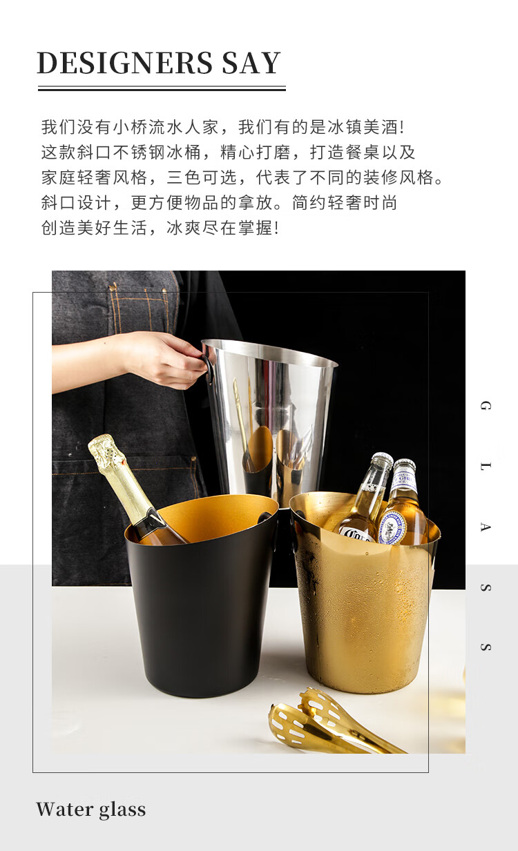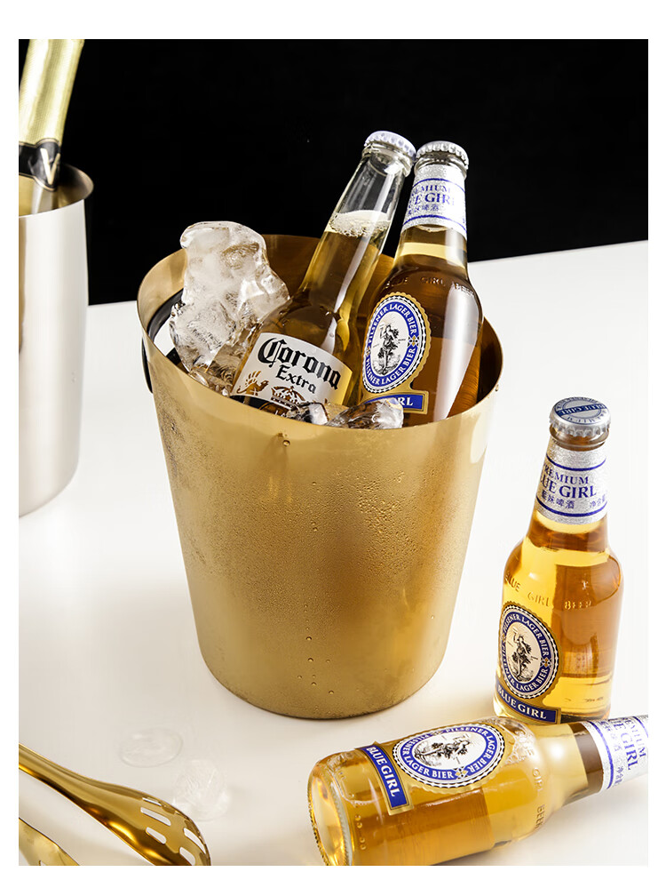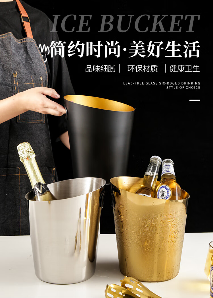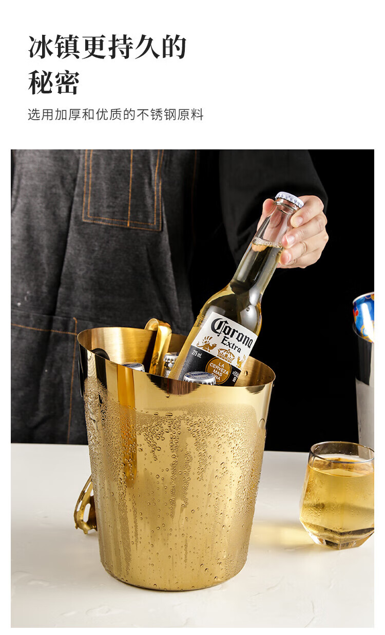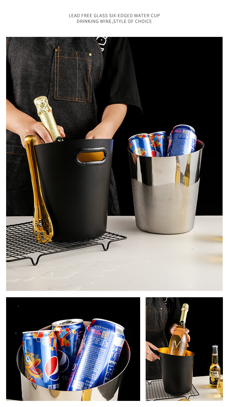 VINOS creative stainless steel ice bucket champagne bucket ice cube bucket ice grain bucket commercial home party large ice bucket wine bar black 4L+ ice clip