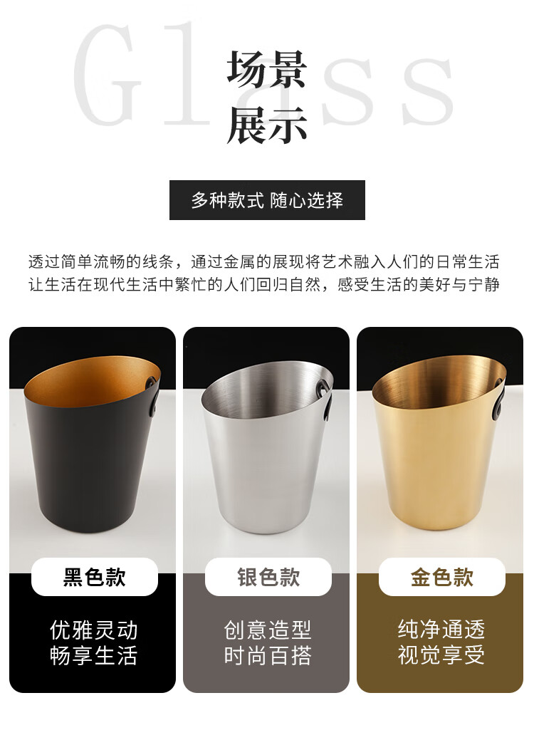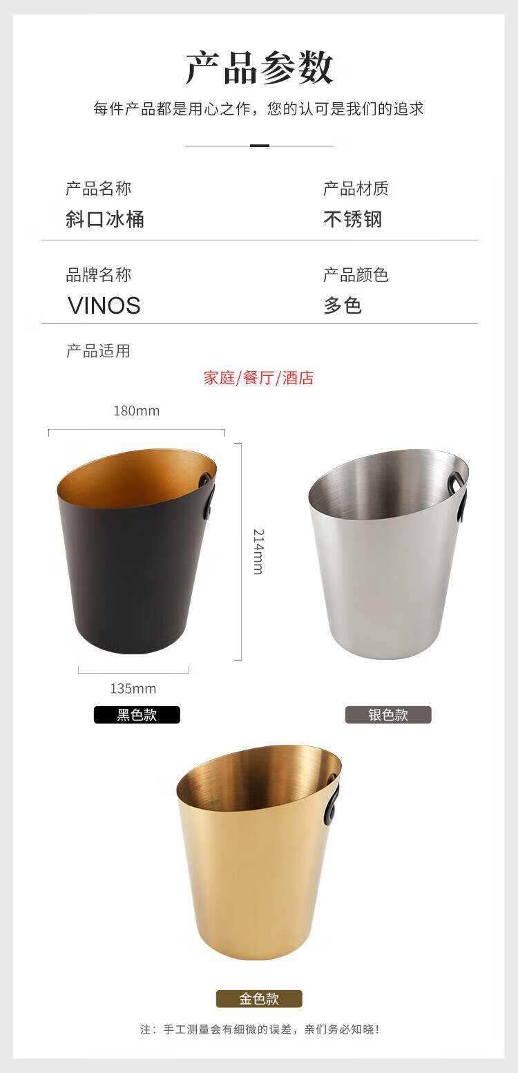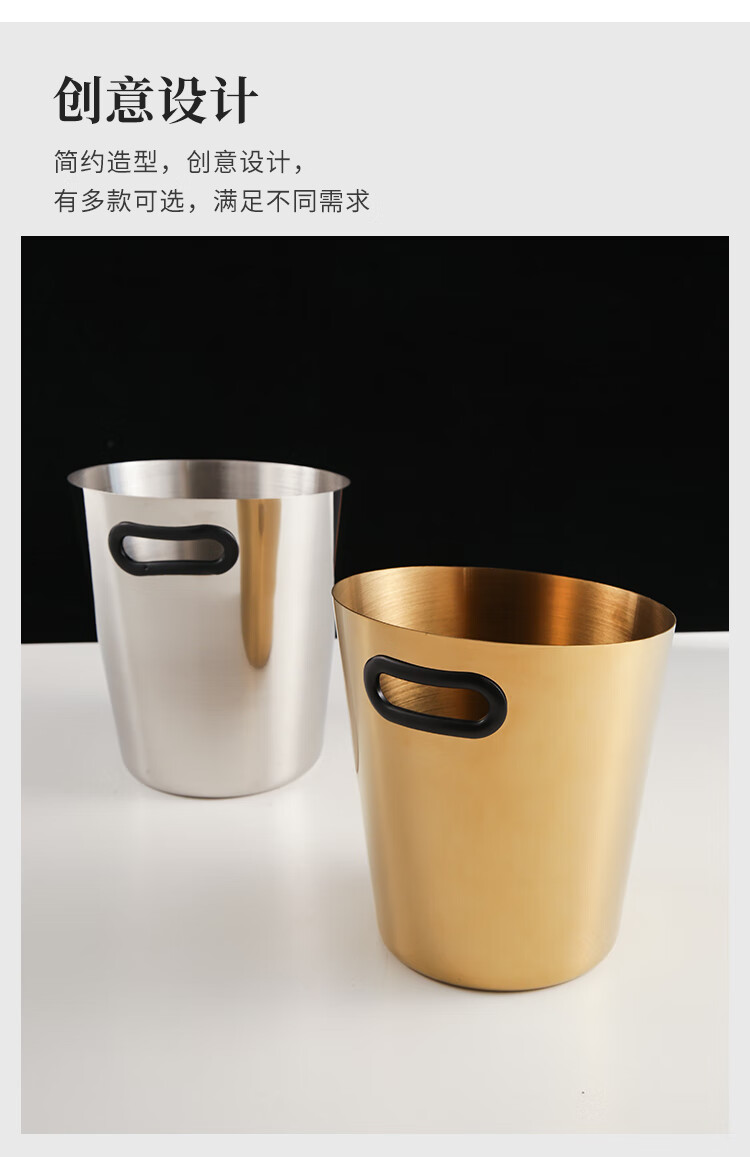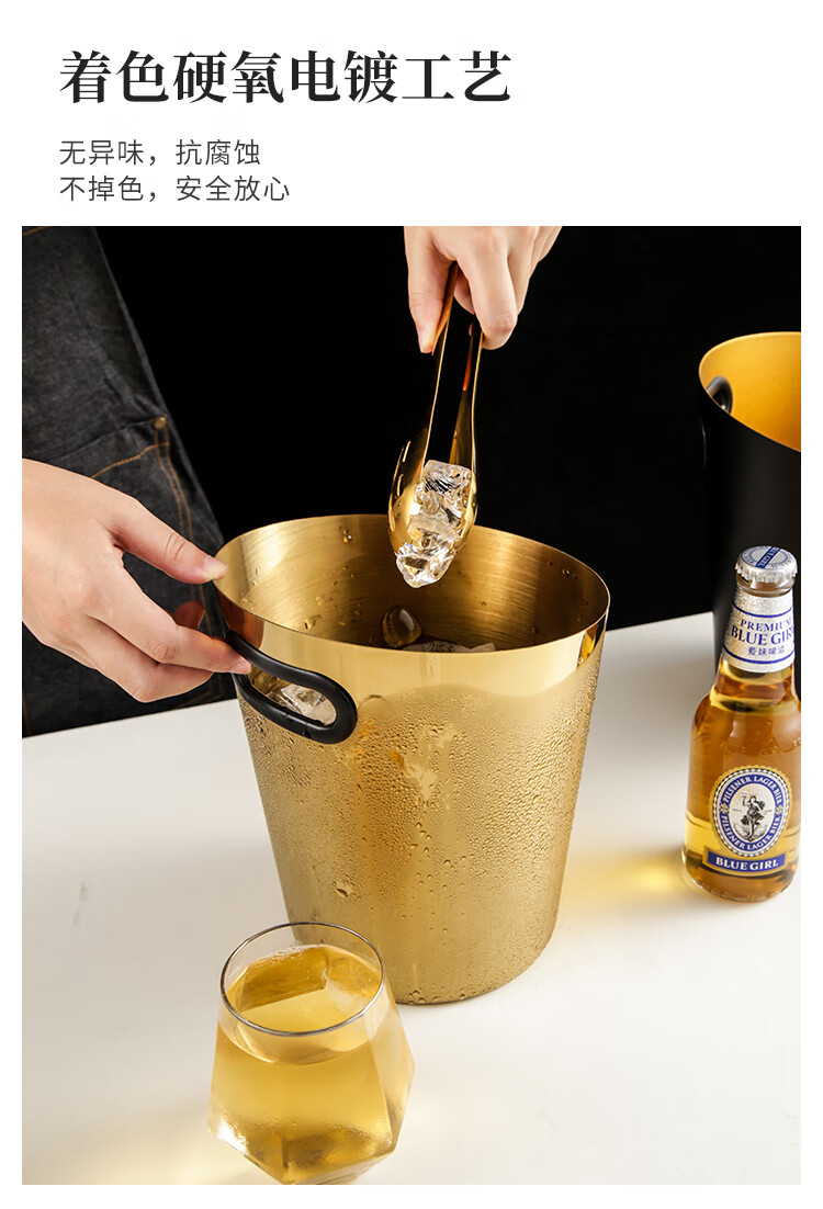 VINOS creative stainless steel ice bucket champagne bucket ice cube bucket ice grain bucket commercial home party large ice bucket wine bar black 4L+ ice clip