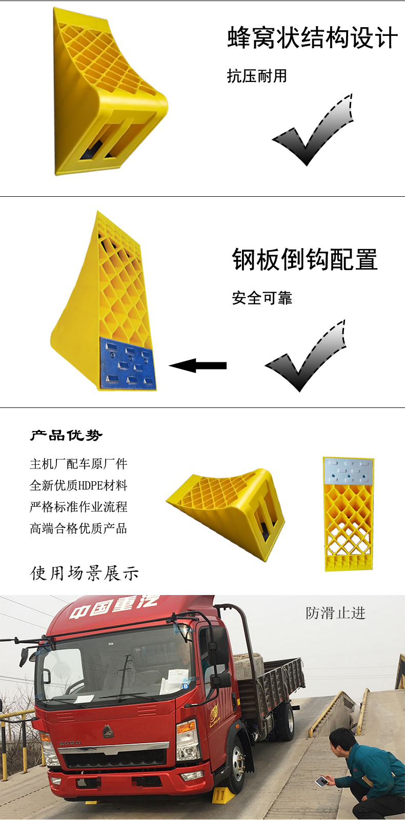 Aijibao portable car anti-slip triangle wood stopper truck rubber tire anti-slip plastic parking wedge block