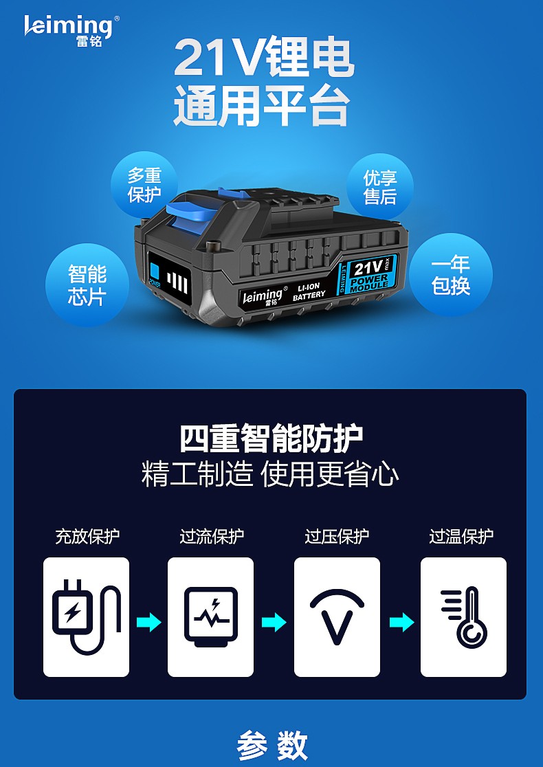 Leiming brushless lithium battery\/21V platform 2.0\/4.0Ah\/6.0Ah\/8.0Ah battery pack 2.0Ah (5 cells 18650 batteries)-21V