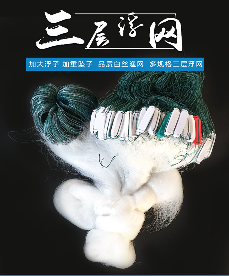 Floating net three-layer large ticket water floating net foam fishing net wire mesh white striped bighead carp fishing net hanging net three-layer floating net 3 meters 6 fingers 100 meters