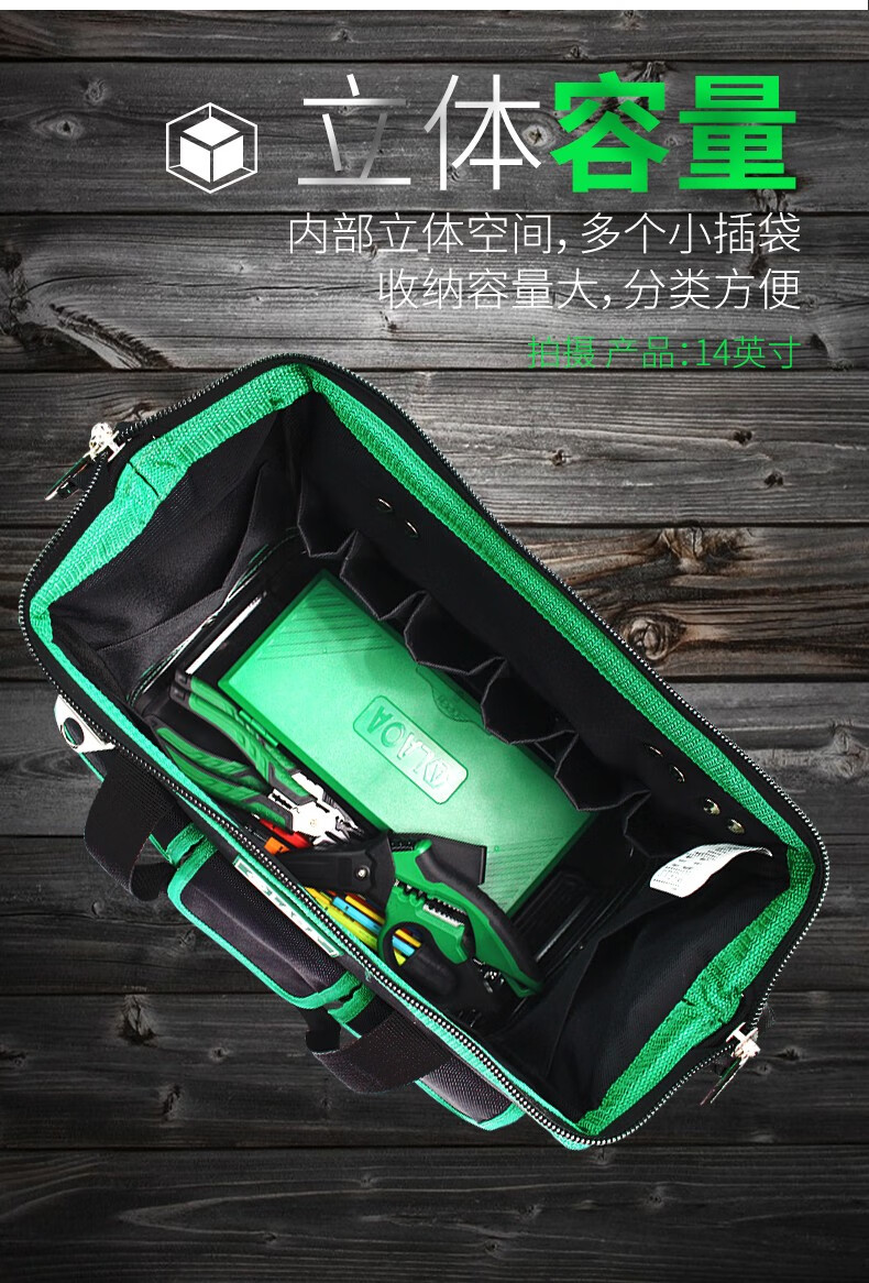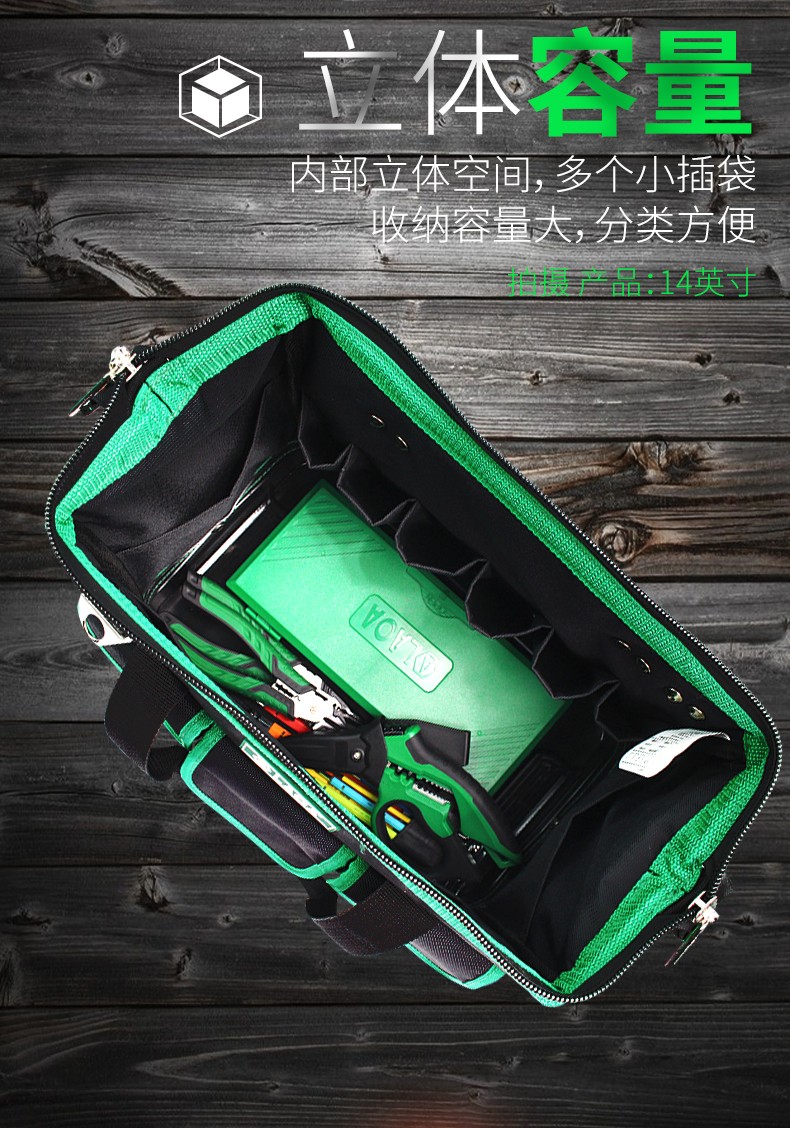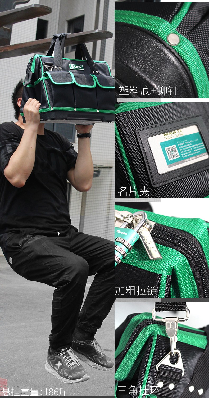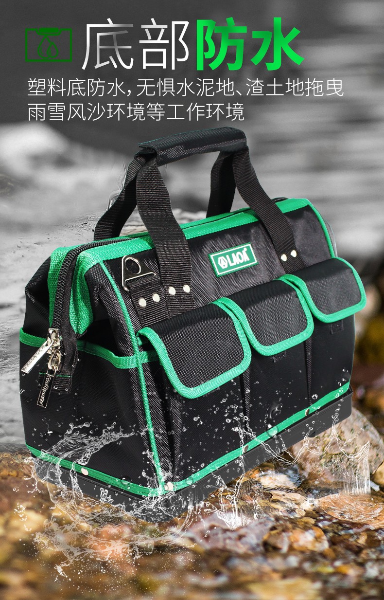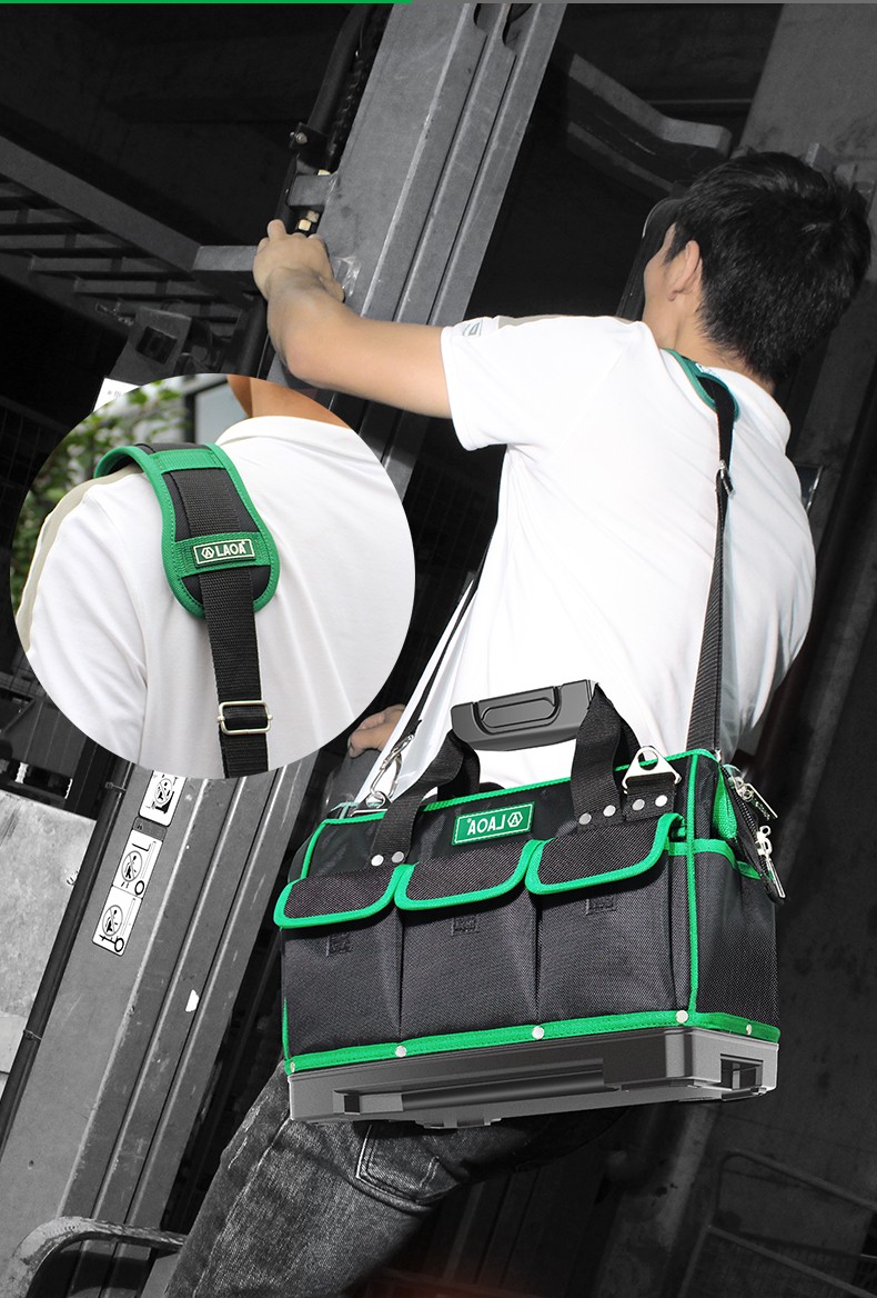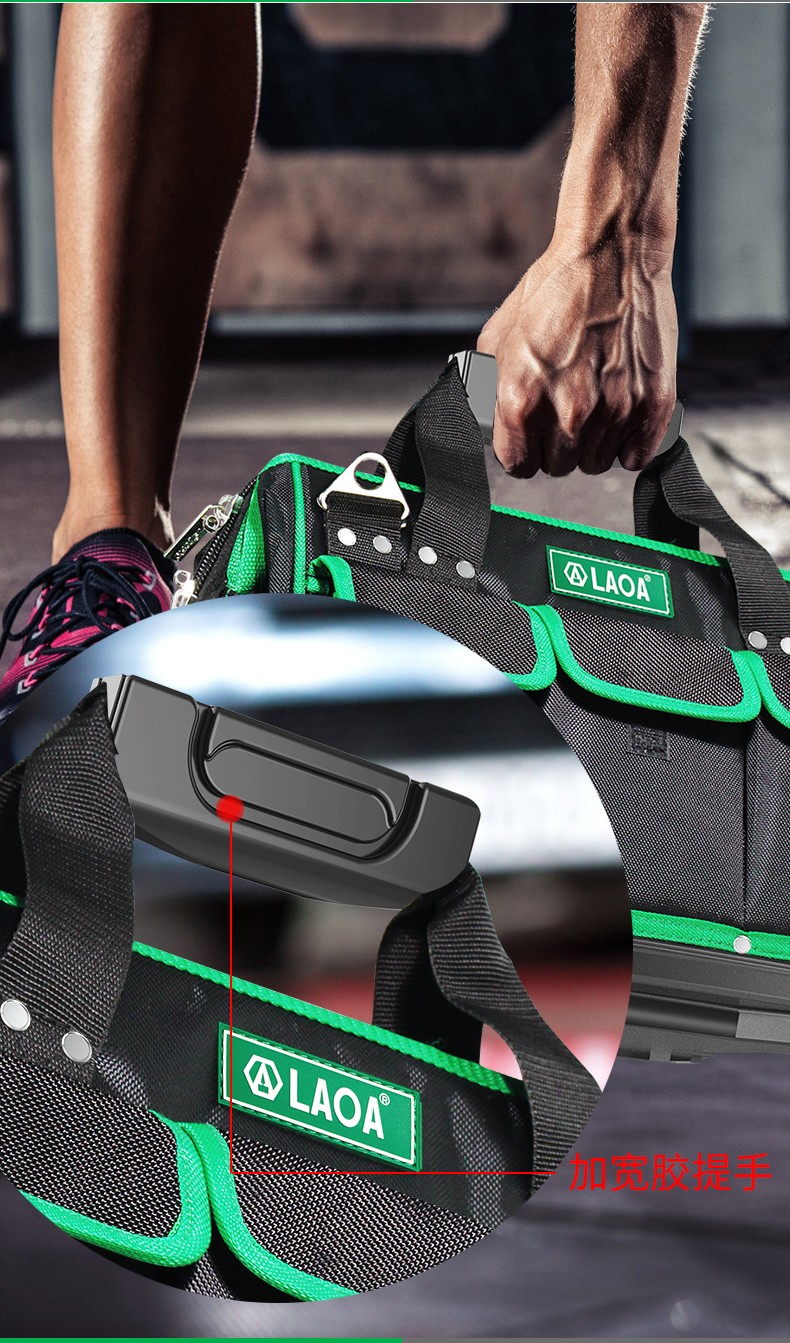 LAOA black Oxford cloth multifunctional thickened plastic bottom electrician tool bag storage bag repair bag shoulder crossbody bag 14-inch tool bag LA118014