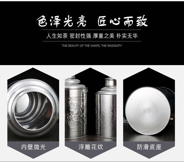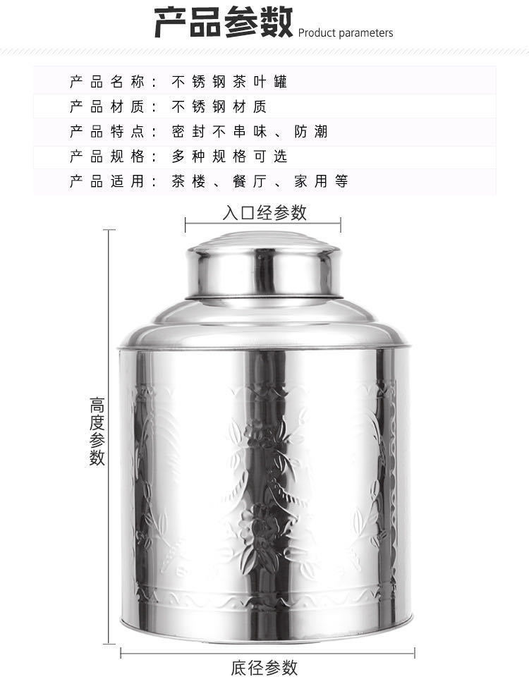 Yujia Road thickened stainless steel tea can large tea packaging box thickened tea barrel sealed can tea can small storage tank 2Jin Jin equals 0.5kg tea can (1000g)
