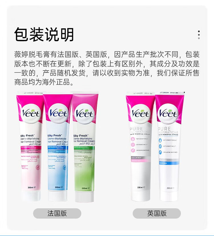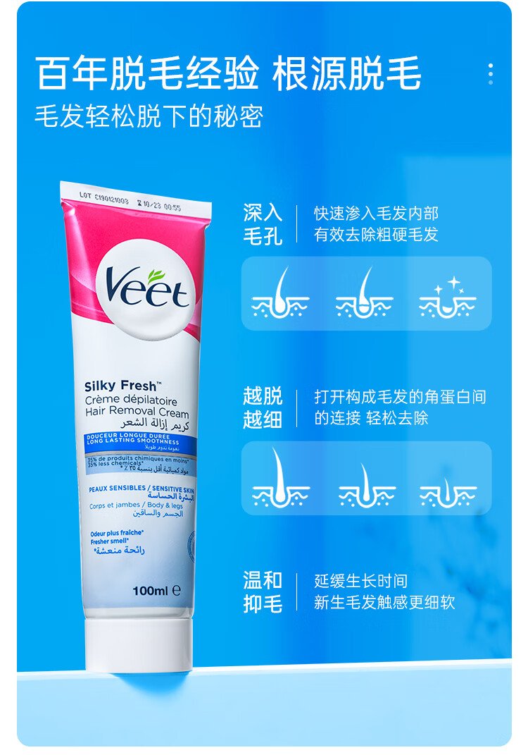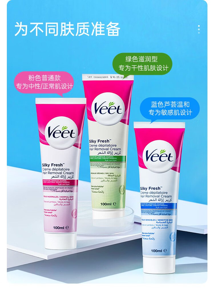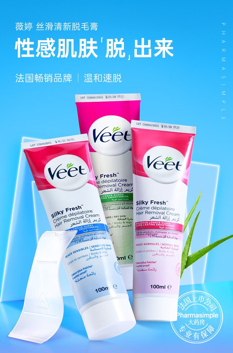 Veet Aloe Vera Hair Removal Cream for Sensitive Skin, Gentle Hair Removal to Enjoy Silky Smoothness, Underarm, Leg and Limb Hair Removal as a Gift, 100ml, 1 tube, Normal Skin, Includes Scraper